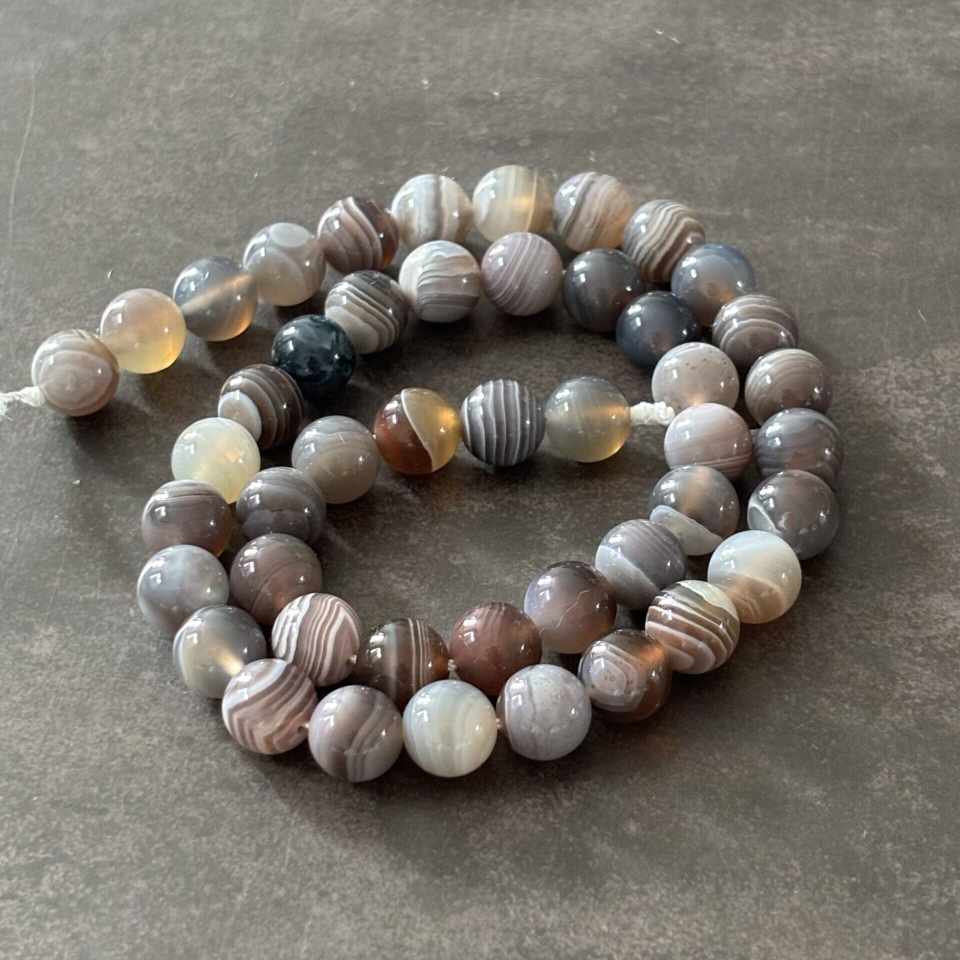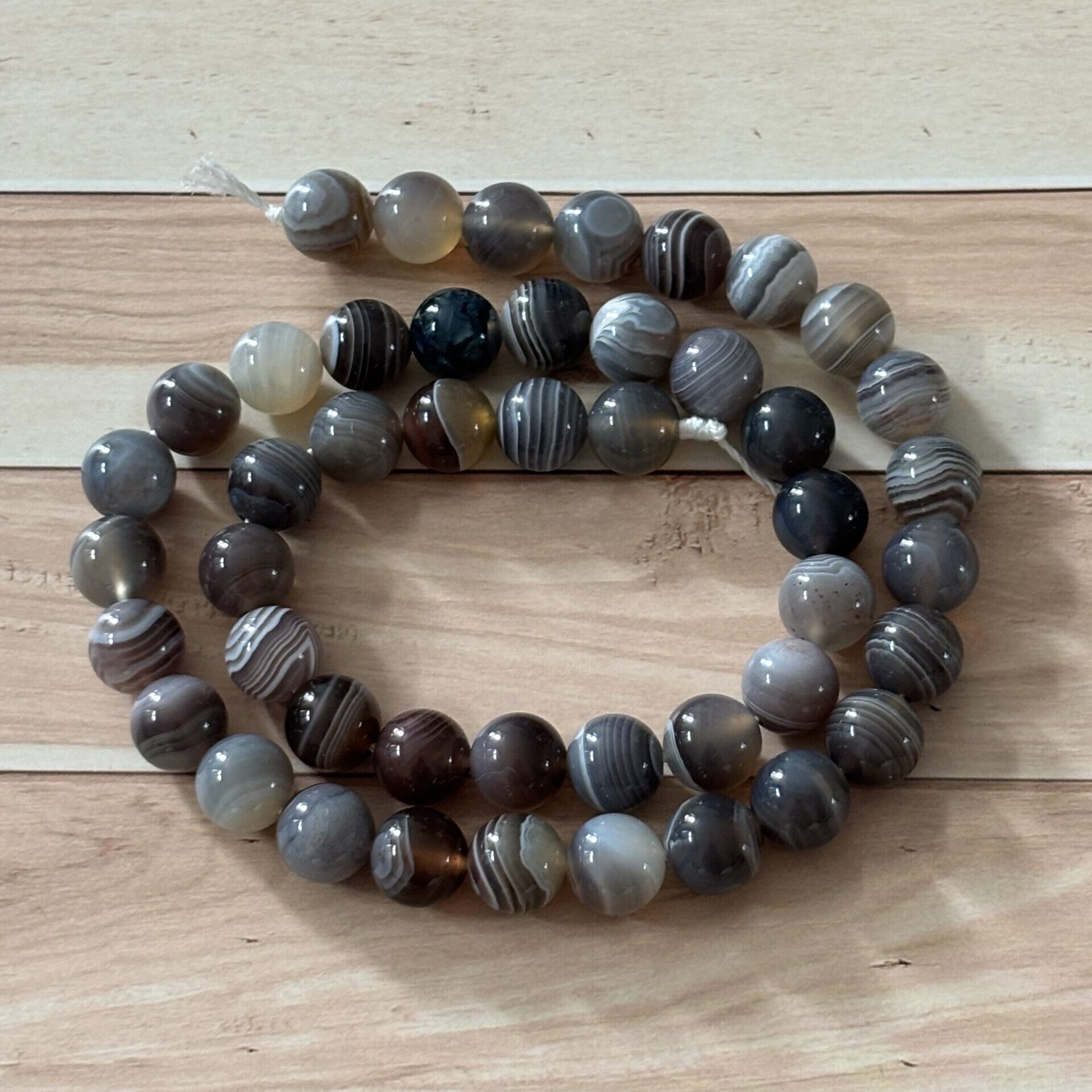Perles Agate du Botswana 8 mm à l’unité –  Provenance Afrique – Qualité A bonne.