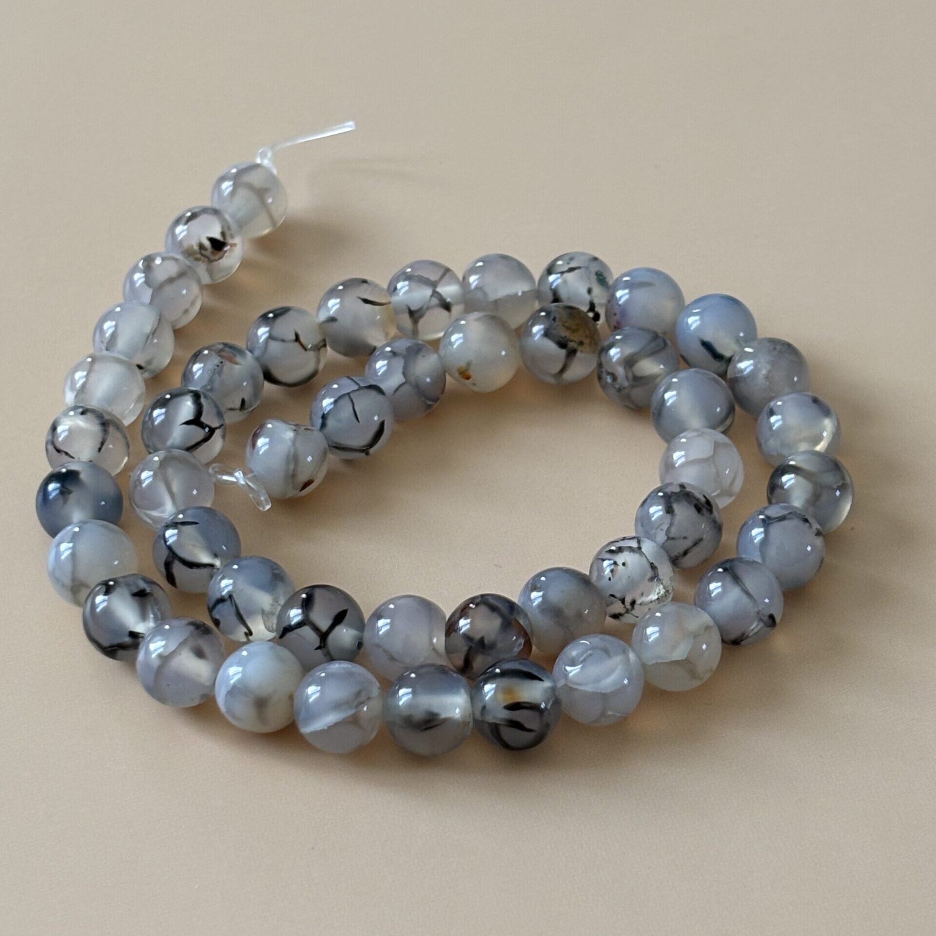 Perles Agate veine de dragon 8 mm à l’unité. – Provenance Madagascar – Qualité AA très bonne.