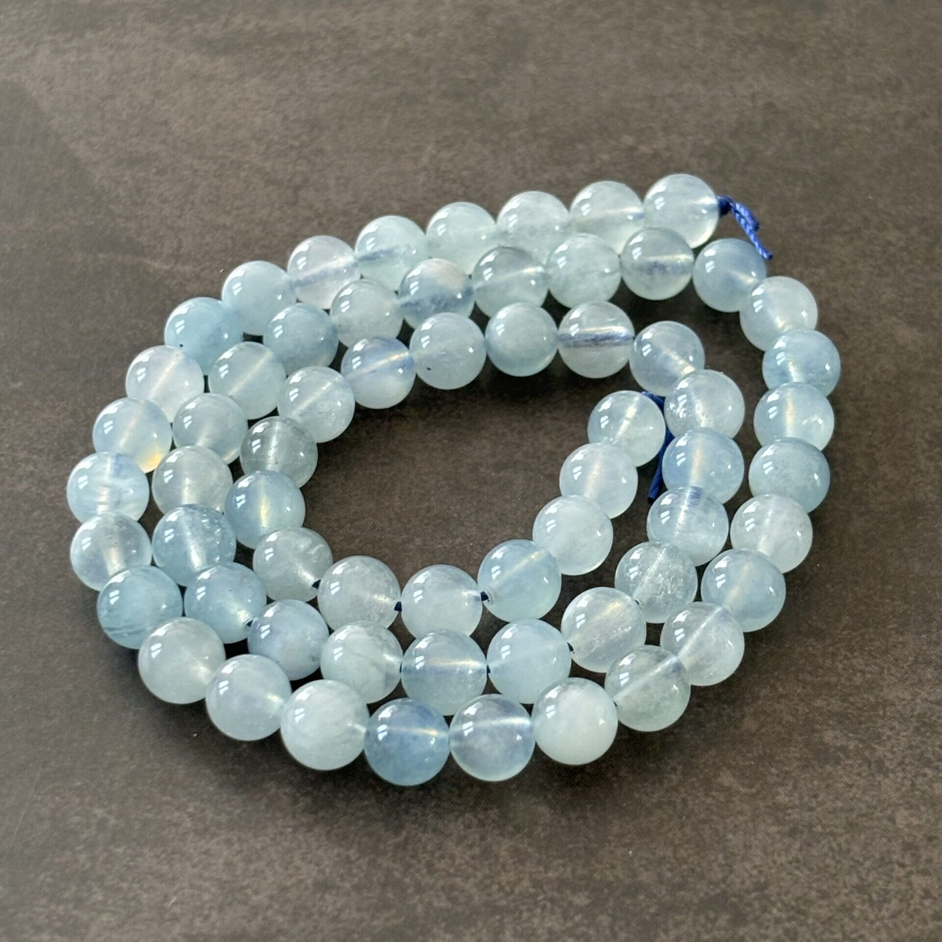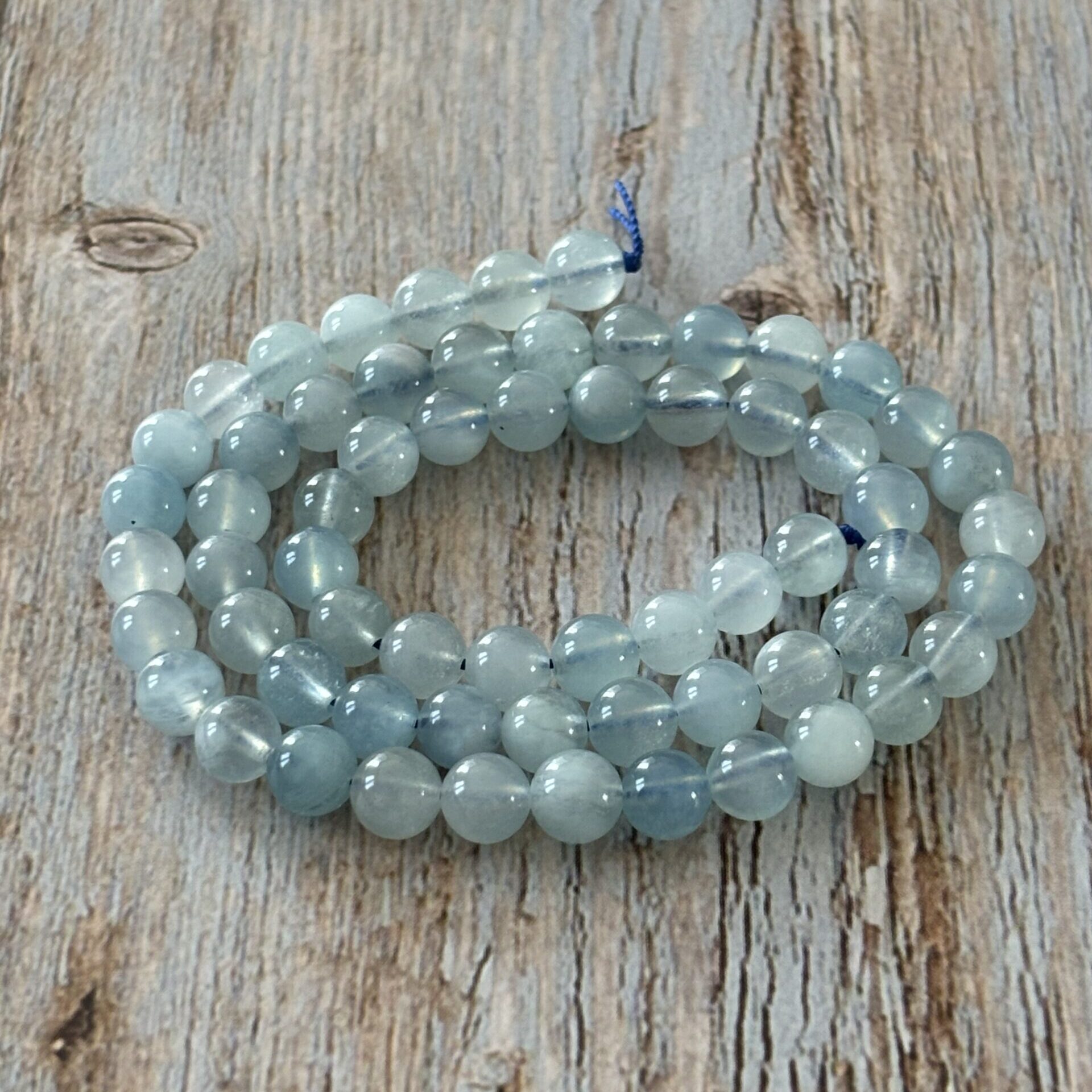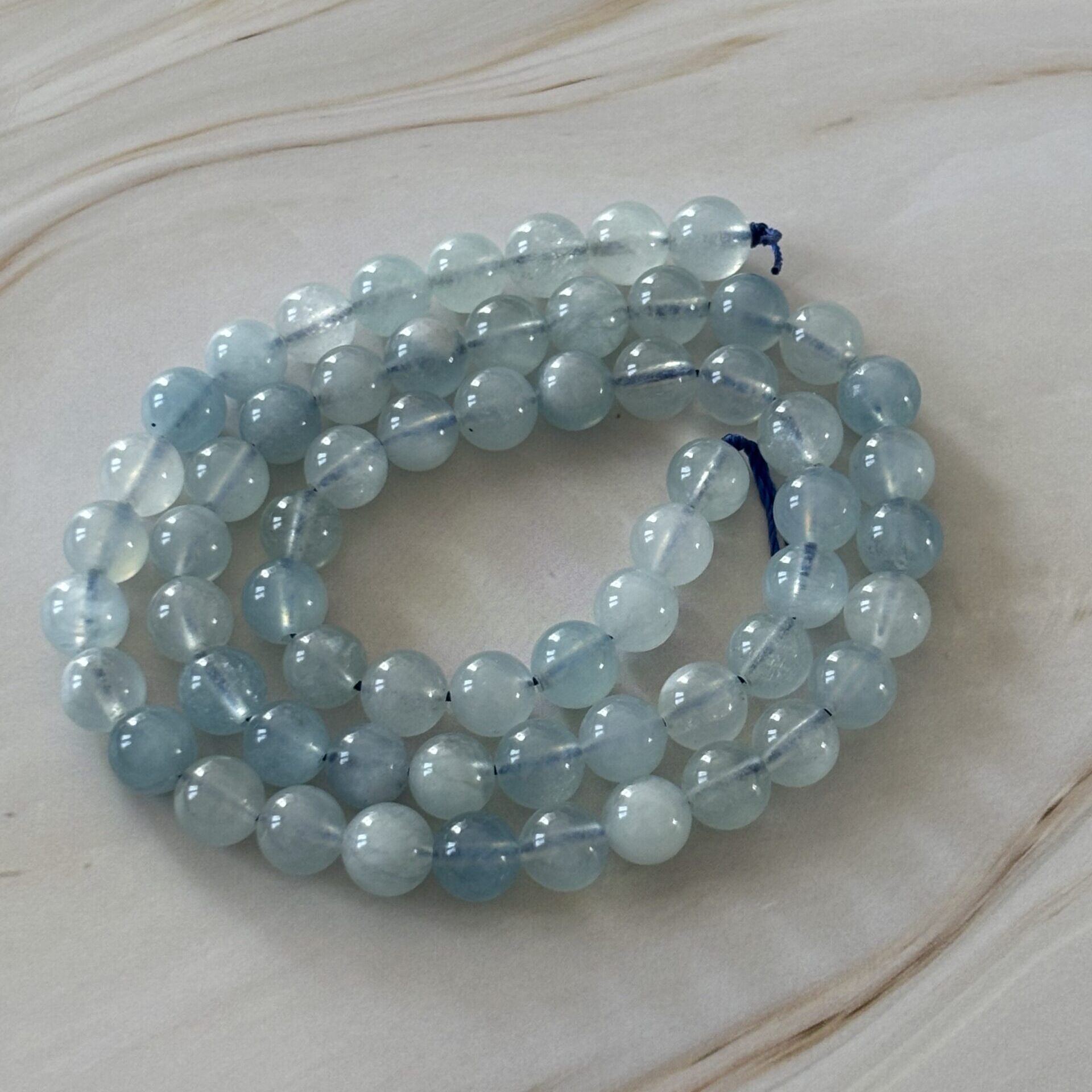 Aigue marine perles 6 mm à l’unité– Provenance Brésil – Qualité AA très bonne.