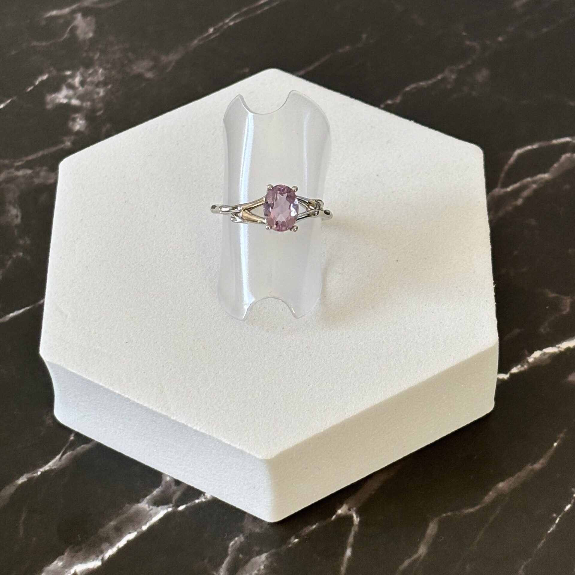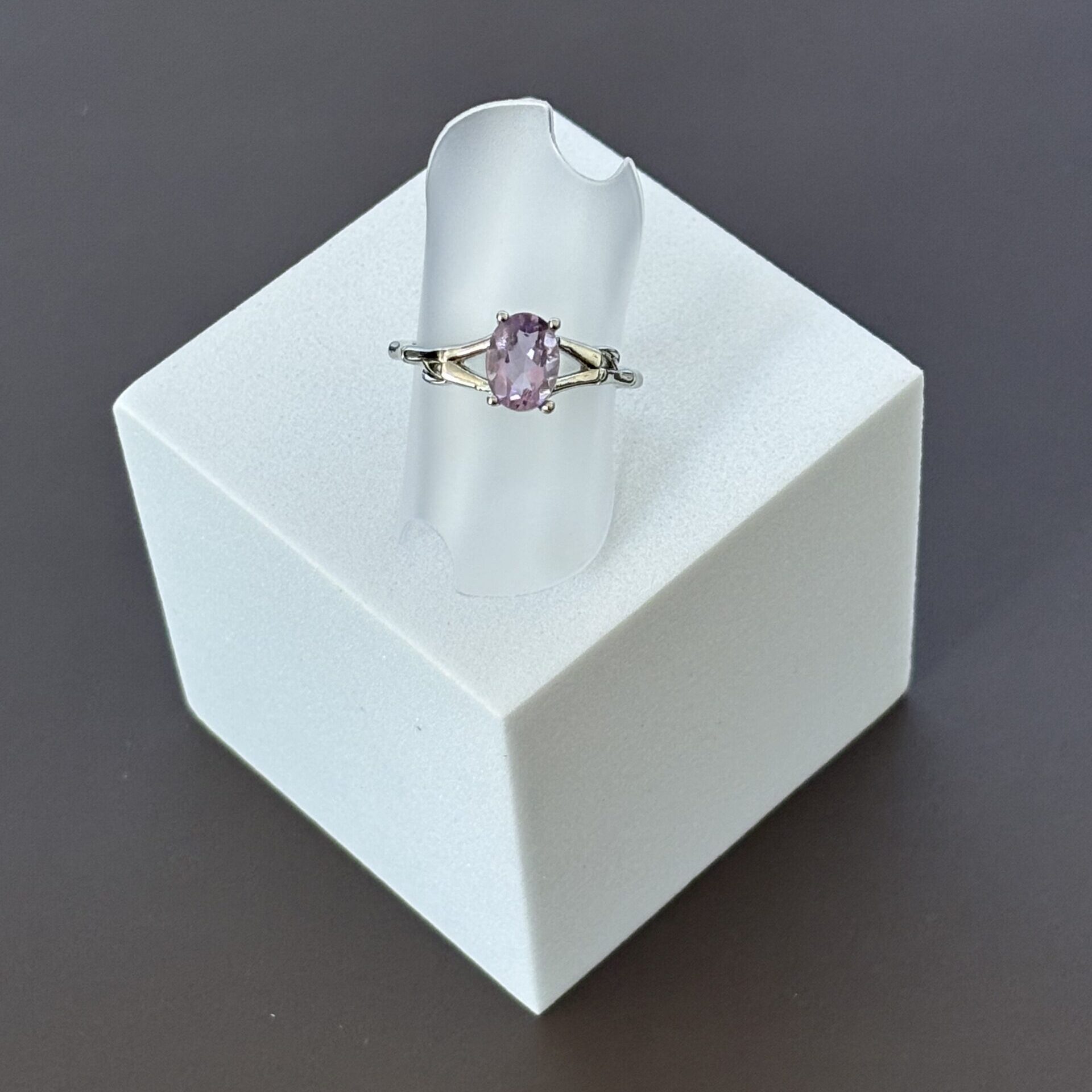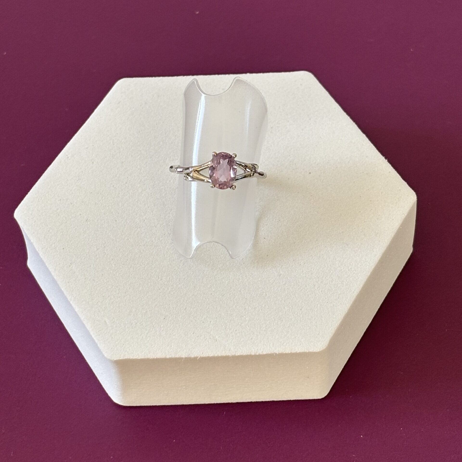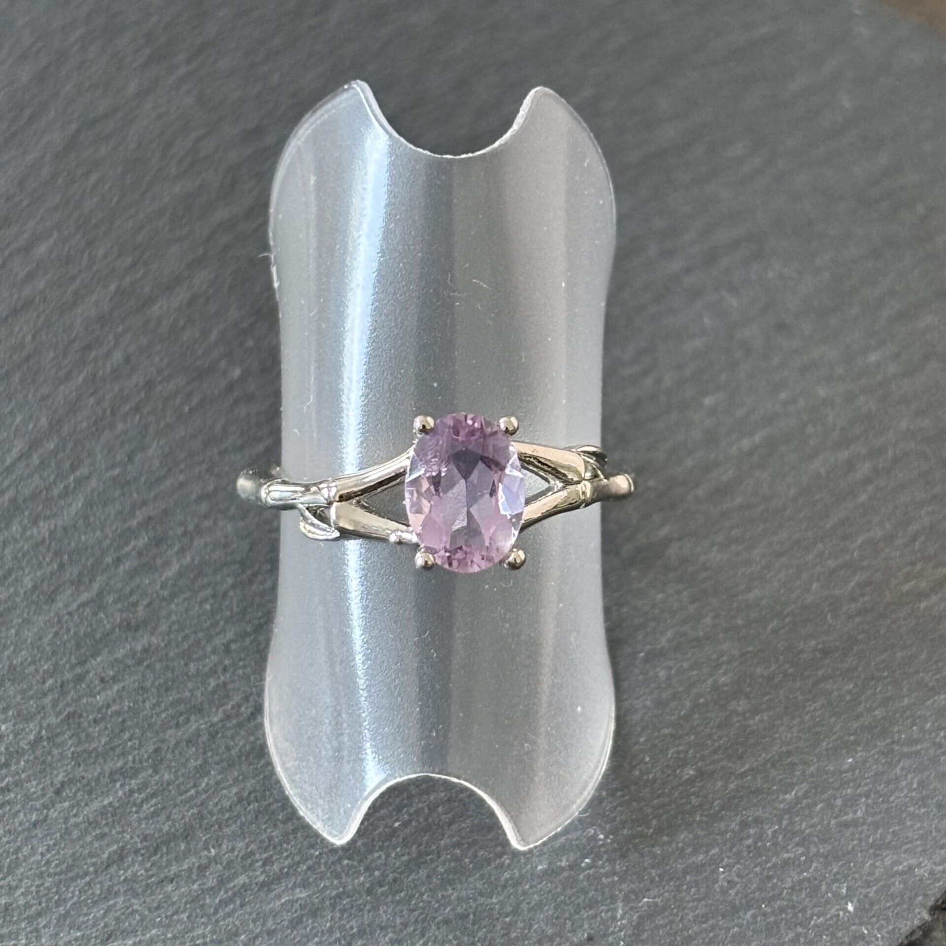 Bague en laiton plaqué argent sertie d’une Améthyste 6*4 mm qualité AA très bonne – Provenance Brésil
