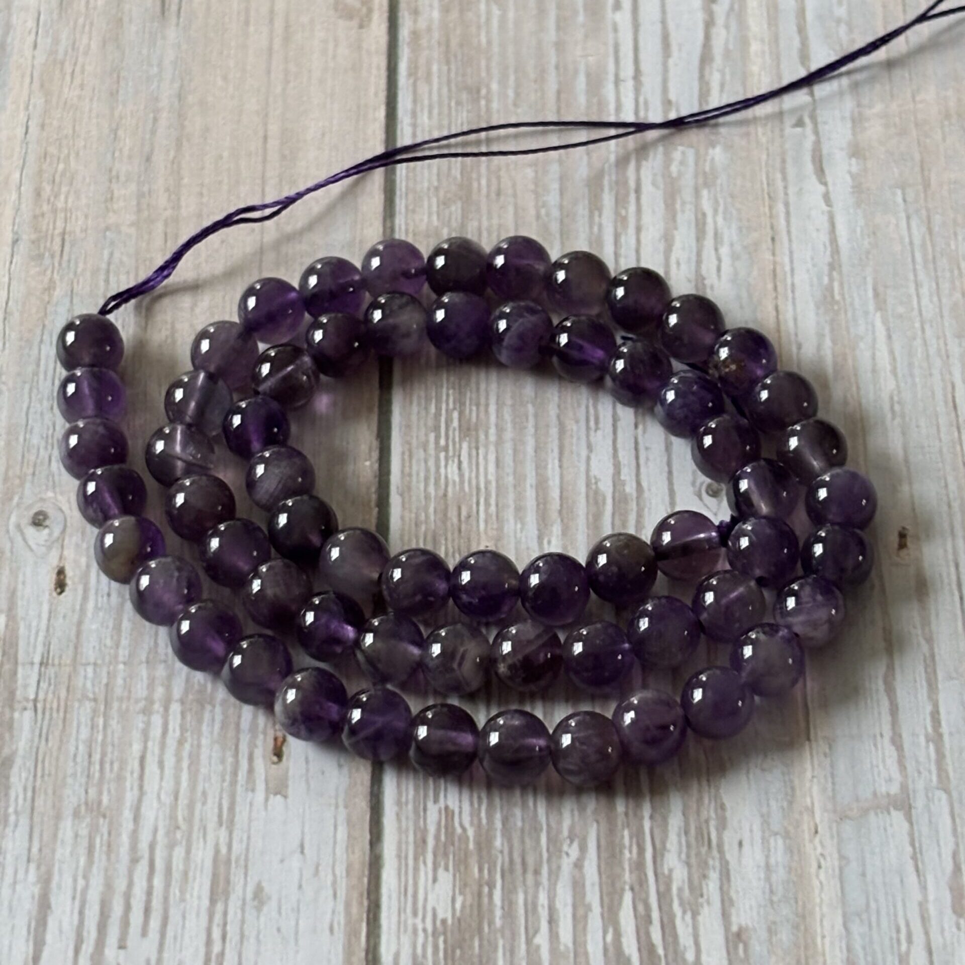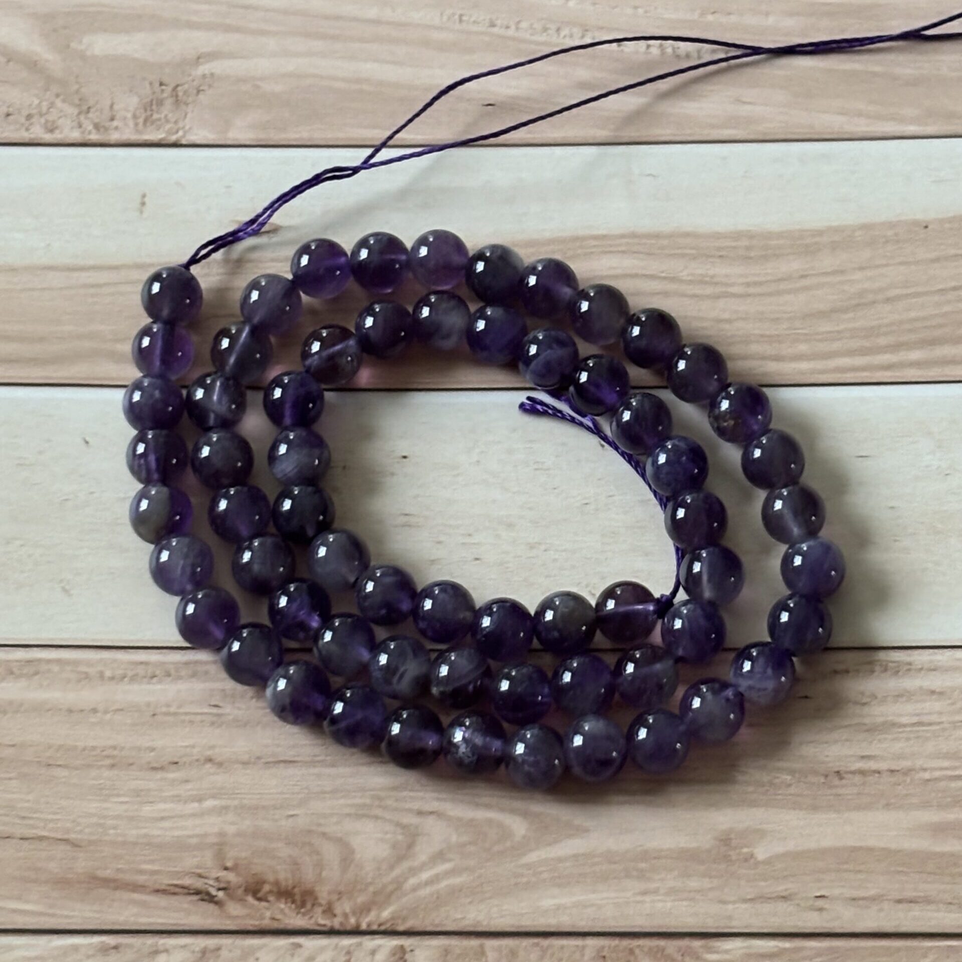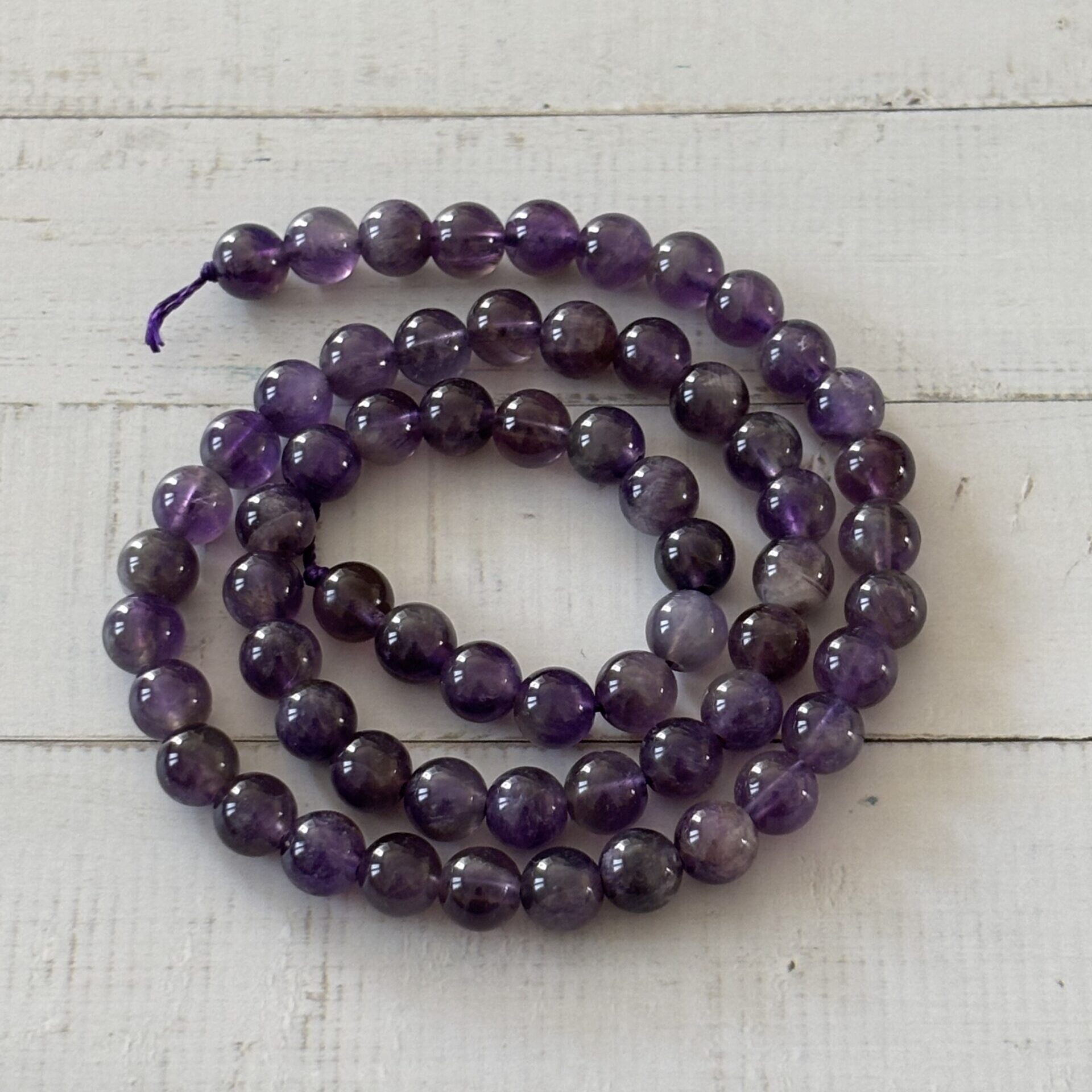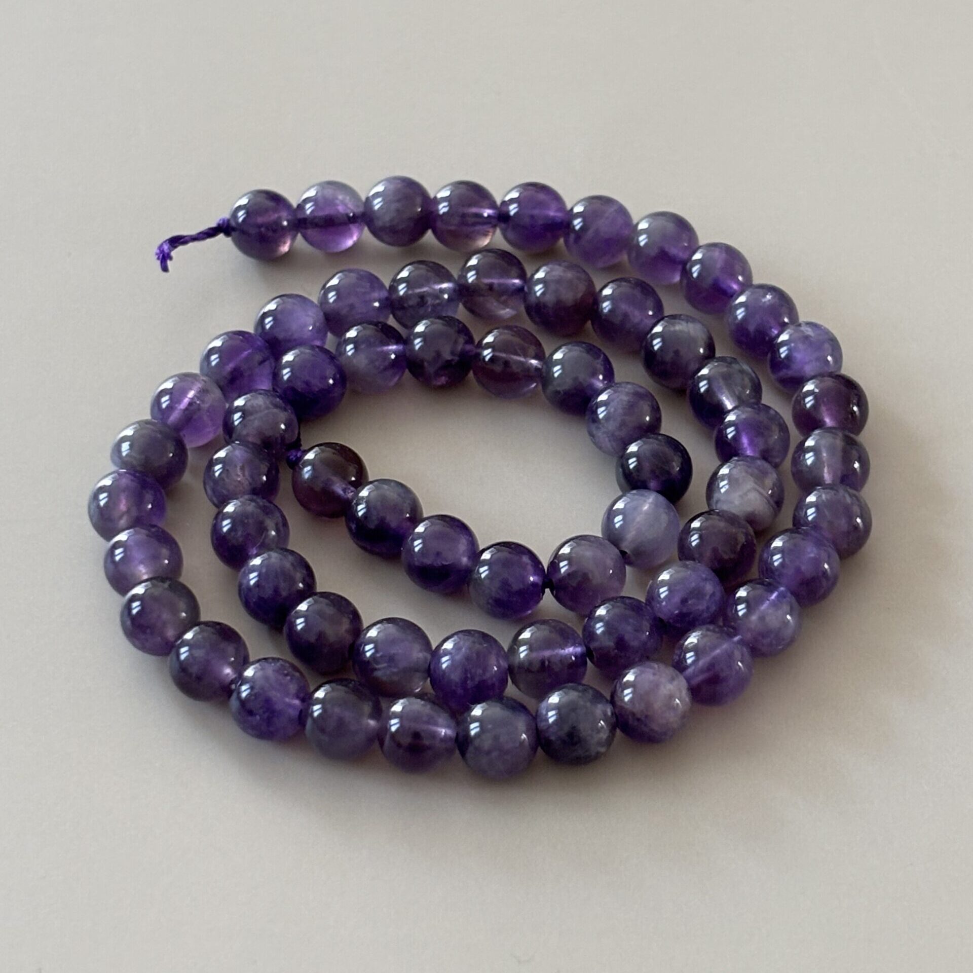 Améthyste perles 6 mm à l’unité– Provenance Brésil – Qualité A bonne.