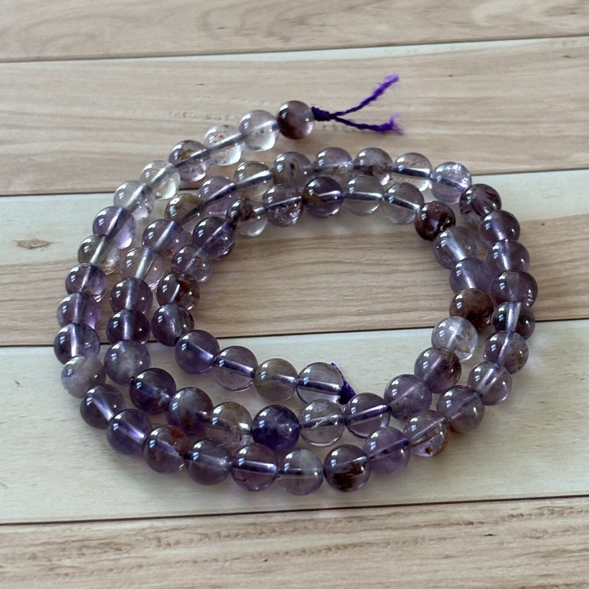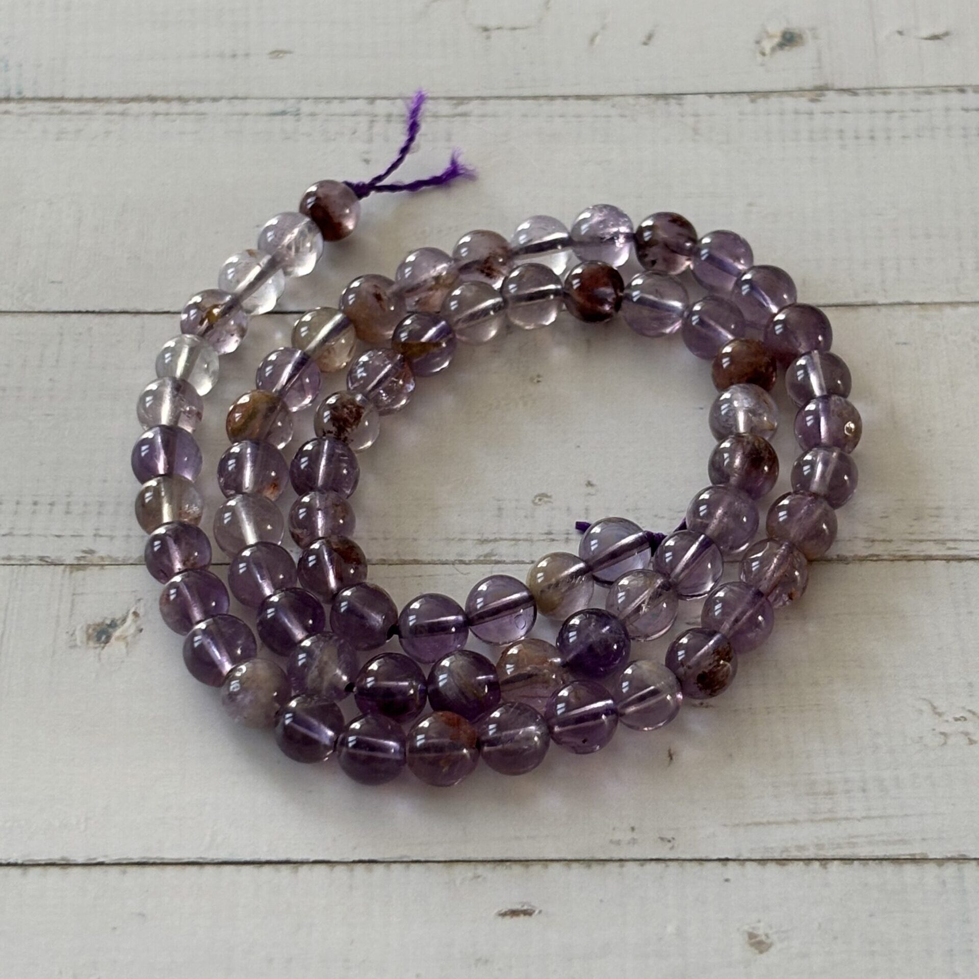 Améthyste super seven perles 6 mm à l’unité – Provenance Brésil – Qualité AA très bonne.