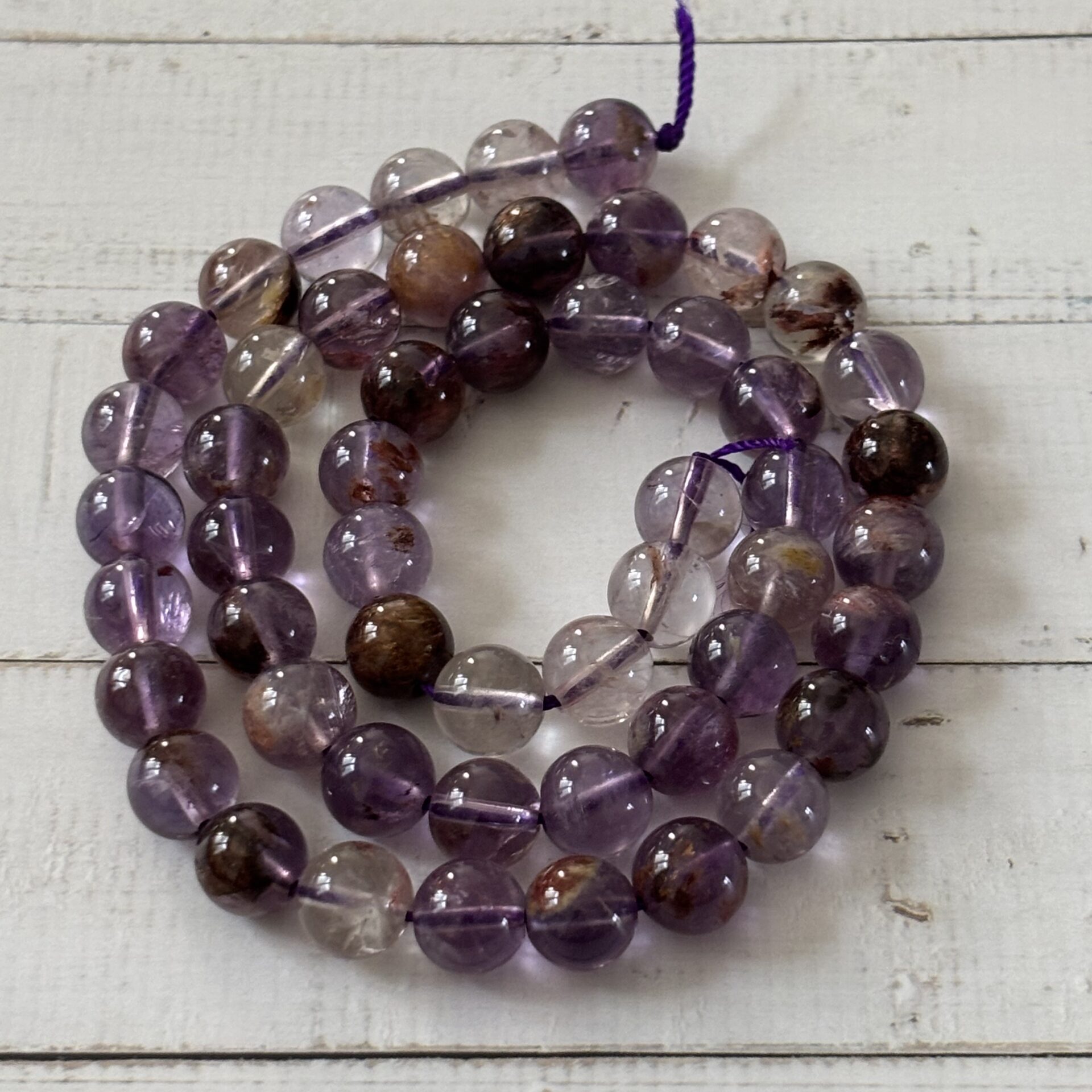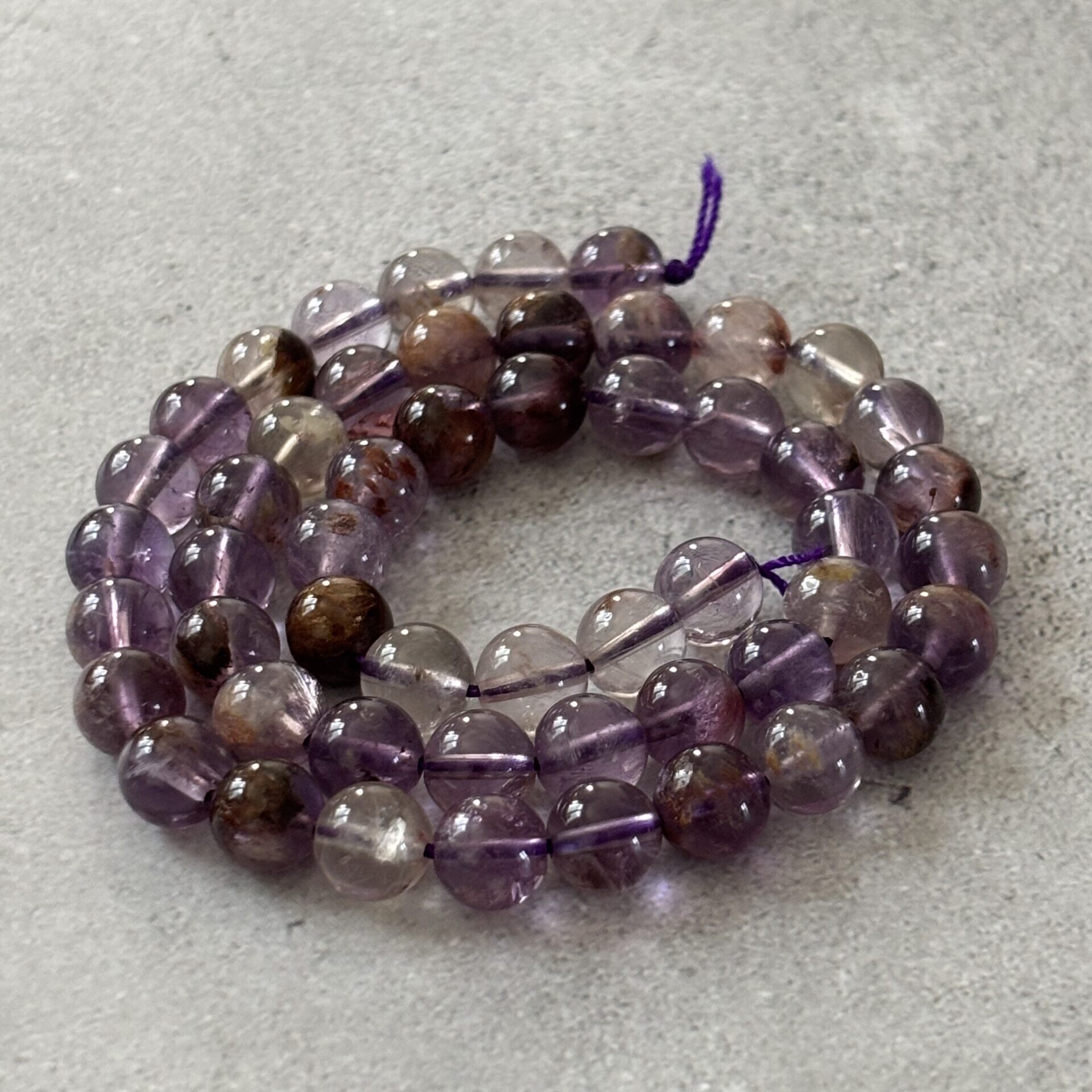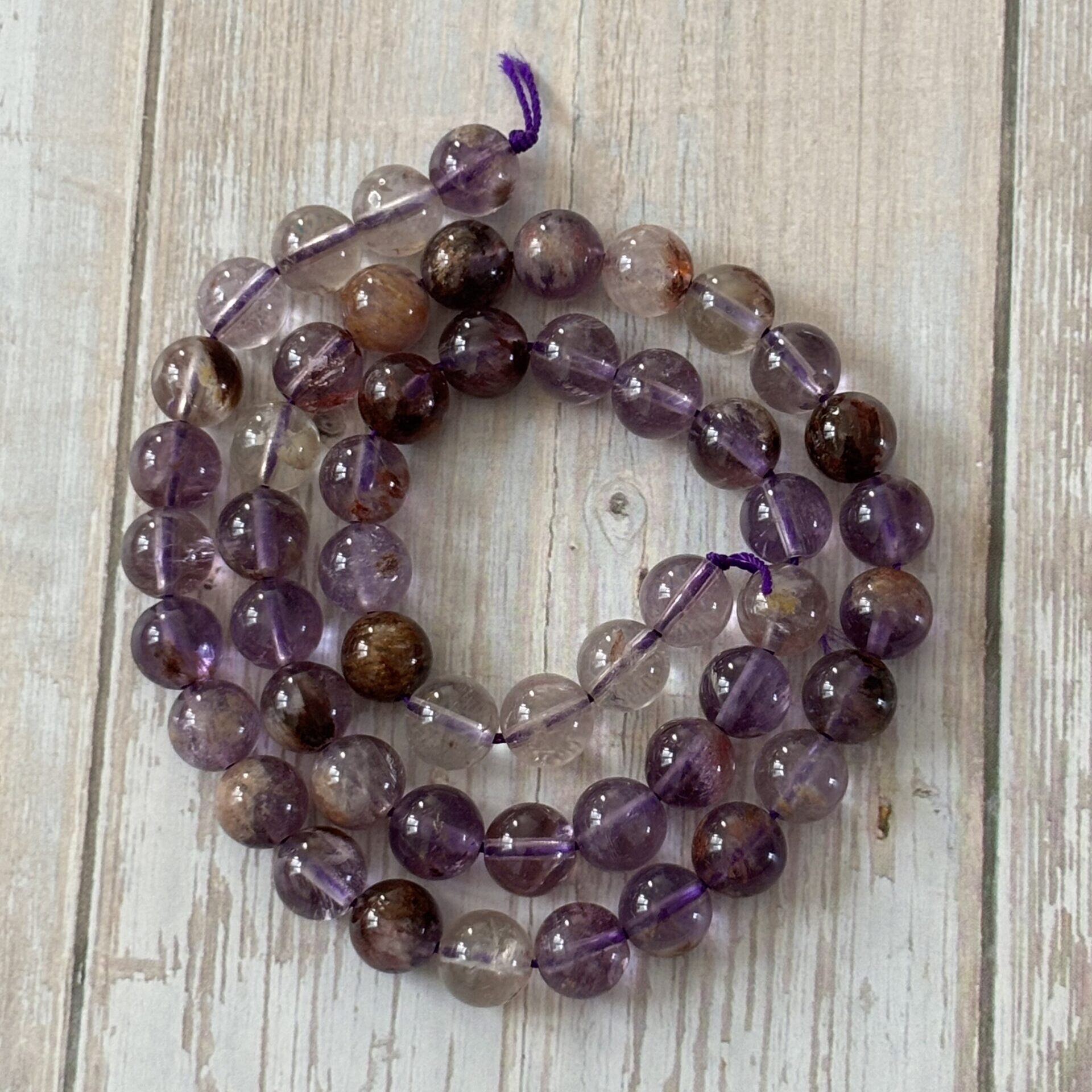 Perles Améthyste Super seven 8 mm à l’unité – Provenance Brésil – Qualité AA très bonne.