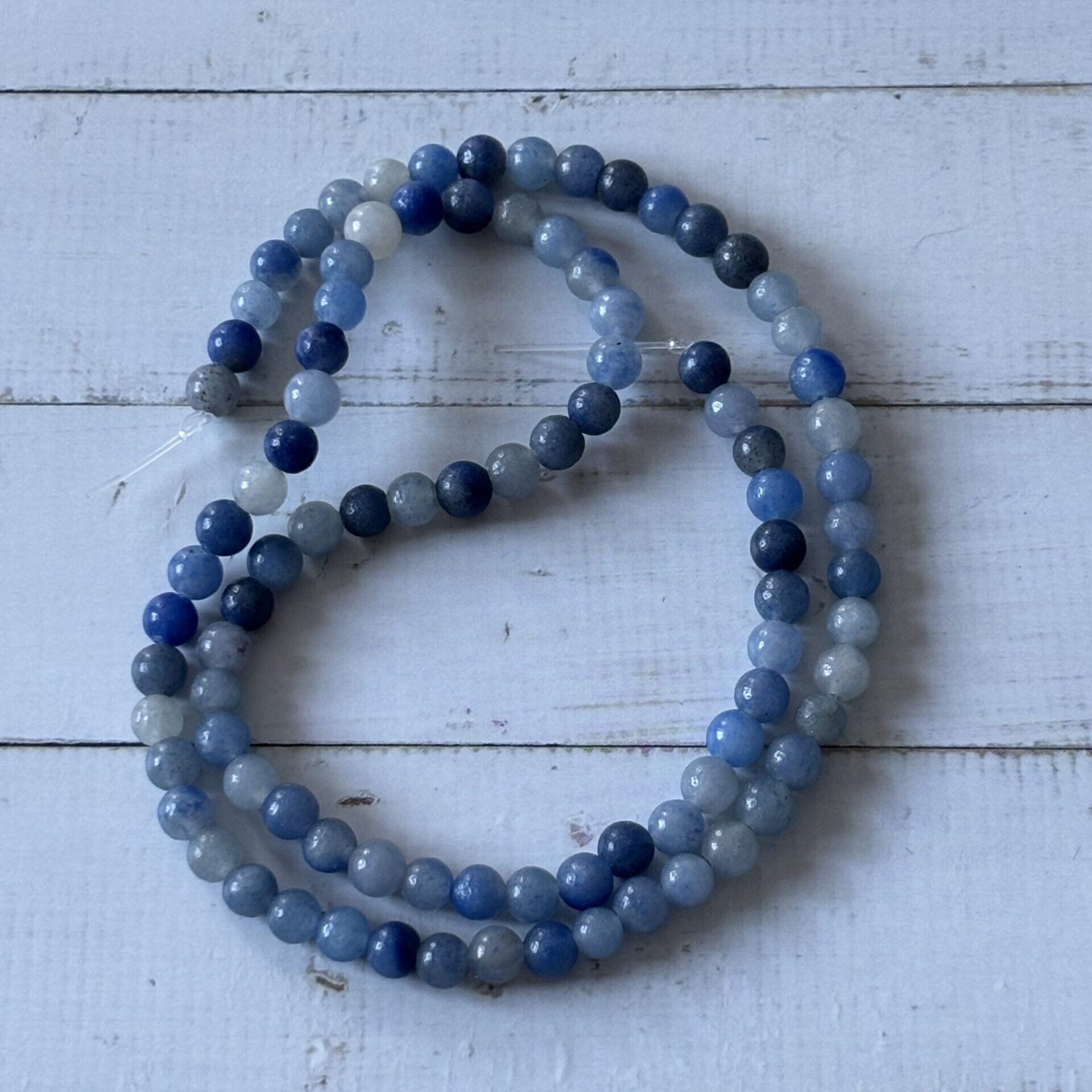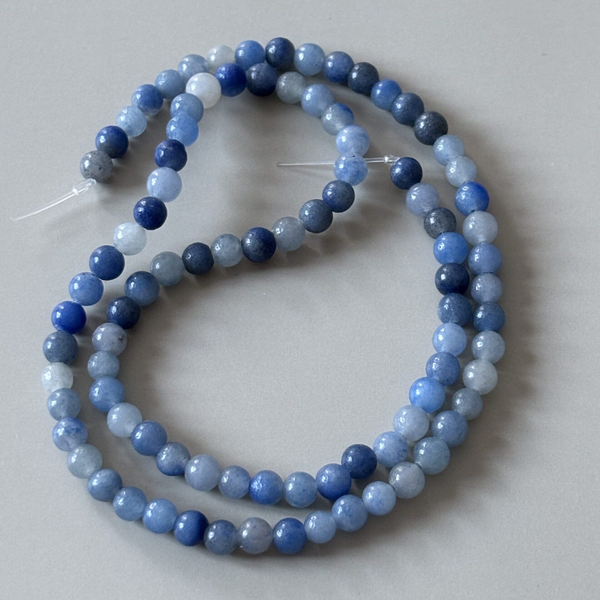 Aventurine bleue perles 4 mm en fil complet – Provenance Brésil – Qualité AA très bonne.