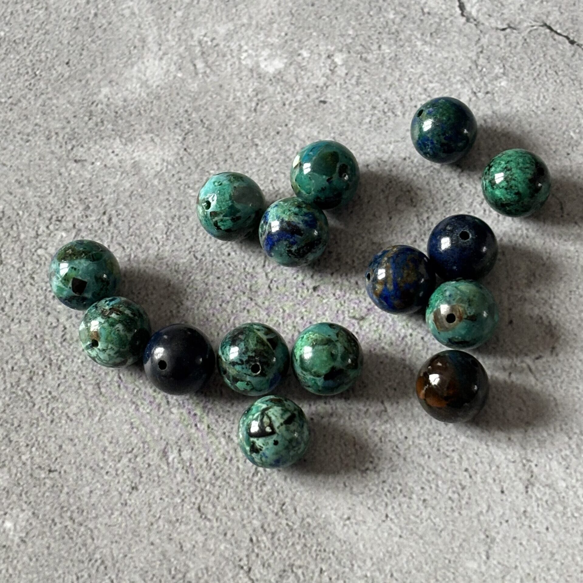 Perles Azurite malachite 10 mm à l’unité – Provenance Afrique – Qualité AAA extra.