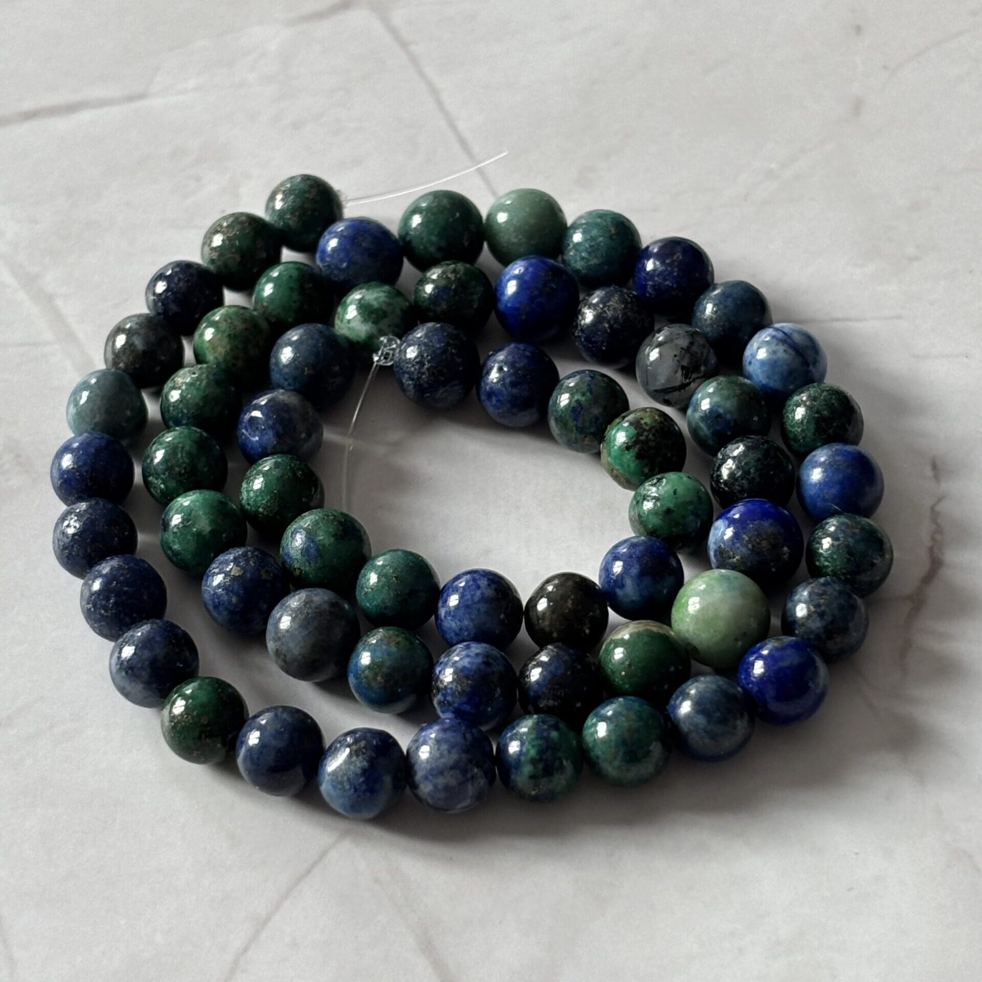 Azurite malachite perles 6 mm à l’unité – Provenance Brésil – Qualité AA très bonne.