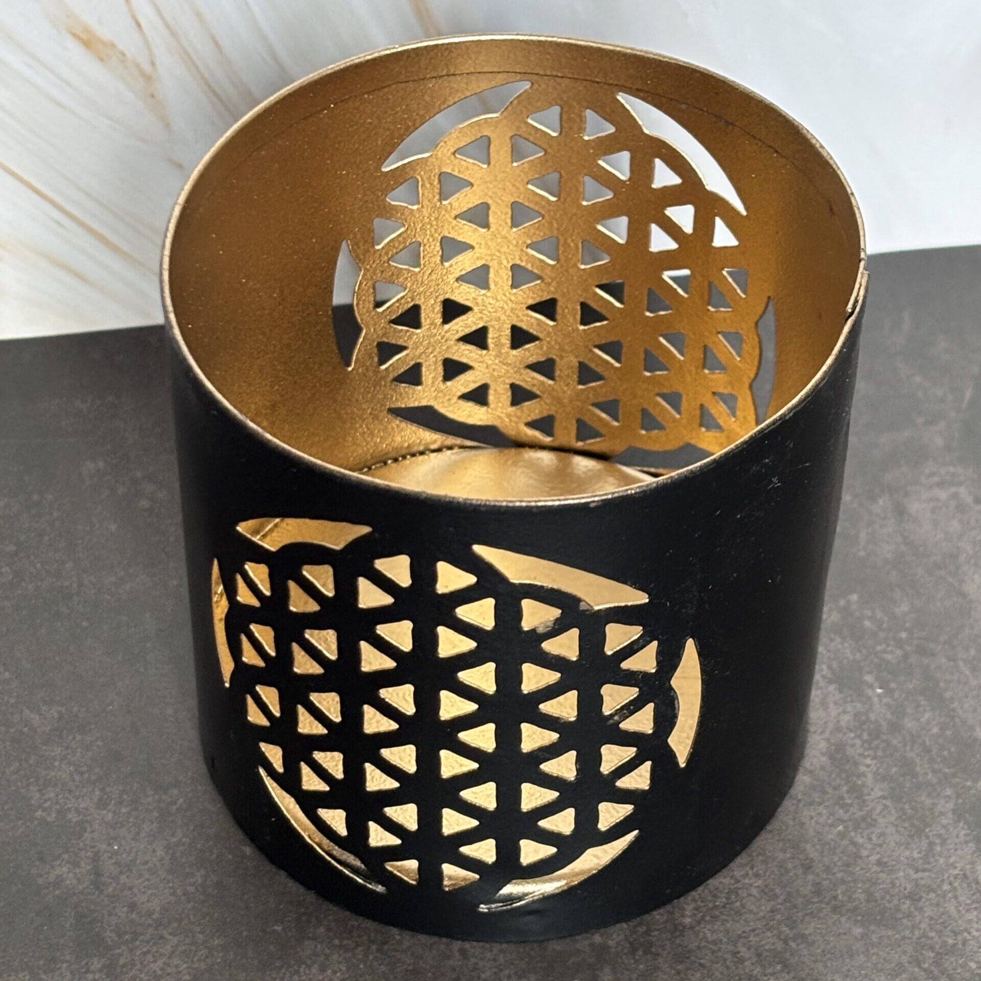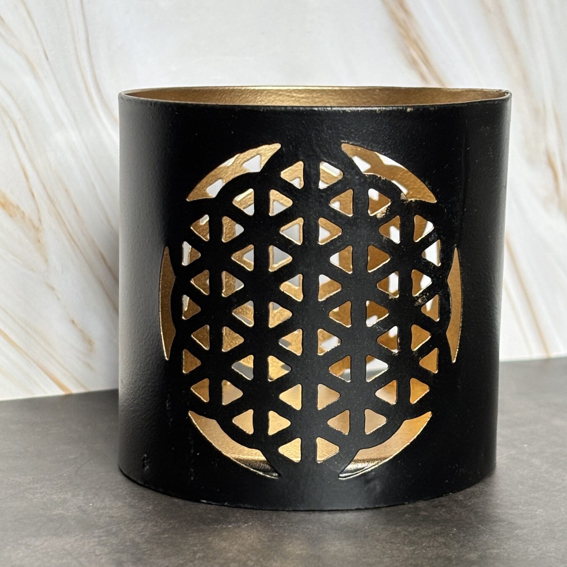 Bougeoir métal fleur de vie – Dimension environ 9 cm