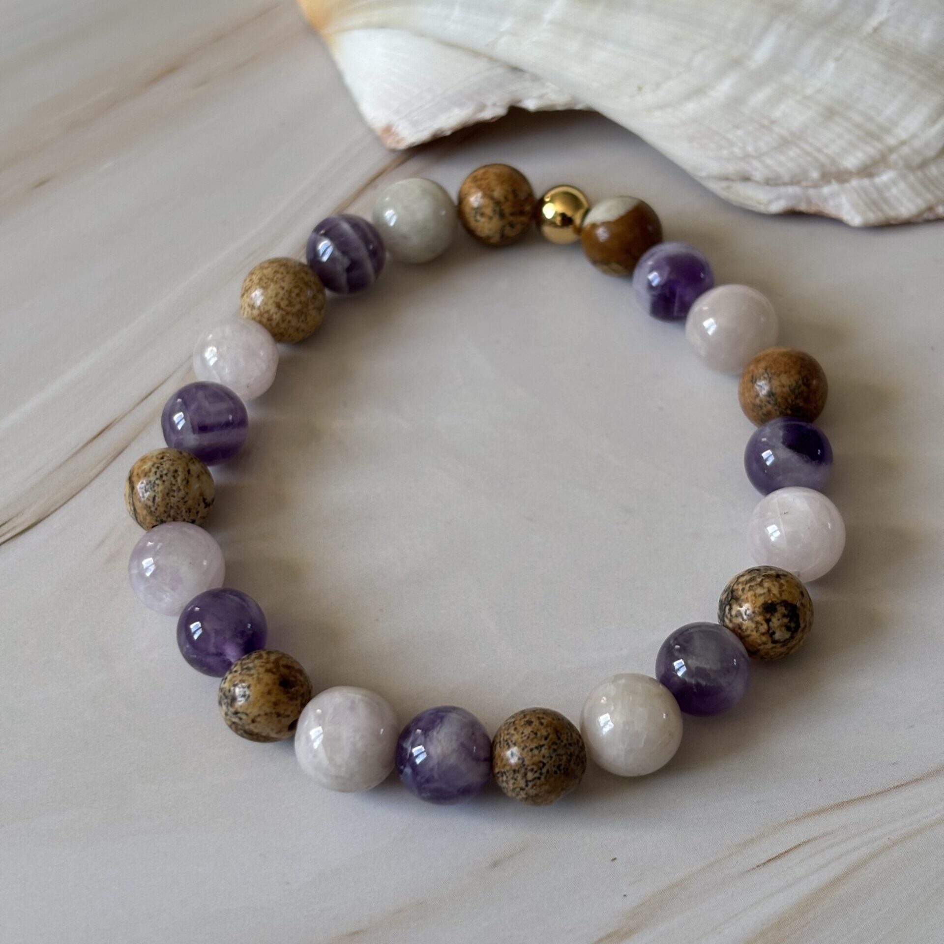 Bracelet addiction : Kunzite, améthyste et jaspe