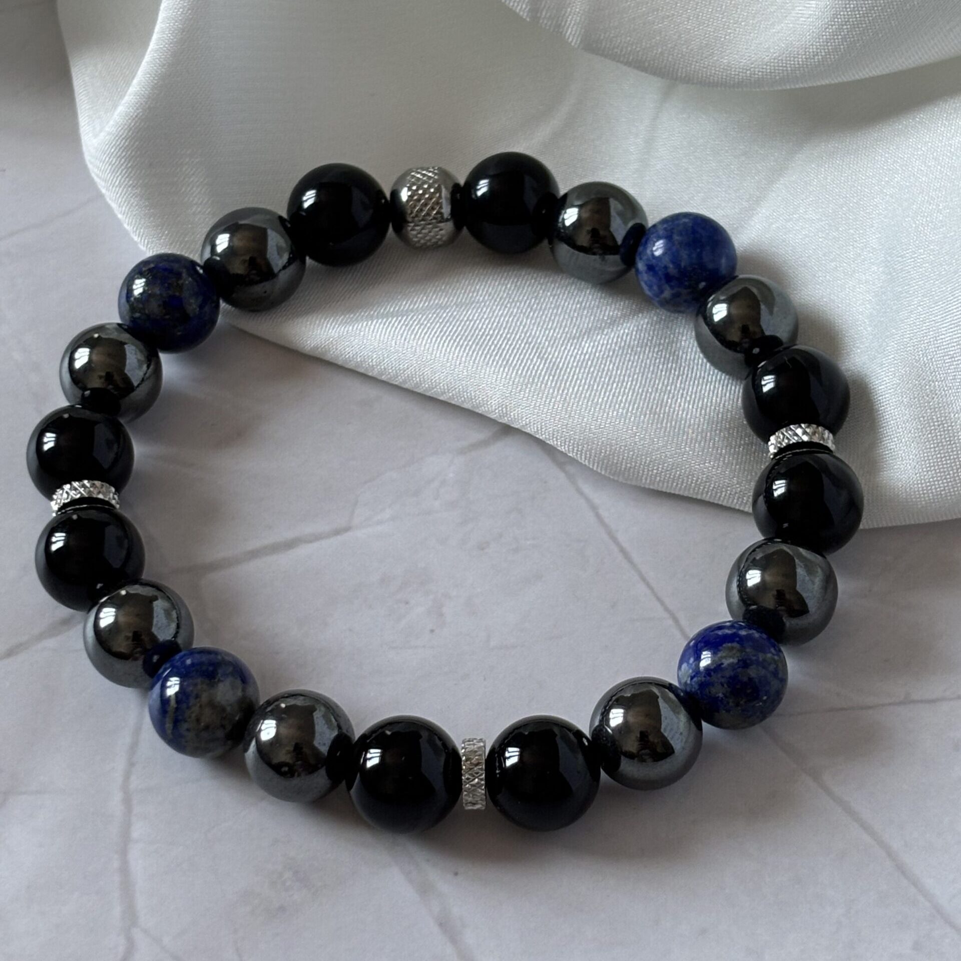 Associer l’agate noire, l’hématite et le lapis lazuli dans un bracelet crée une synergie unique. Ce trio renforce l’ancrage, la force mentale et l’intuition. Idéal pour ceux qui recherchent l’équilibre, le courage et la clarté d’esprit, ce bracelet vous accompagnera au quotidien, en apportant stabilité, confiance et sérénité.