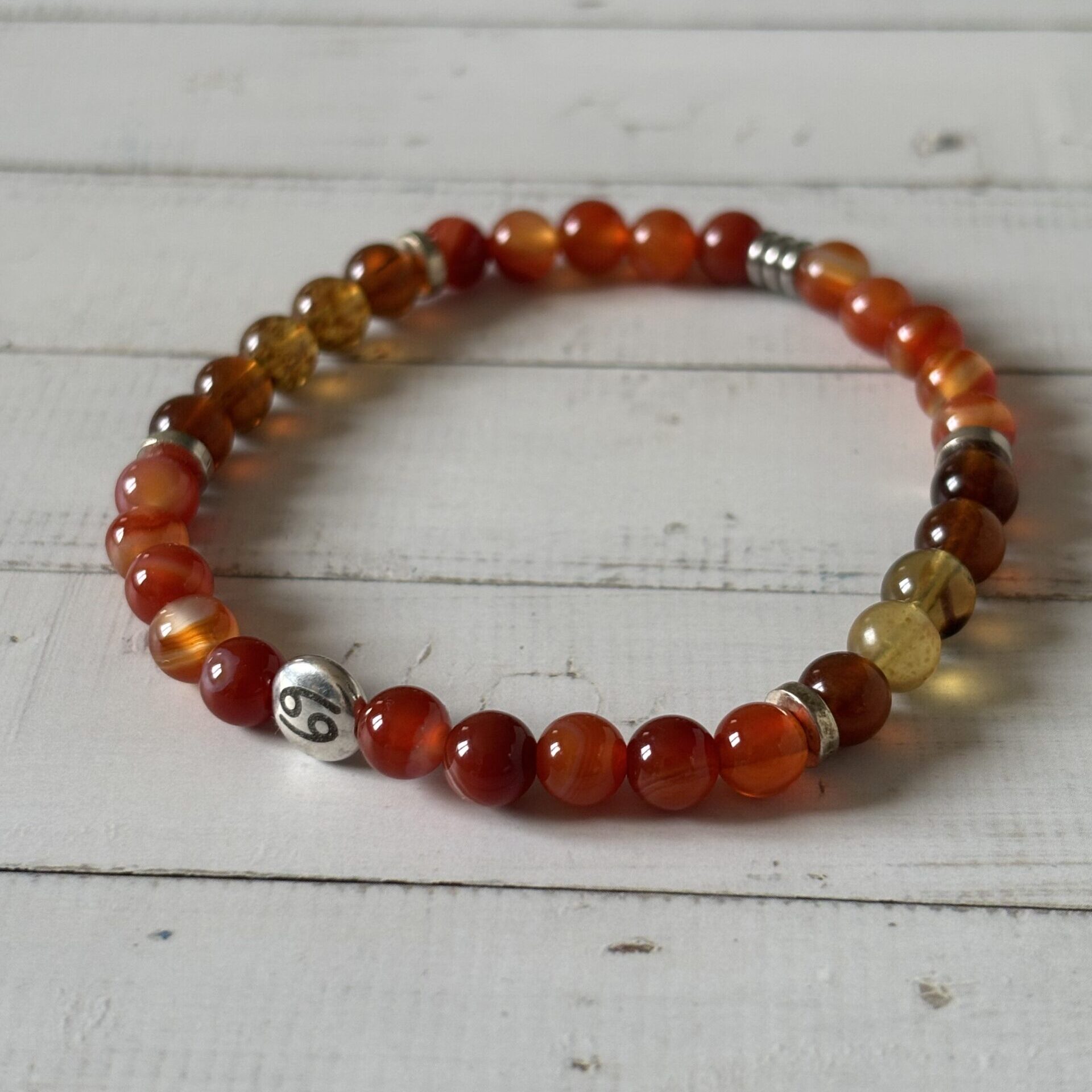 Bracelet du zodiaque – Signe du Cancer – Ambre et cornaline