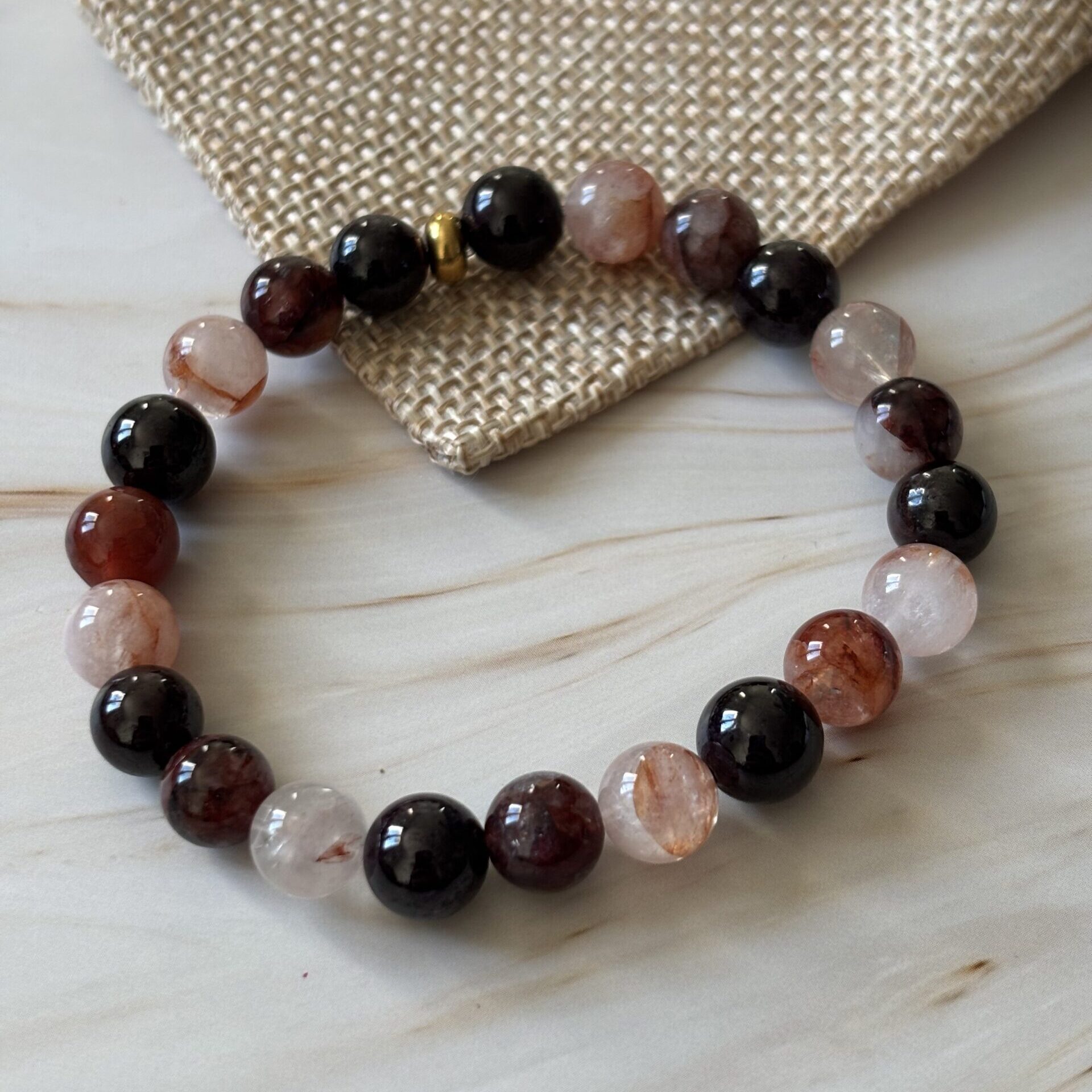 Bracelet du zodiaque – Signe du capricorne – Grenat et quartz hématoïde