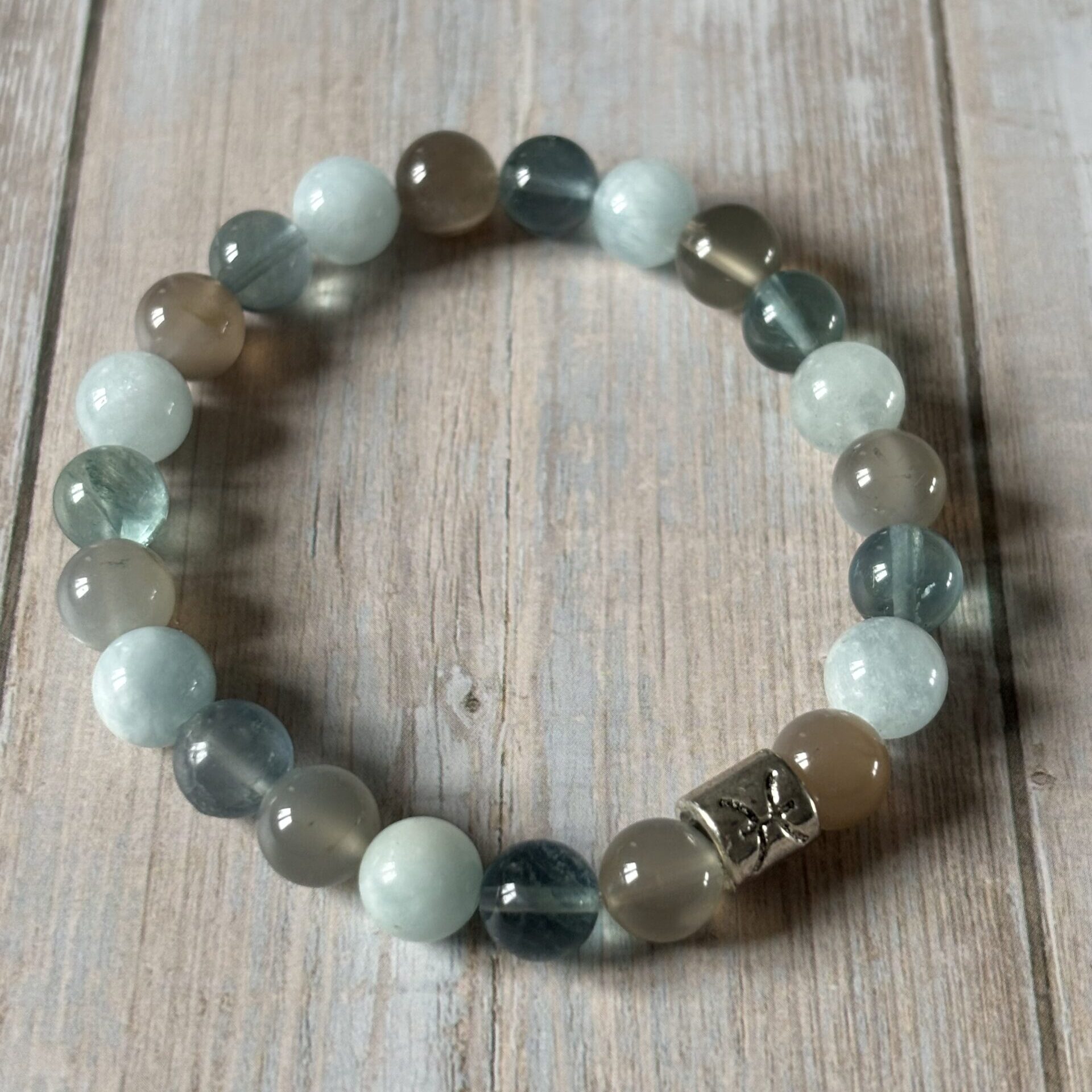 Bracelet astrologique POISSON – Aigue marine, pierre de lune et fluorite