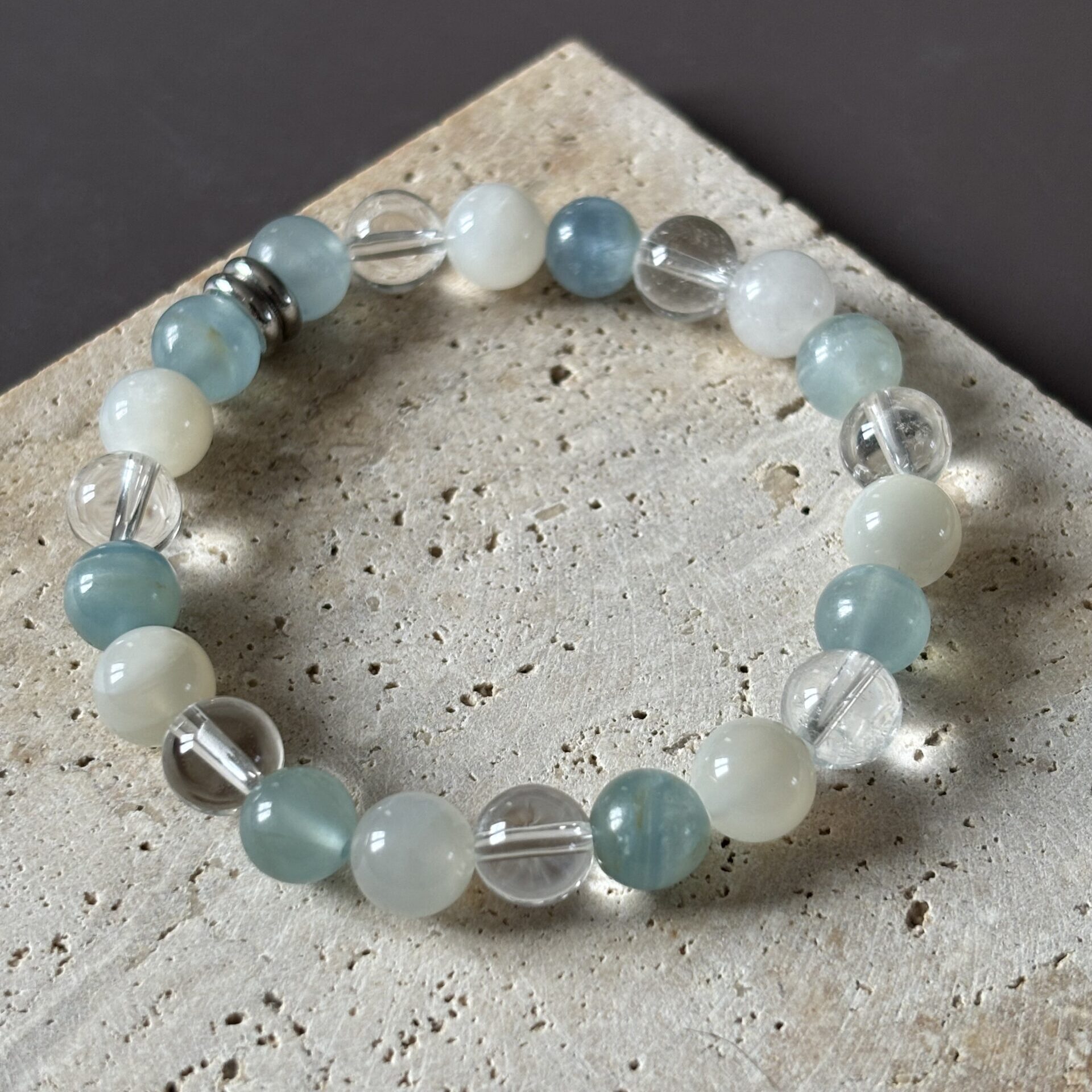 Bracelet astrologique POISSON – Pierre de lune, calcite et roche