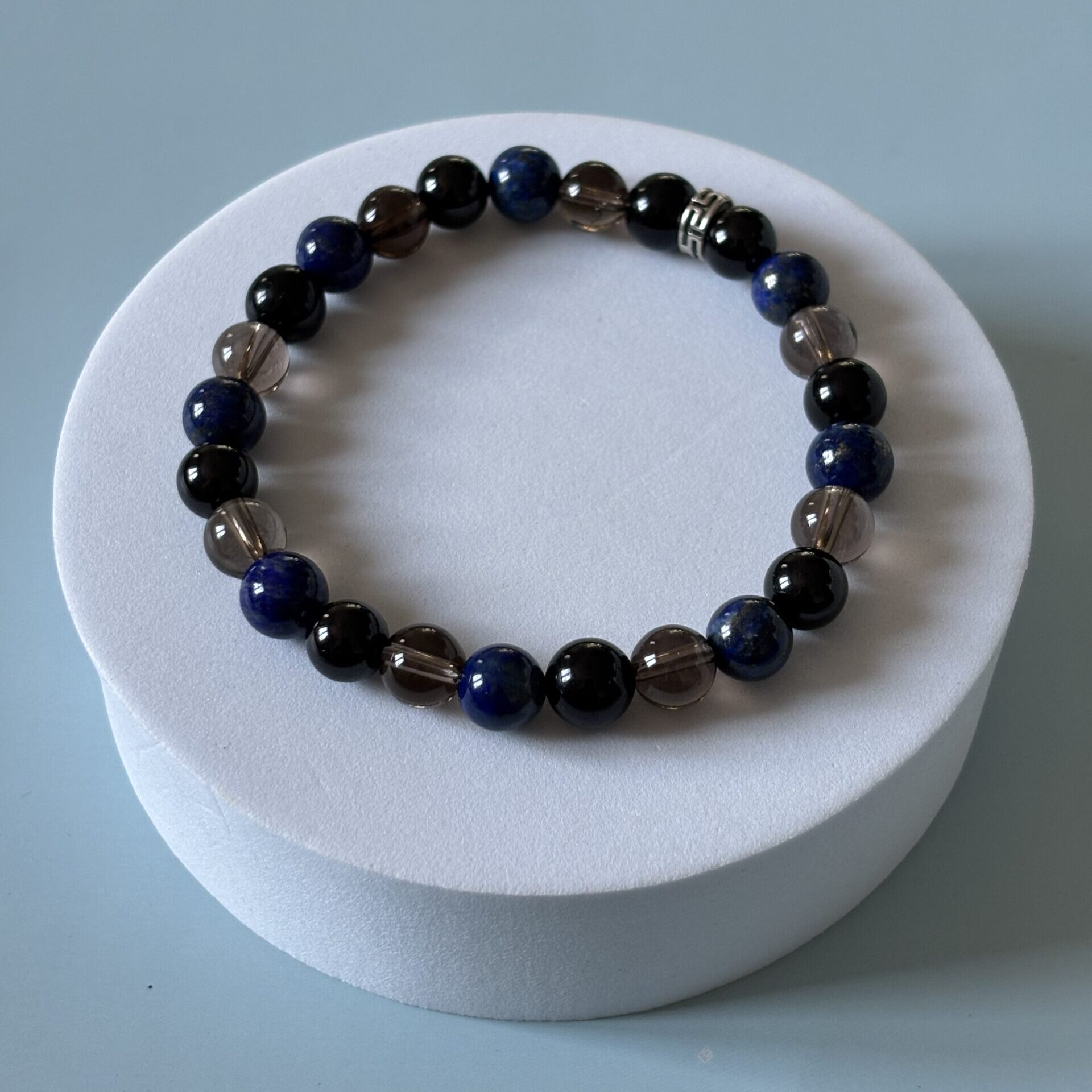 Bracelet du zodiaque – Signe de la sagittaire – Spinelle noire, lapis lazuli et quartz fumé.