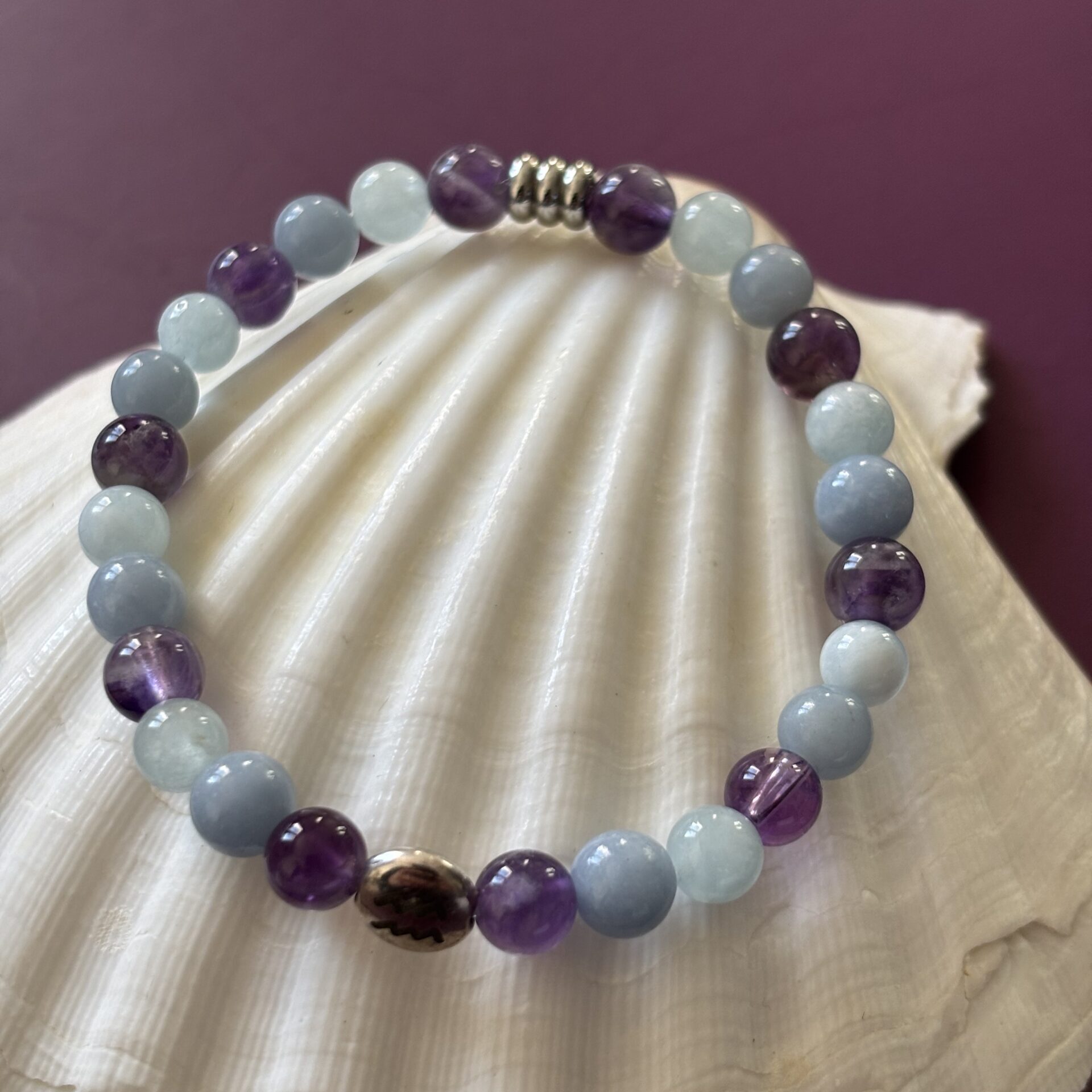 Bracelet zodiaque – Signe du Verseau – Angélite, aigue marine et améthyste chevron