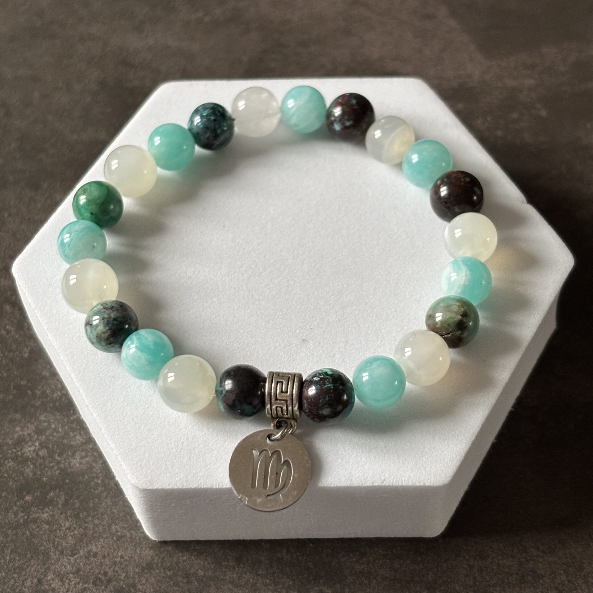 Bracelet du zodiaque – Signe de la vierge – Amazonite extra, chrysocolle et pierre de lune blanche