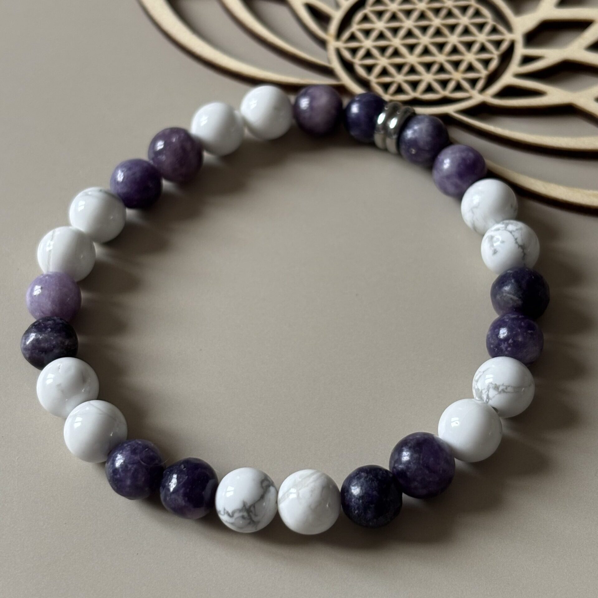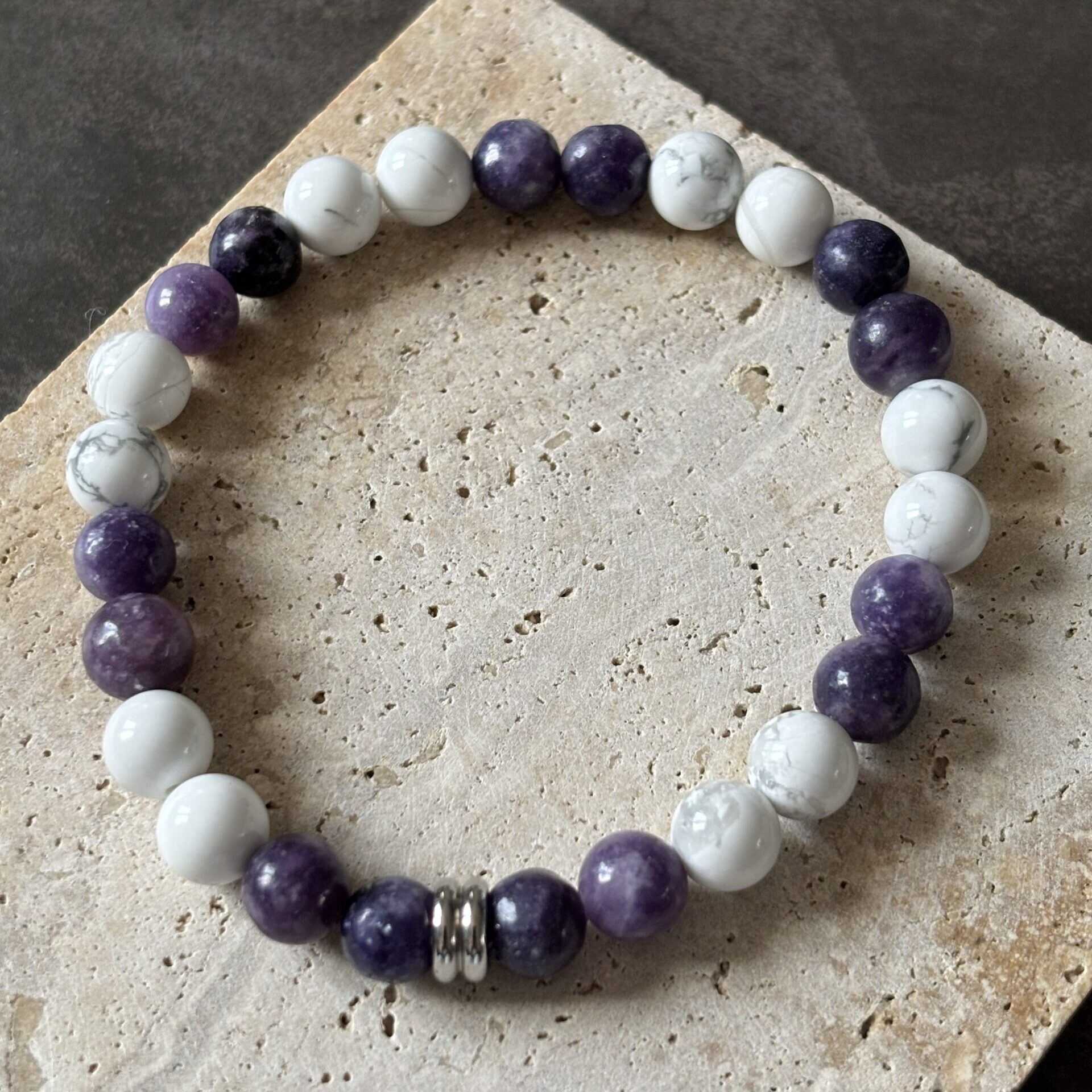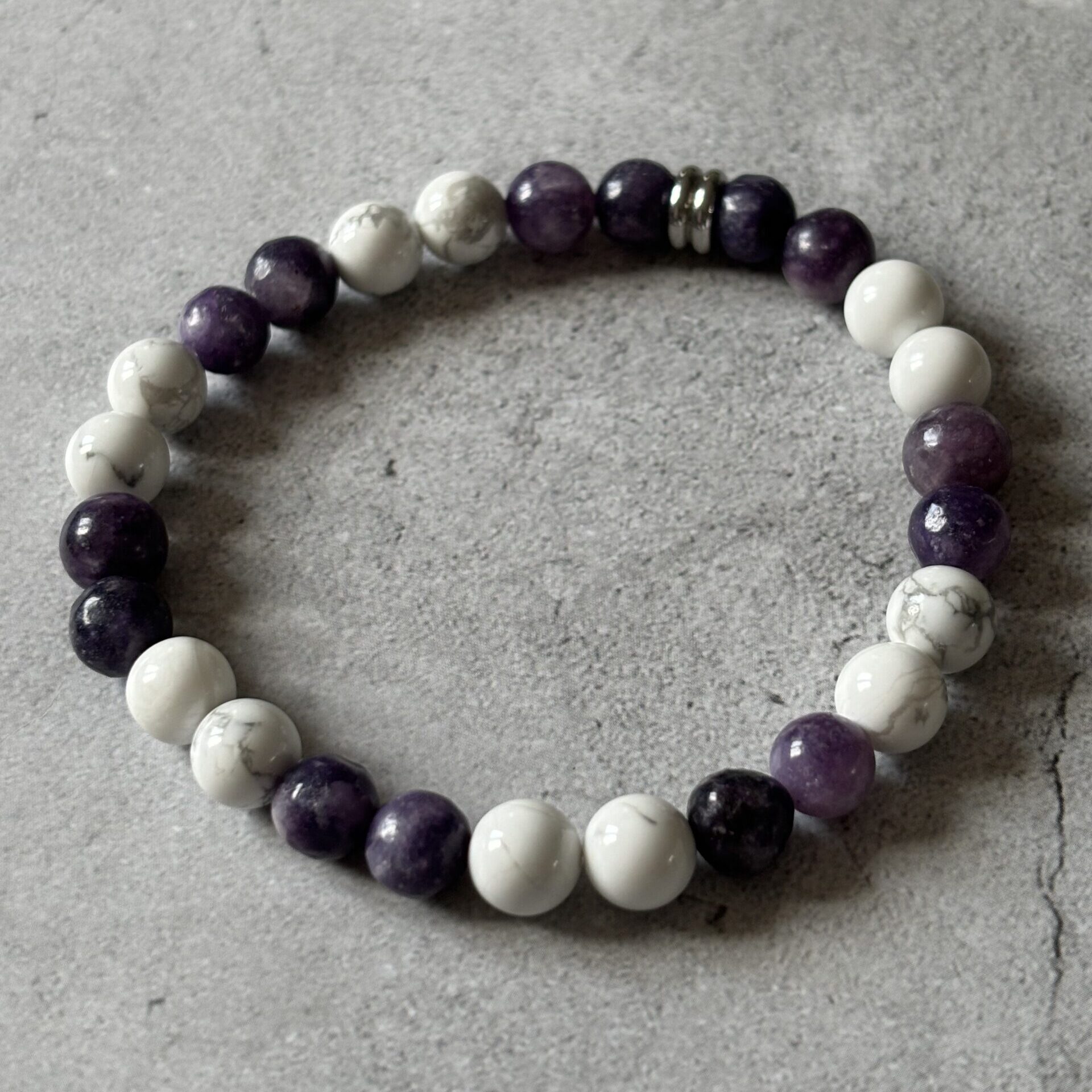 Bracelet Chakra Coronal : Howlite et lépidolite