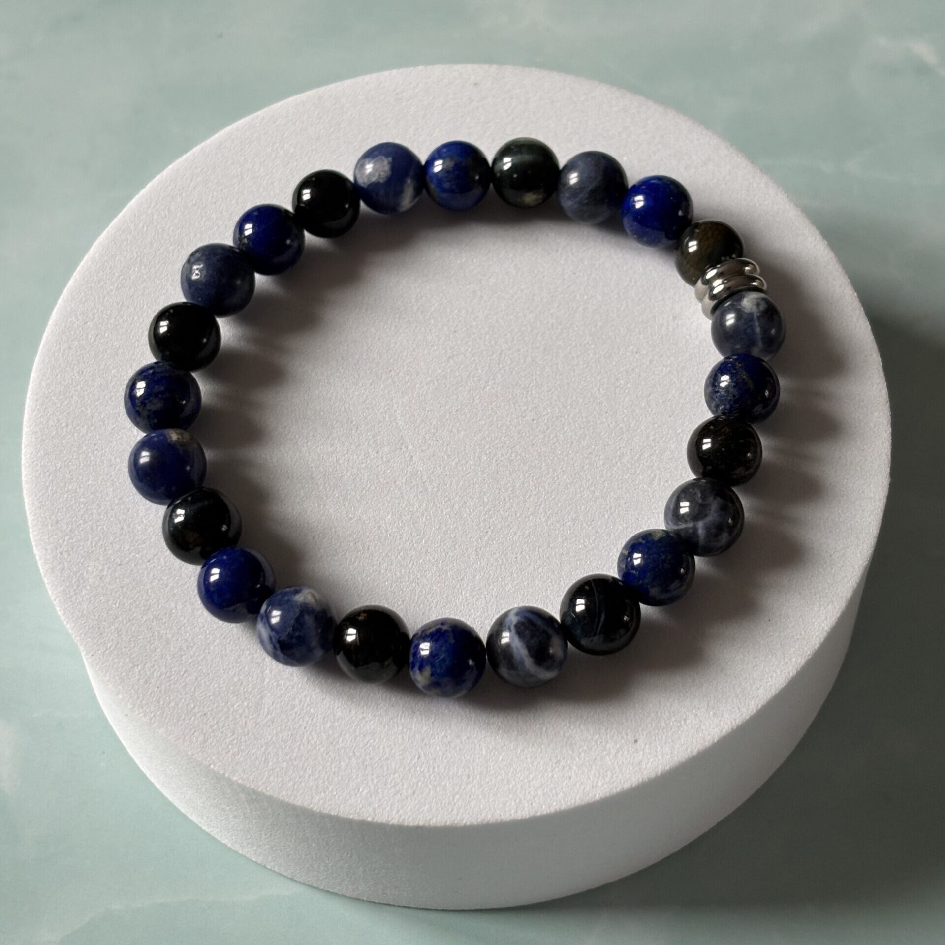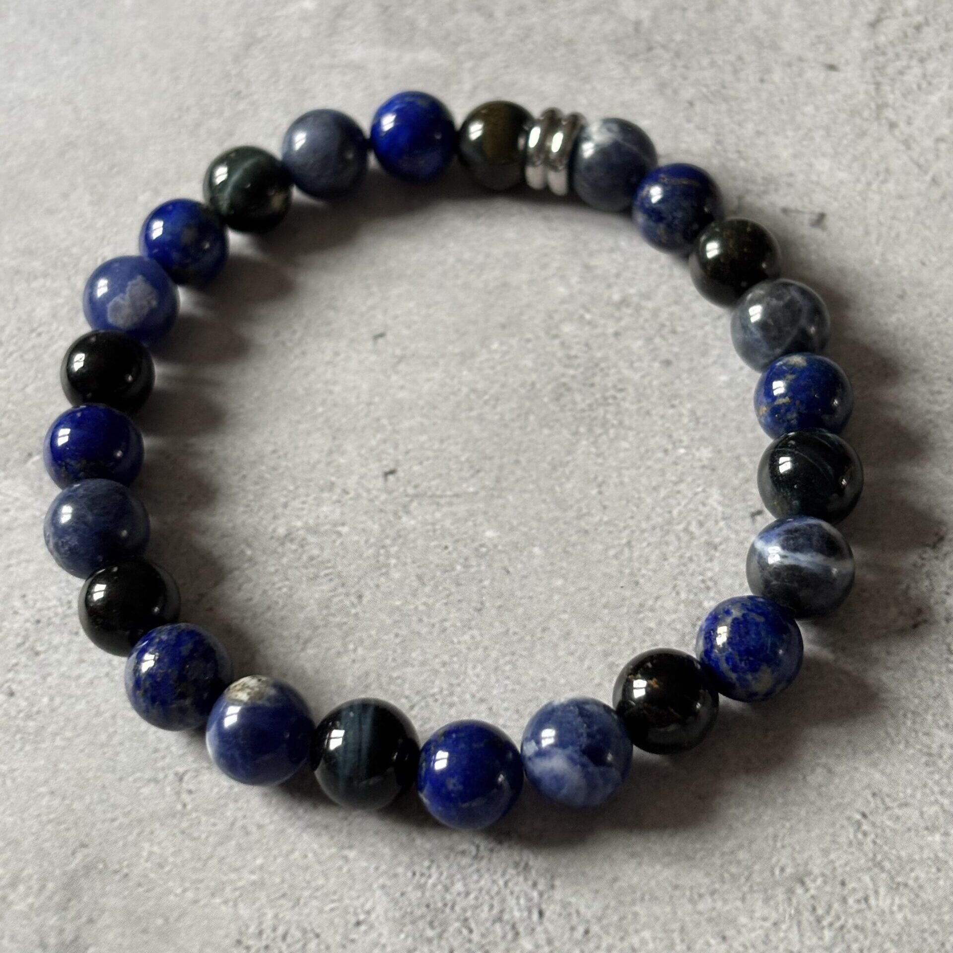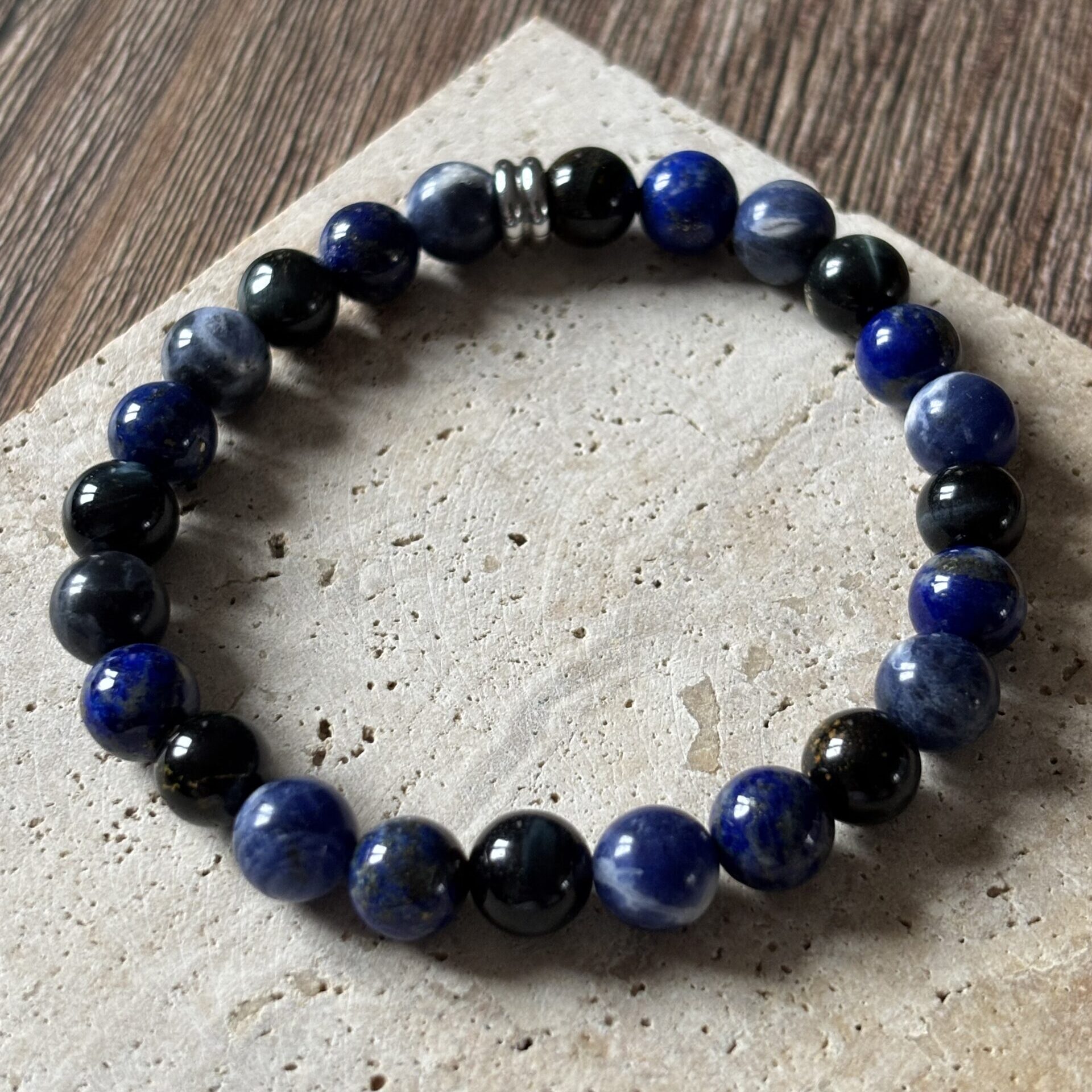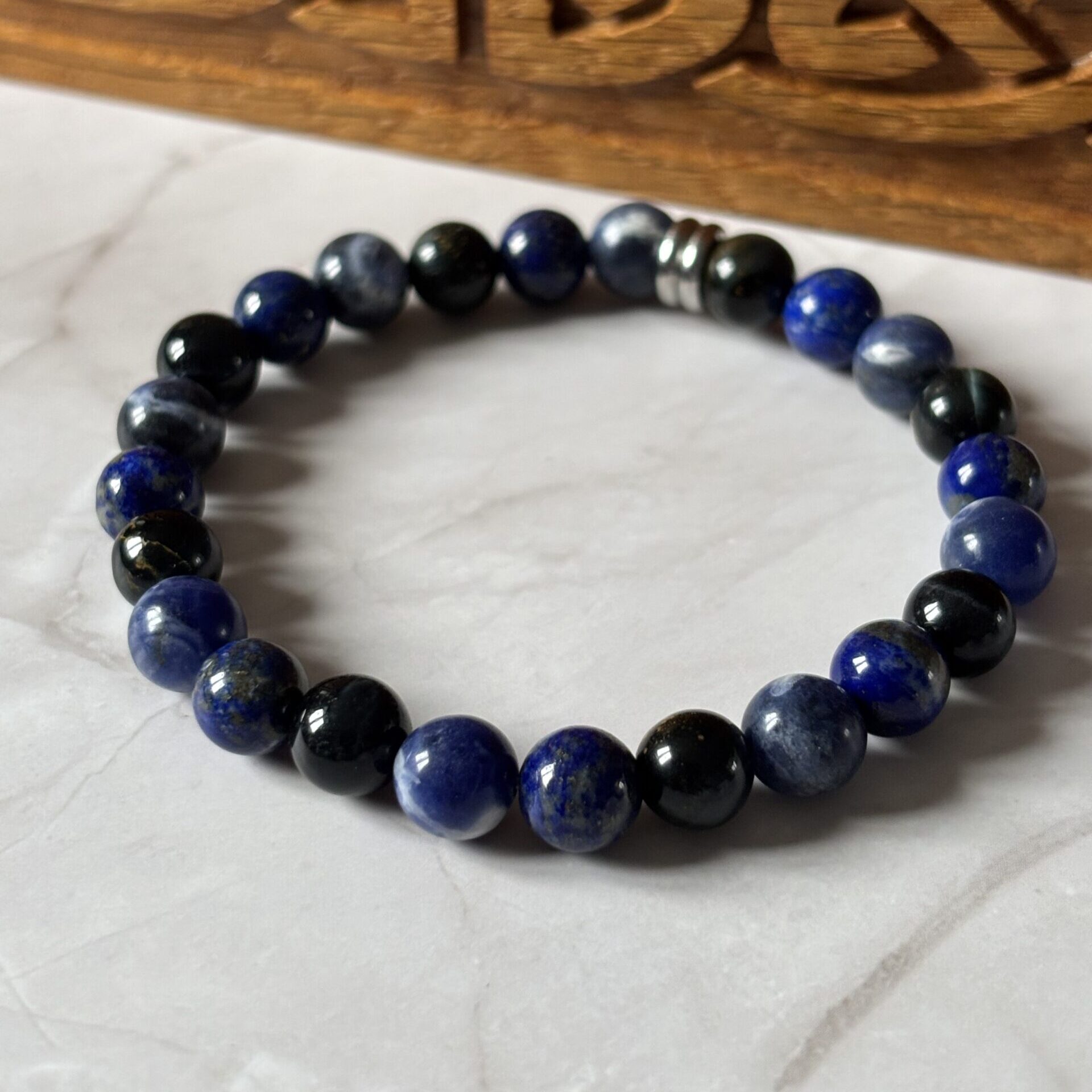 Bracelet Chakra Frontal : Lapis lazuli, sodalite et œil de faucon