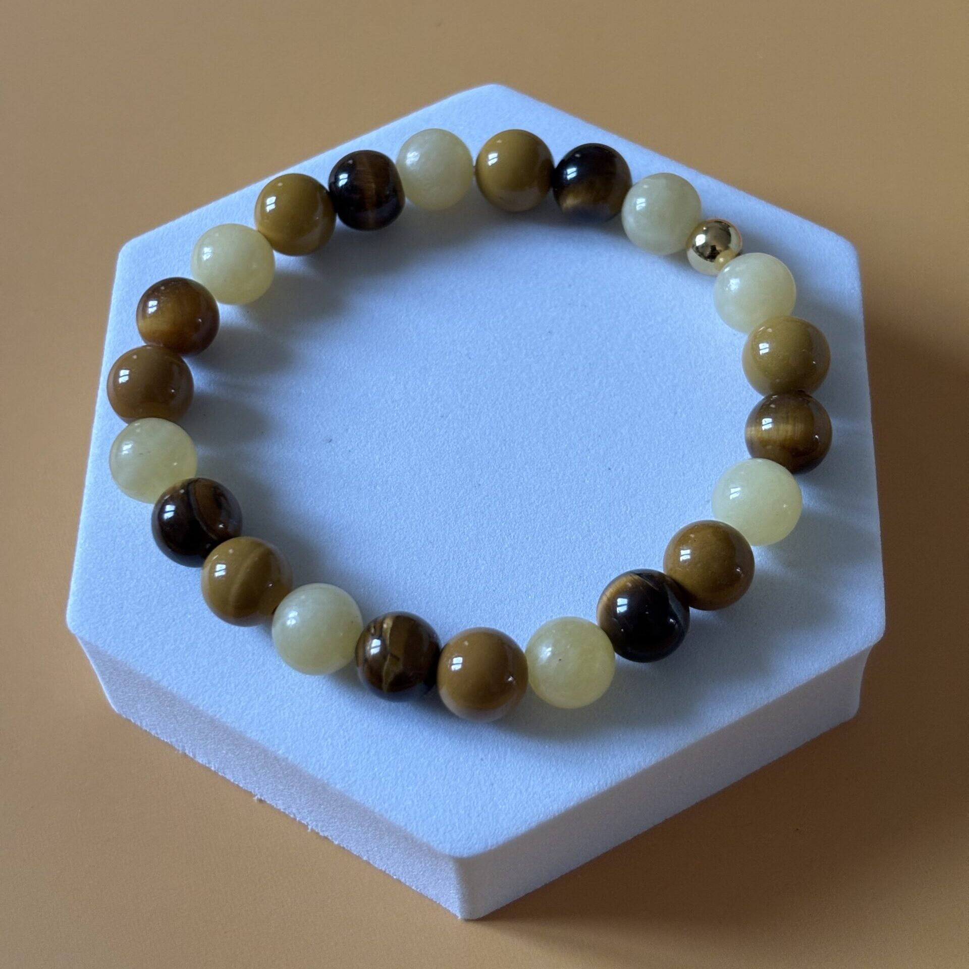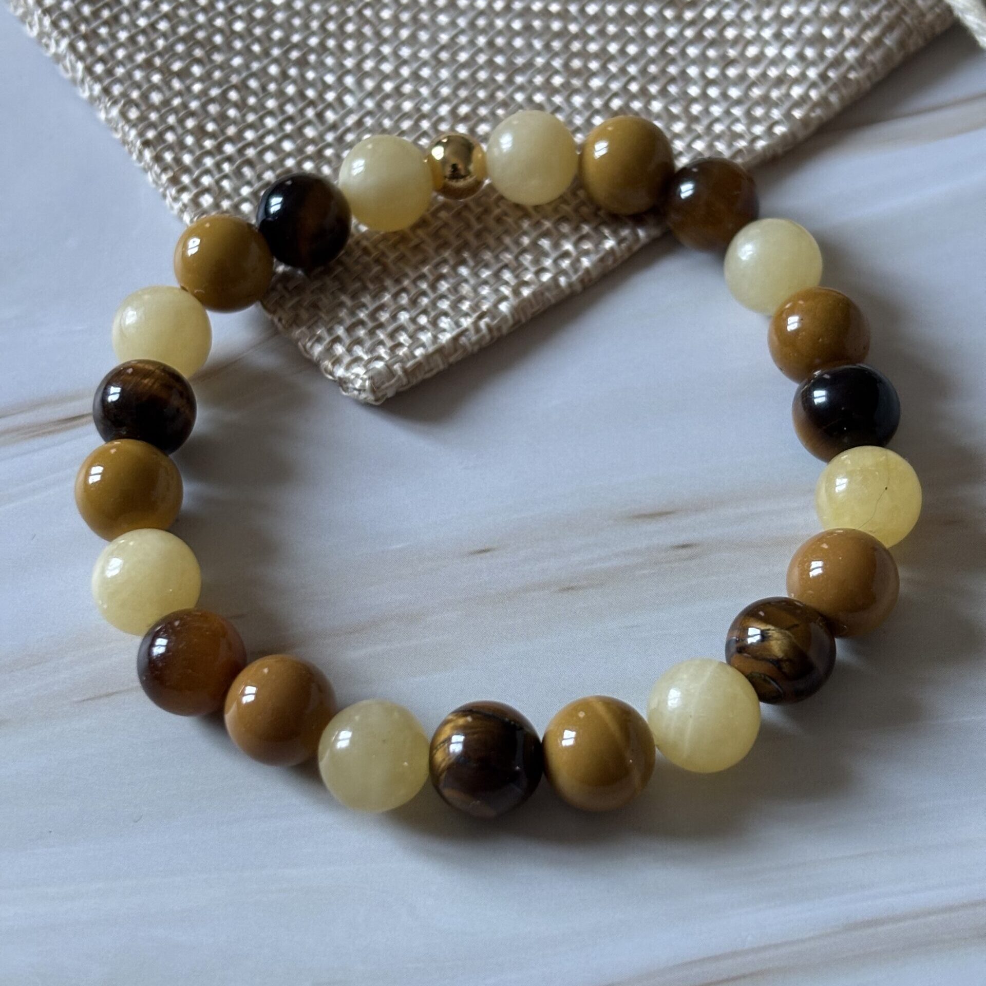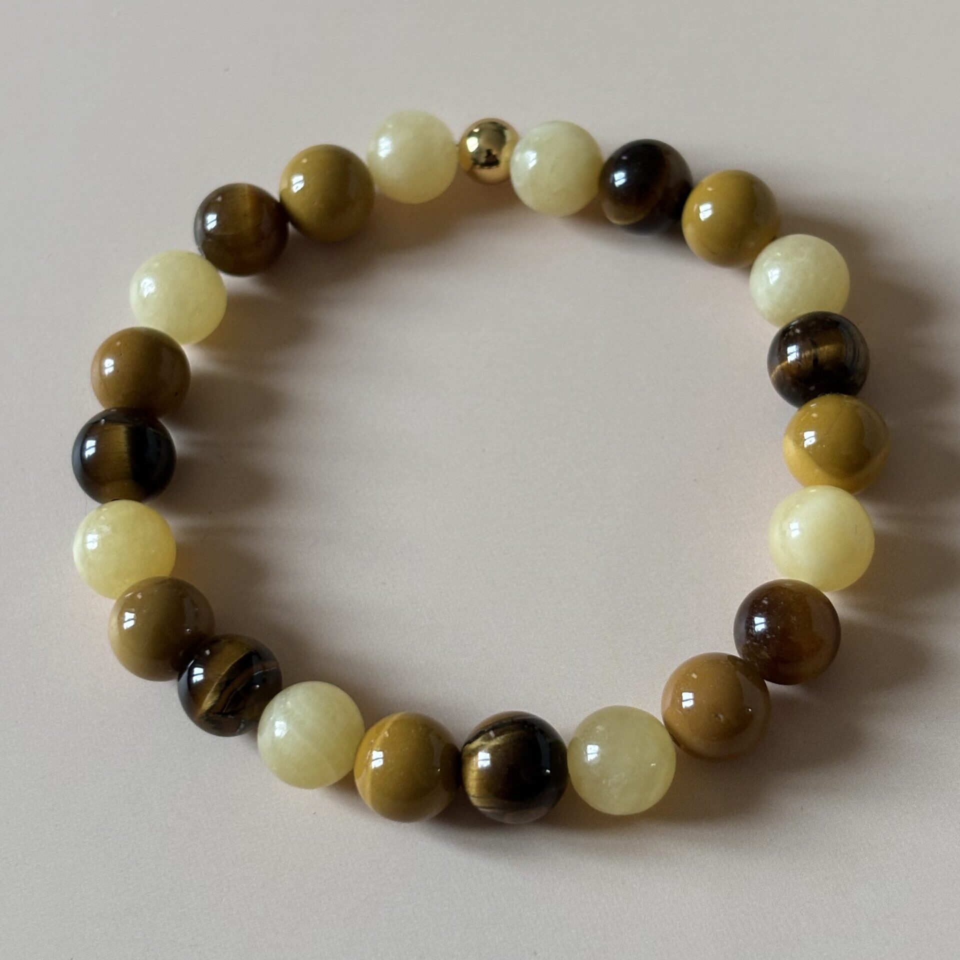 Bracelet Chakra Plexus solaire : Calcite, jaspe et tigre