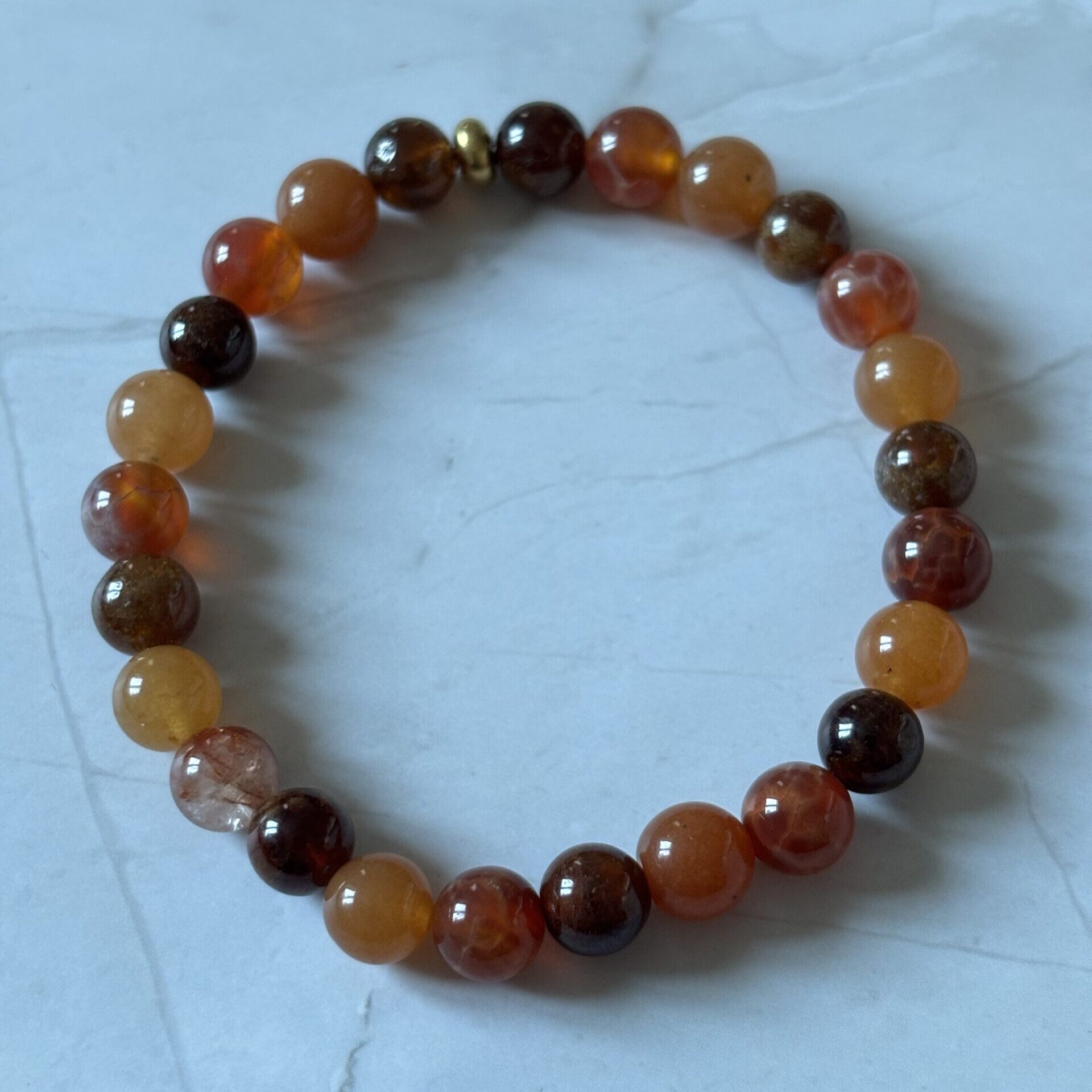 Ce bracelet Chakra Sacré associe le Grenat Hessonite, l’Aventurine Orange et l’Agate Feu pour stimuler créativité, vitalité et énergie intérieure.