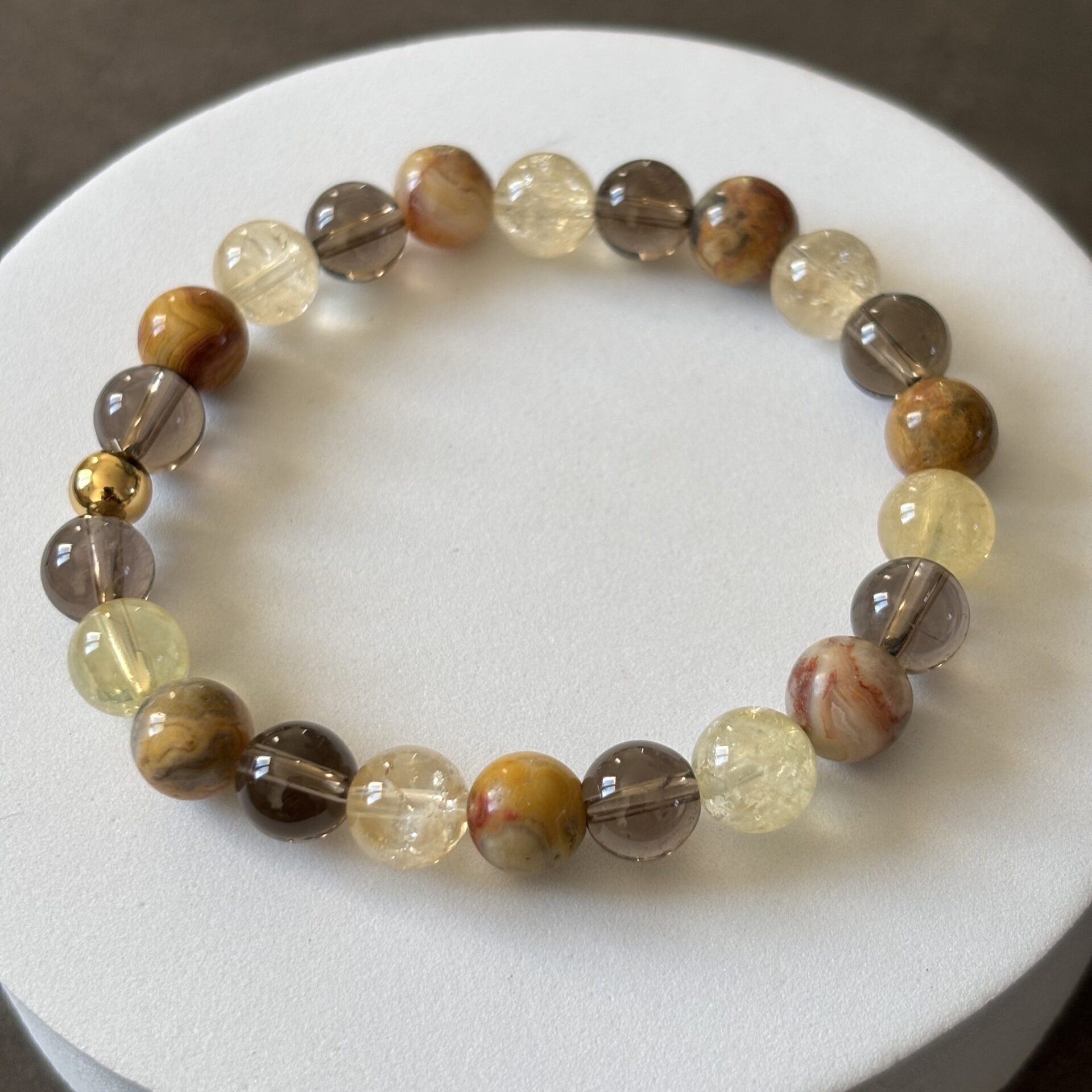 Bracelet spécifique confiance en soi : Agate crazy lace, quartz fumé et citrine