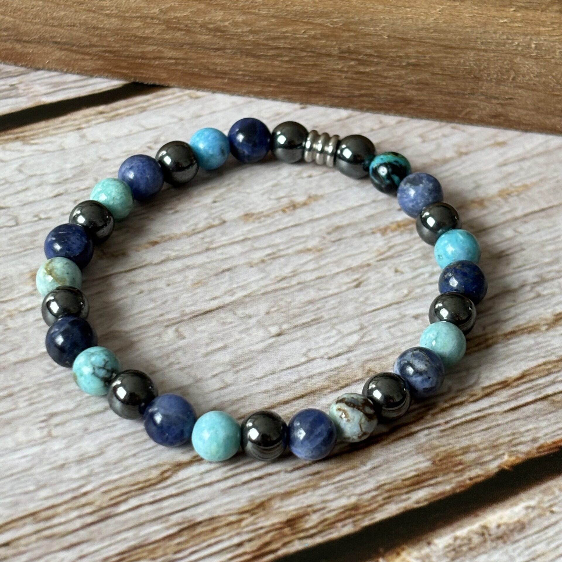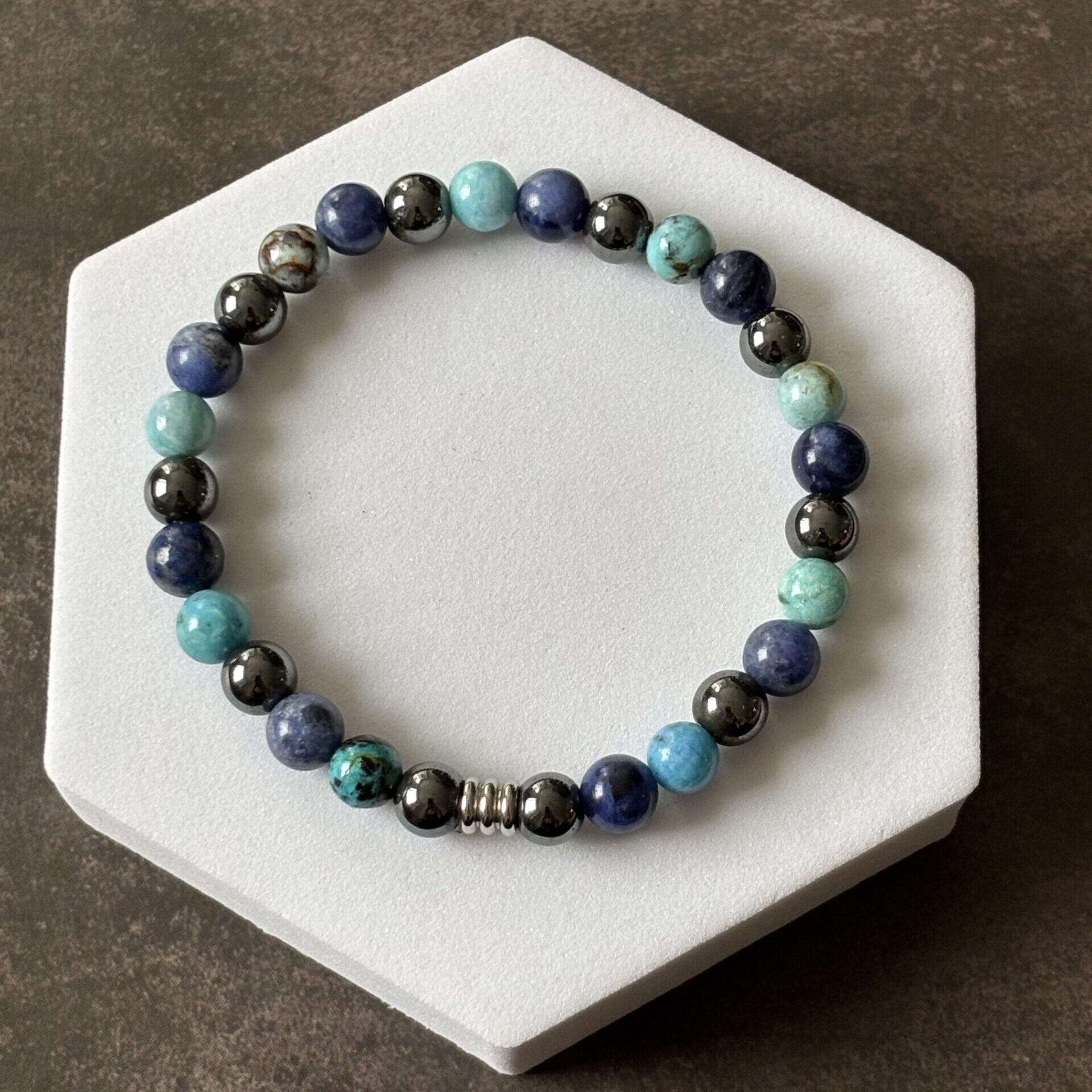Bracelet confiance en soi : Hématite, sodalite et opale bleue