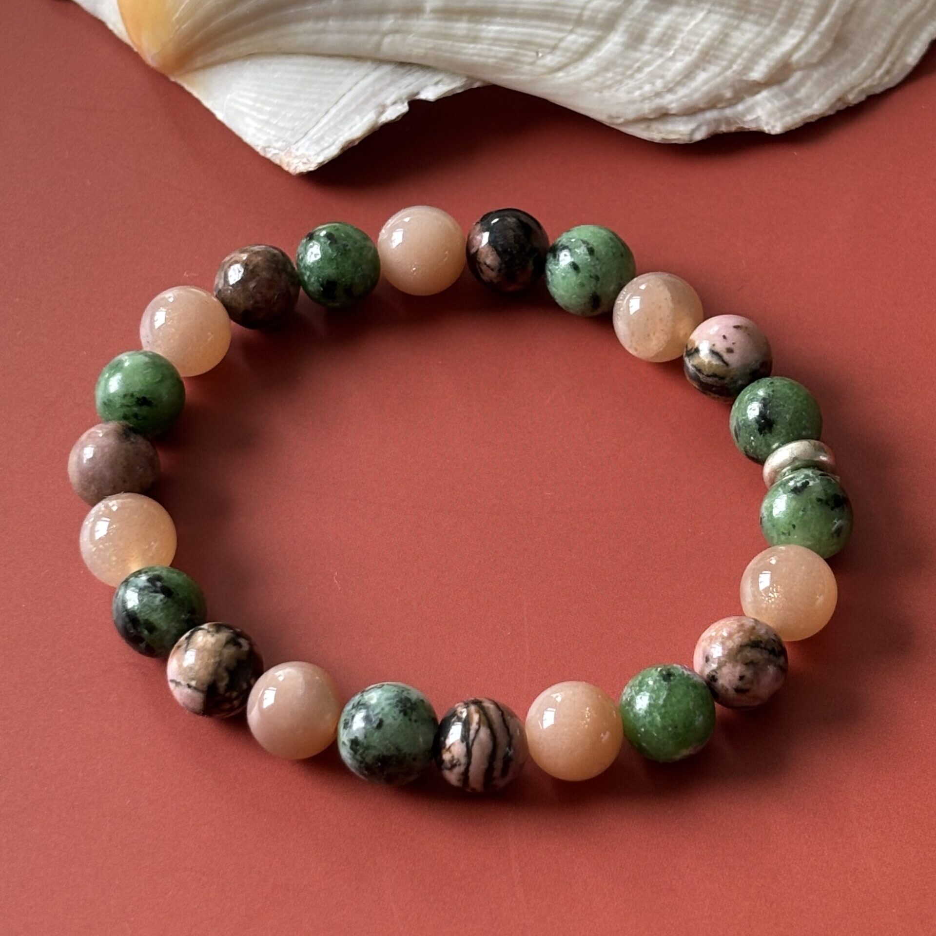 Bracelet fertilité : Pierre de lune, rhodonite et zoisite