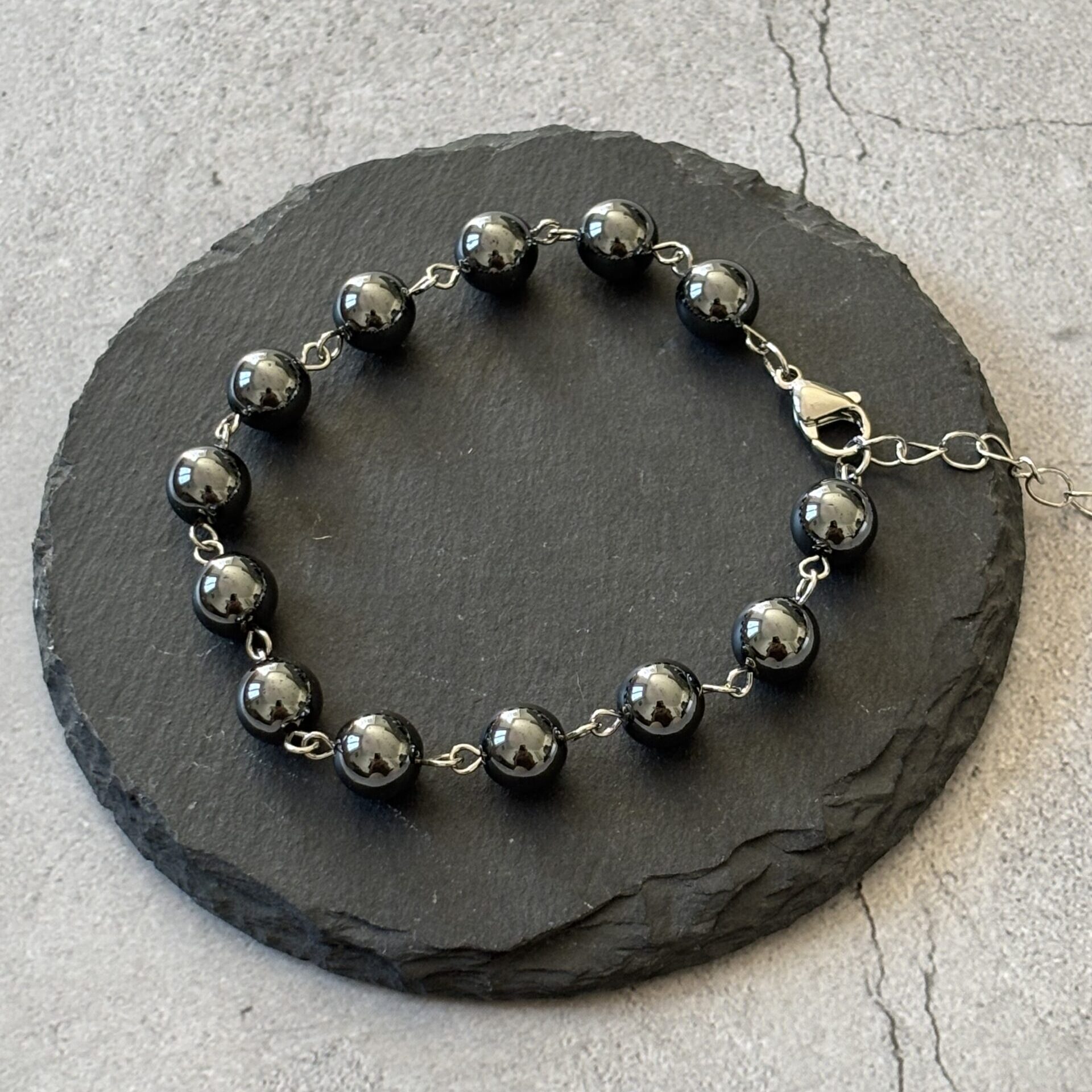 Bracelet HEMATITE et métal argenté