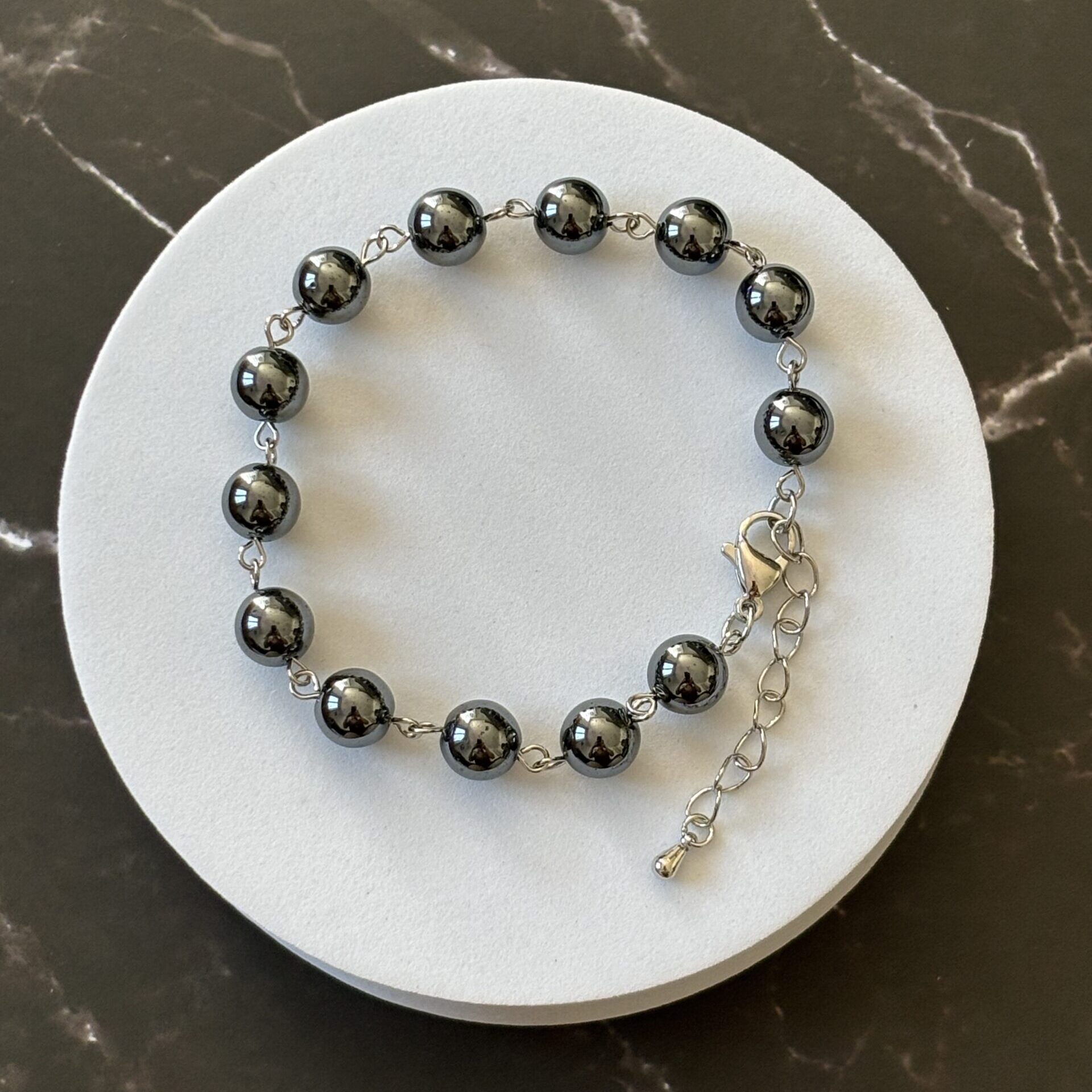 Bracelet perles 8 mm rondes sur chaînette métal argenté – Qualité AA très bonne