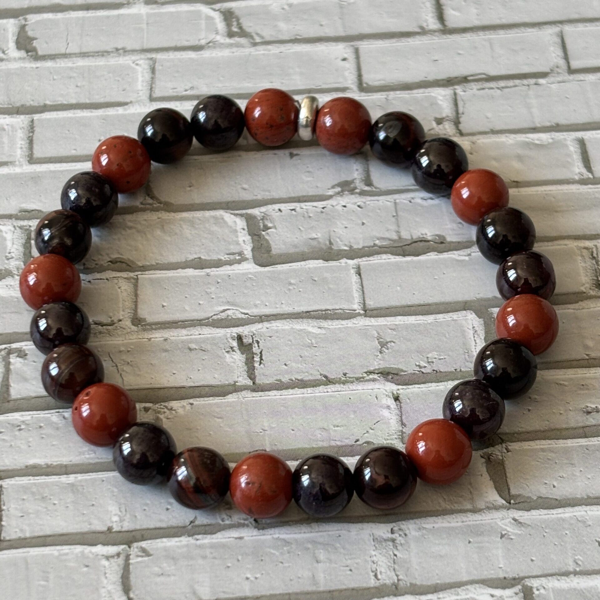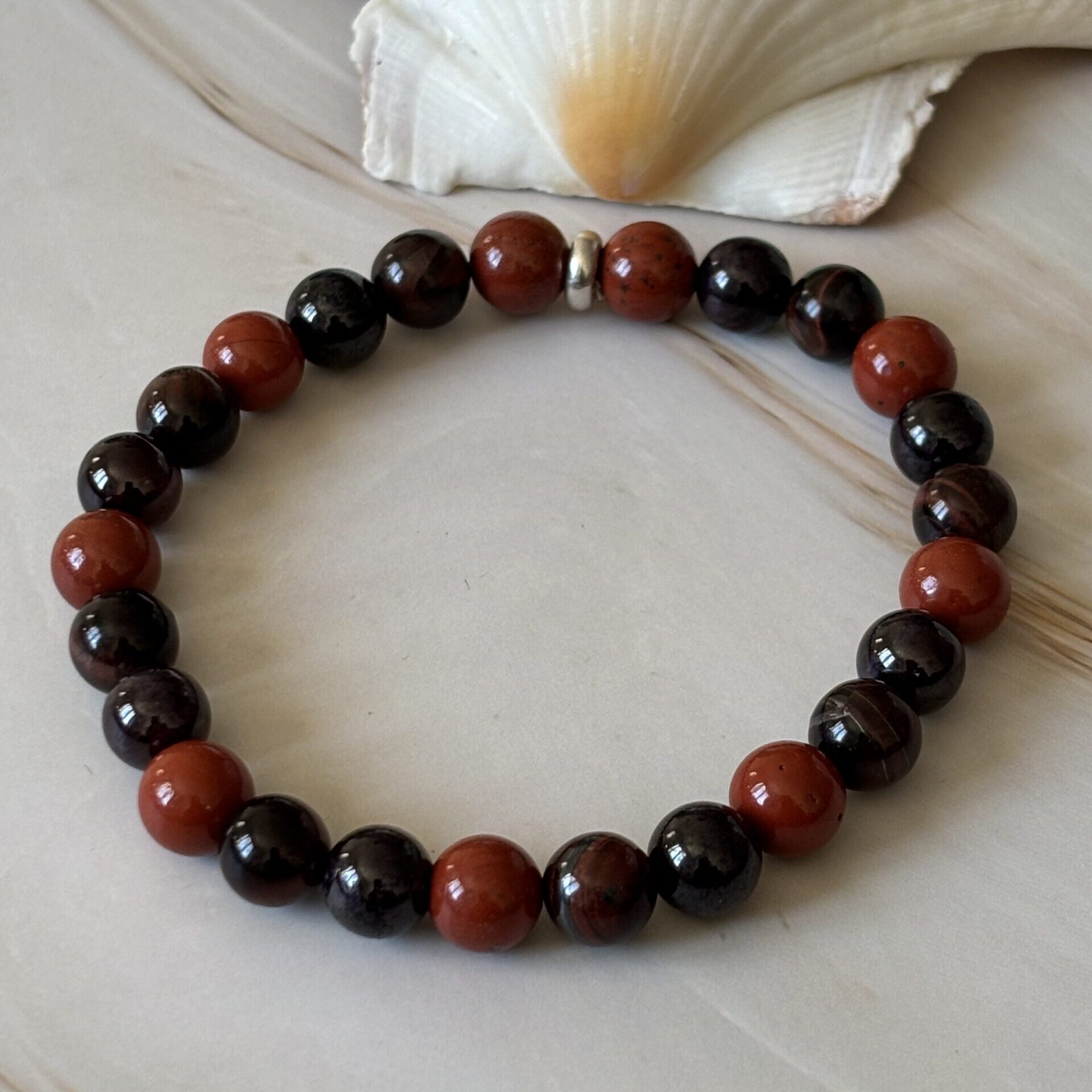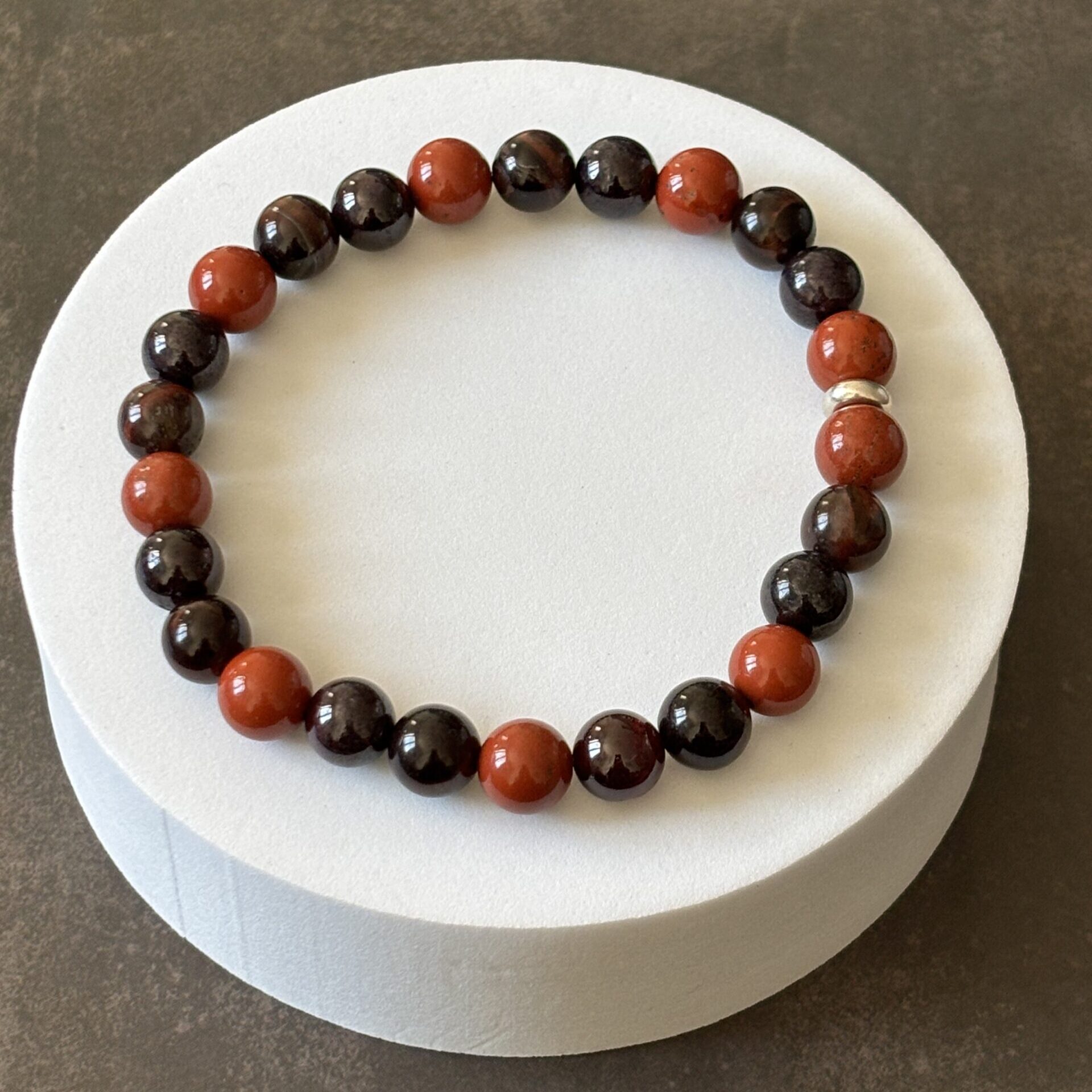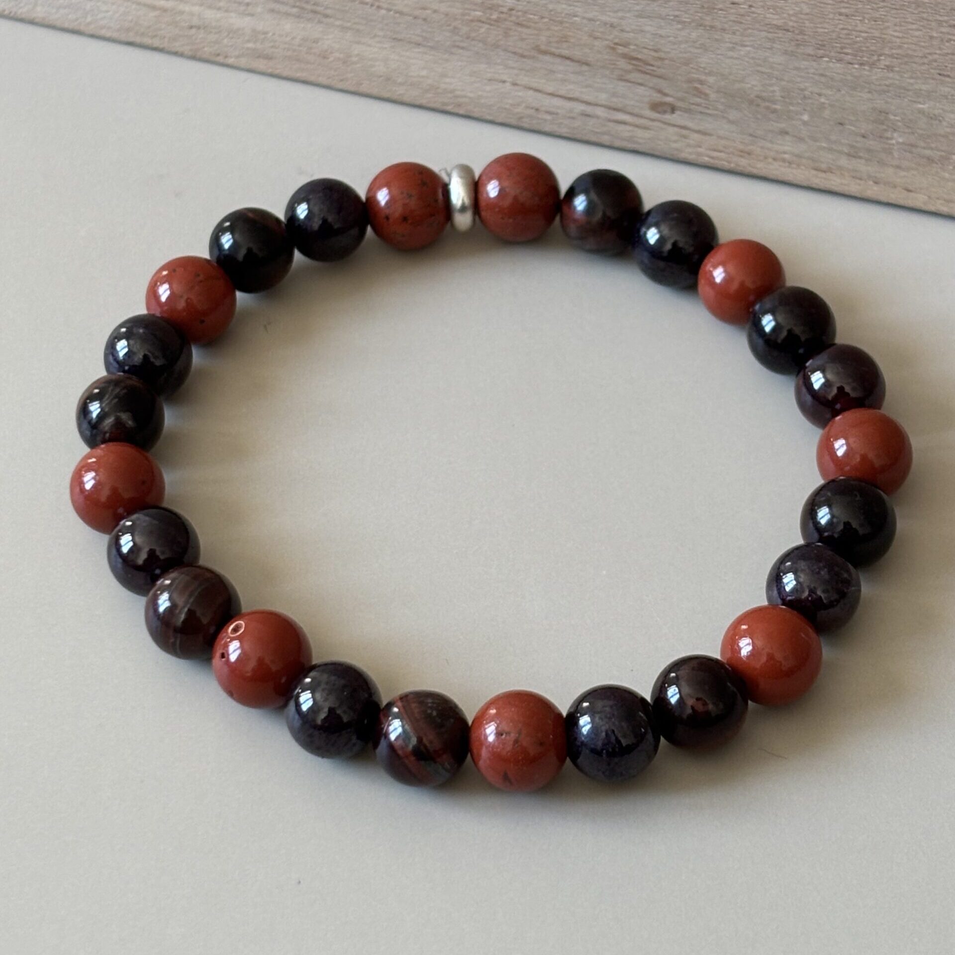 Bracelet libido : Grenat, jaspe rouge et œil de taureau