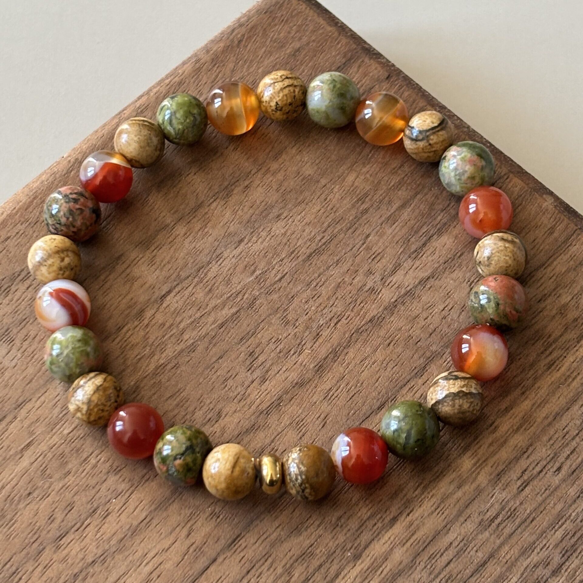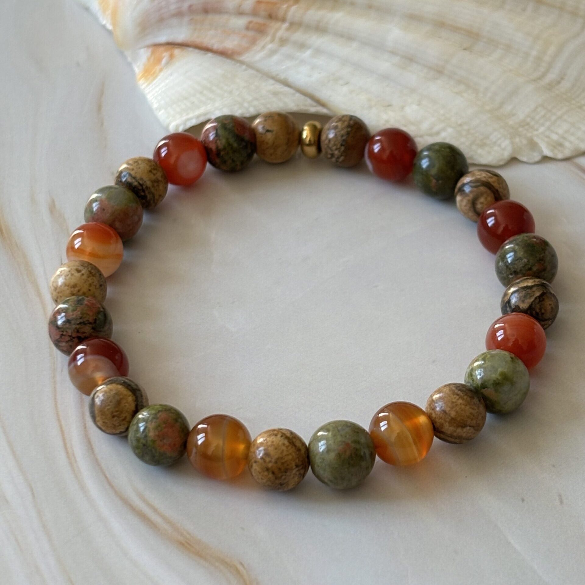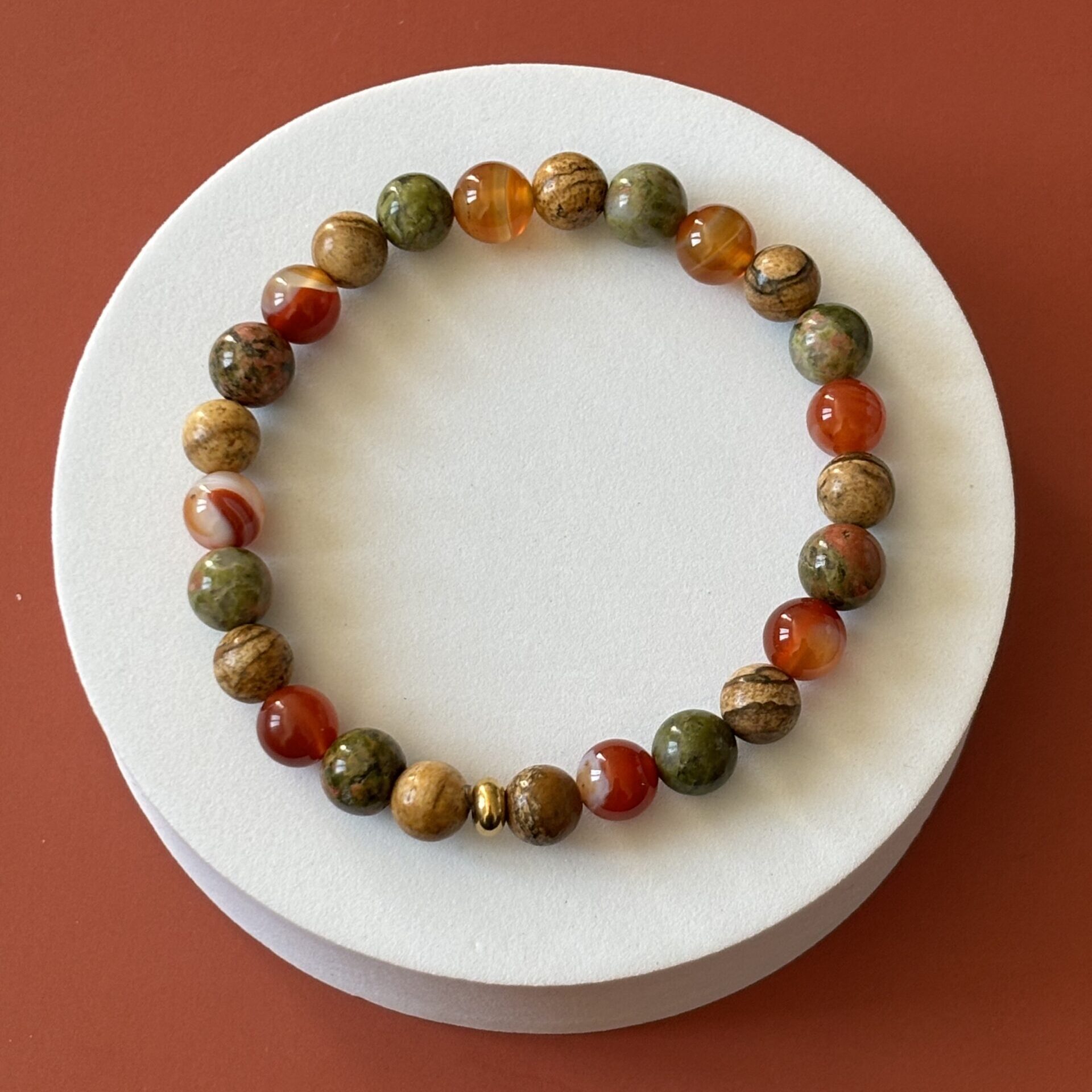 Ce bracelet réunit trois pierres puissantes. Ensemble, elles apportent énergie, courage et clarté d’esprit. Elles aident à avancer avec sérénité et détermination. En équilibrant les émotions et en renforçant la volonté, elles offrent un soutien précieux pour une nouvelle étape de vie.