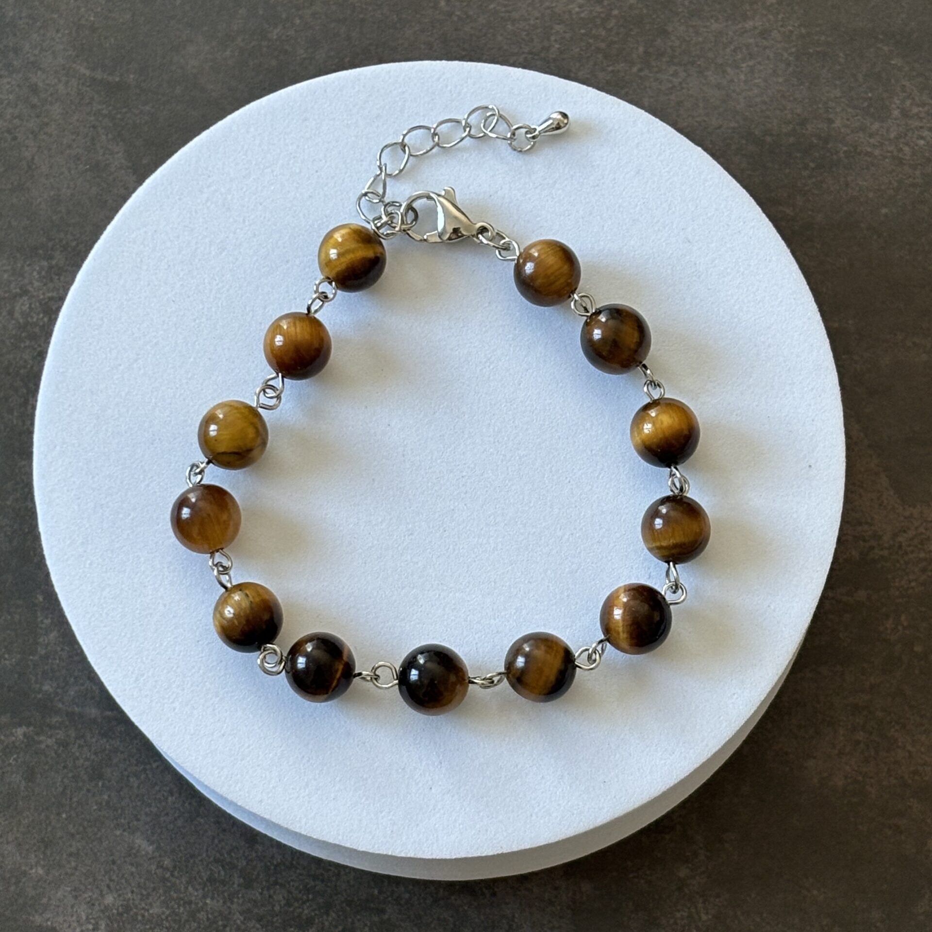 Bracelet perles 8 mm rondes sur chaînette métal argenté – Qualité AA très bonne