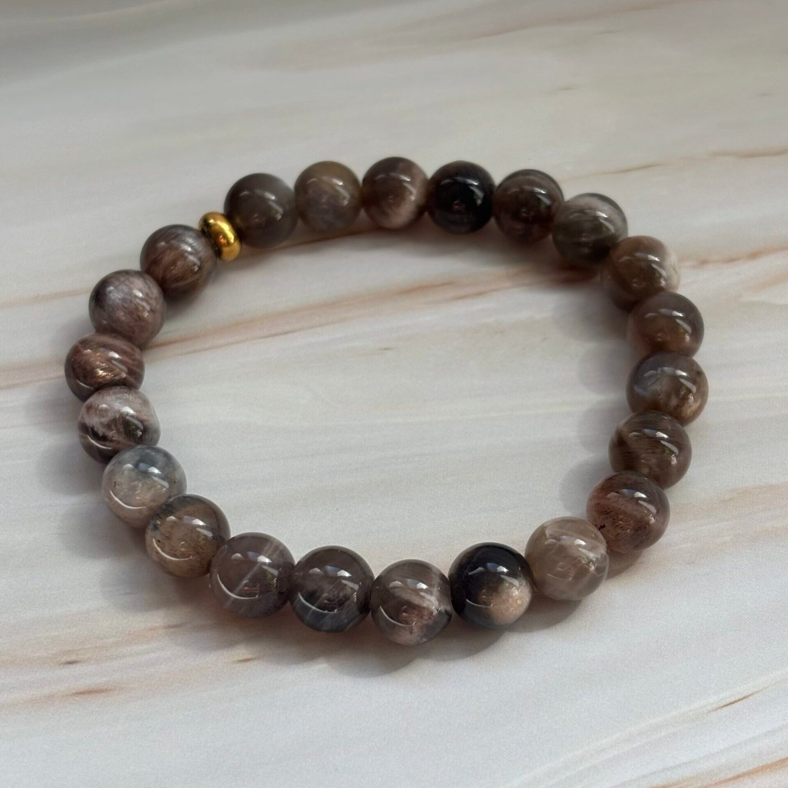 Bracelet perles pierre de lune noire – Provenance Madagascar – Qualité AA très bonne