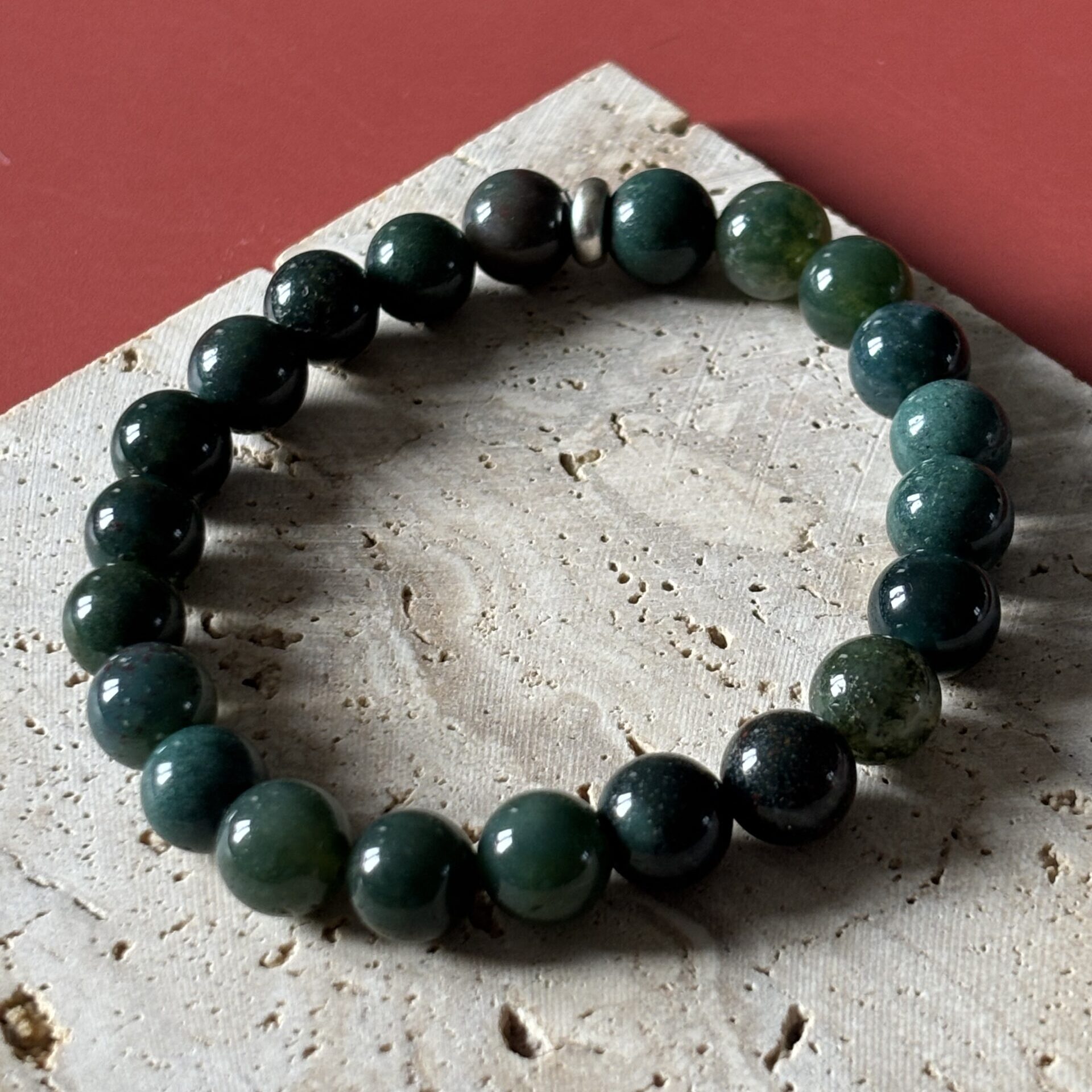 Bracelet perles agate mousse – Provenance Brésil – Qualité AA très bonne
