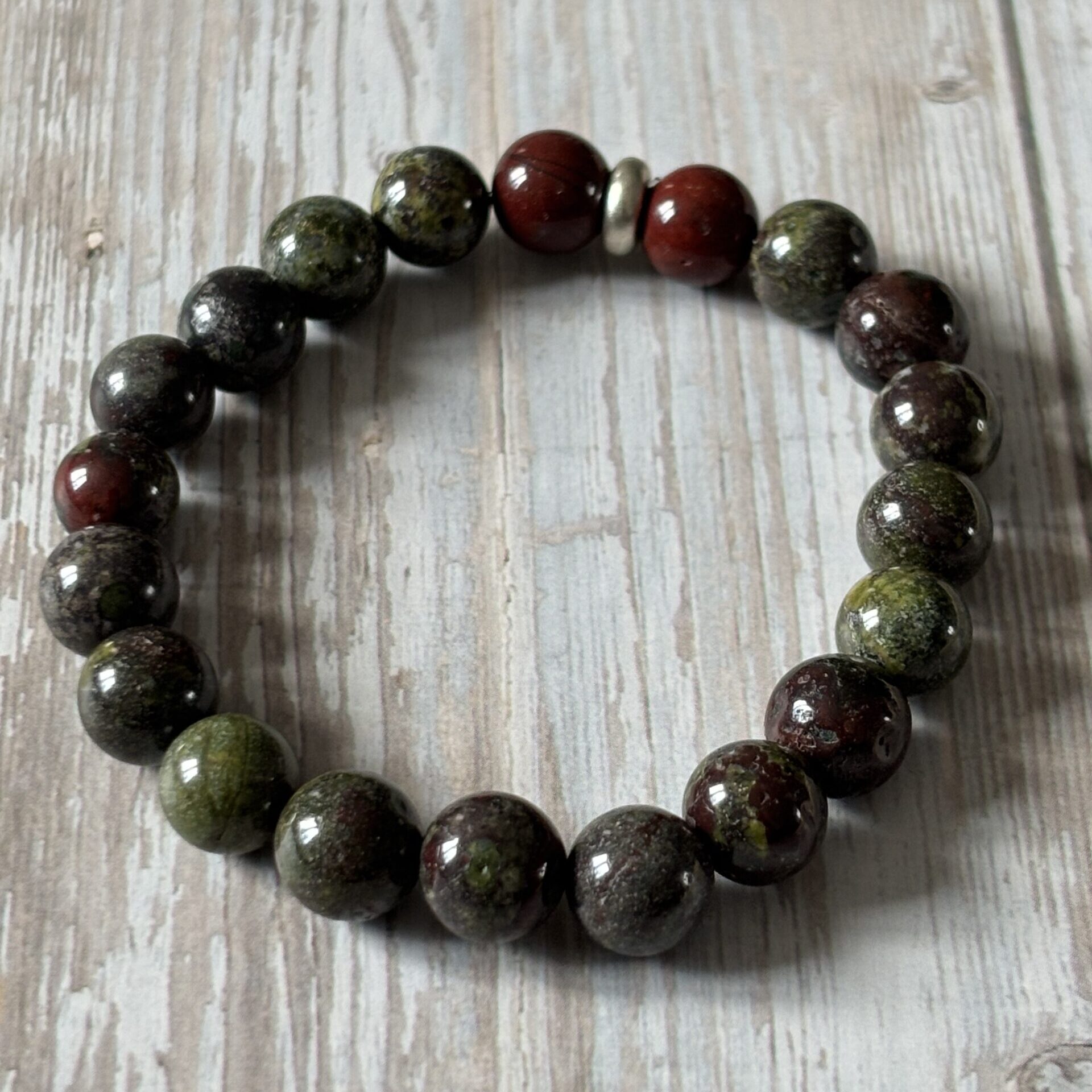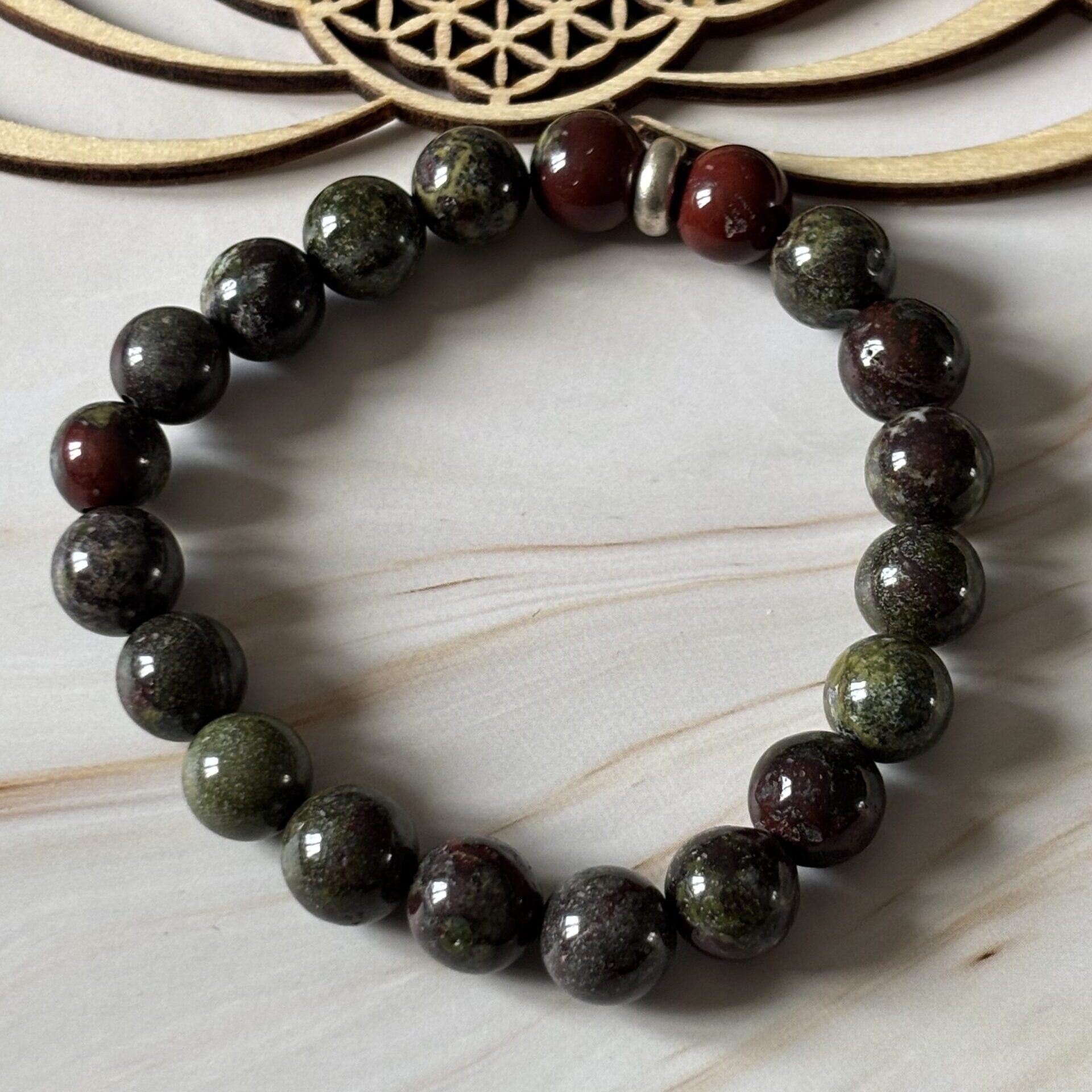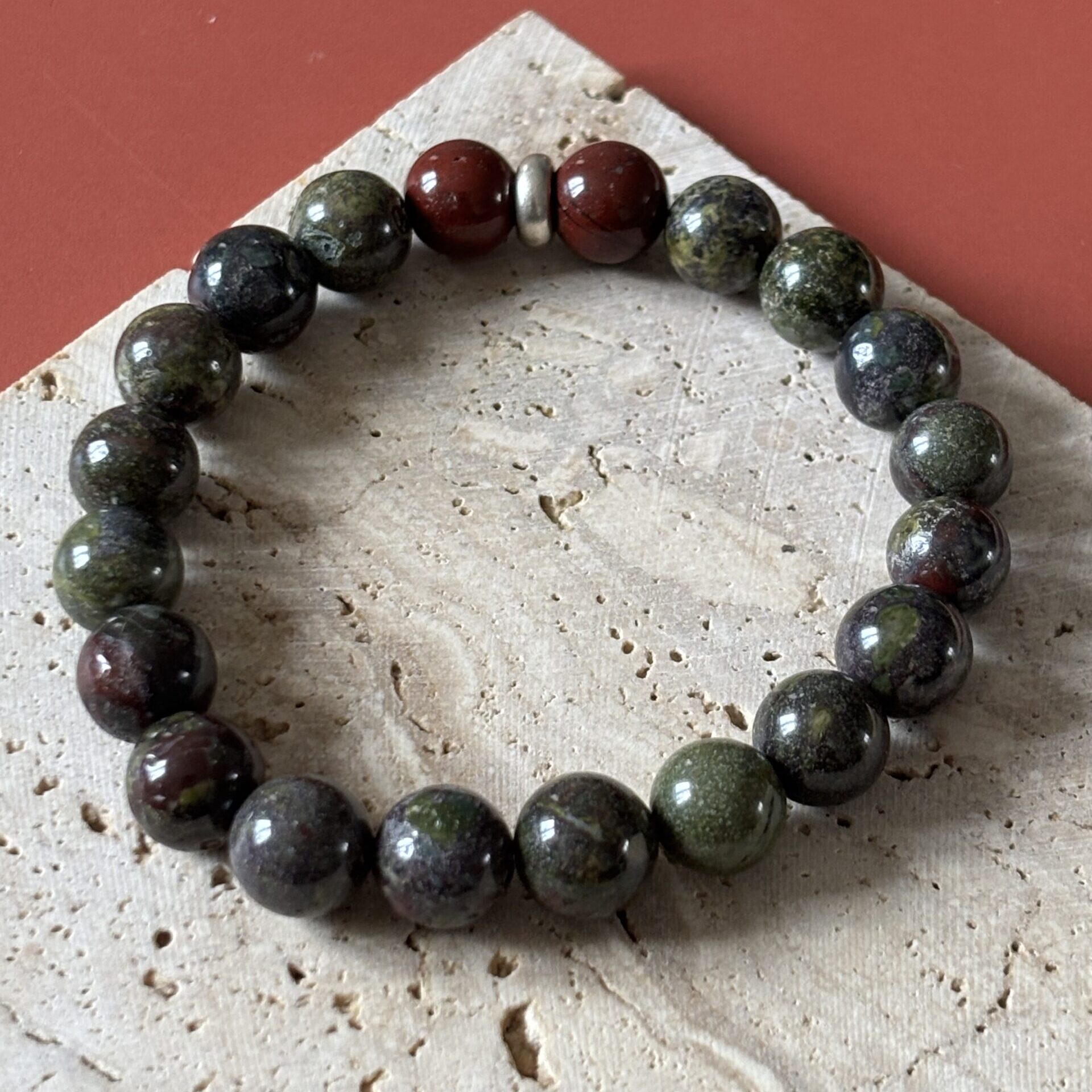 Bracelet perles jaspe sang du dragon – Provenance Madagascar – Qualité AA très bonne