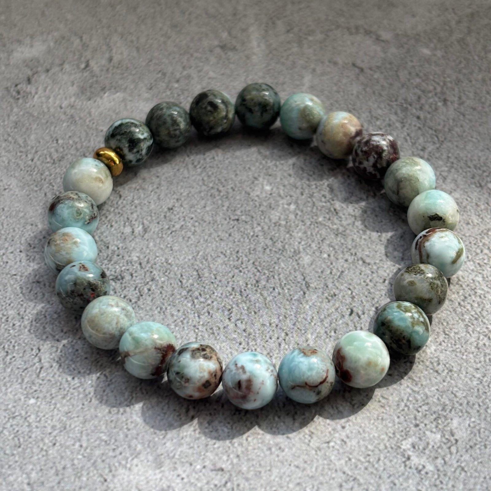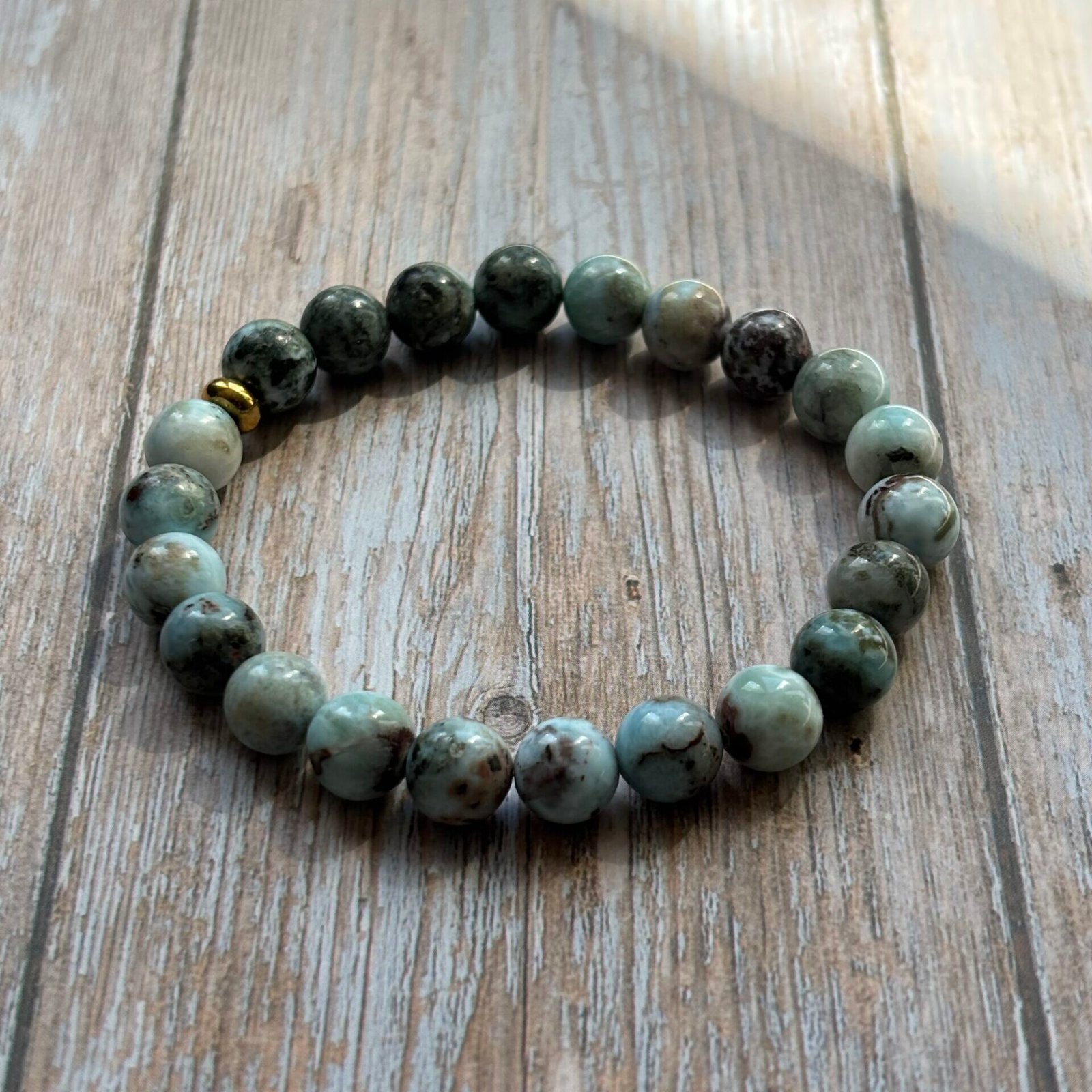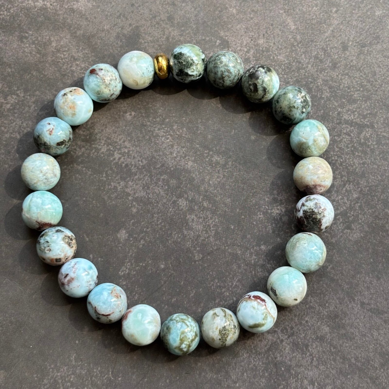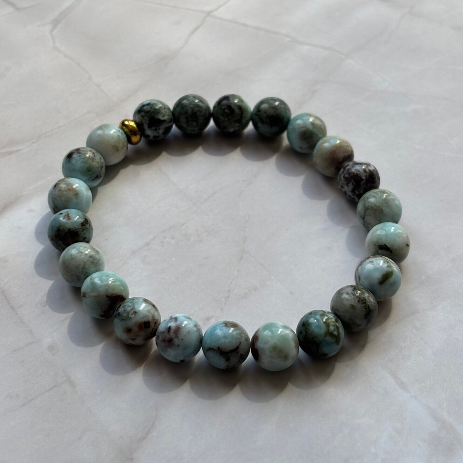 Bracelet perles naturelles larimar – Provenance Madagascar – Qualité AA très bonne.