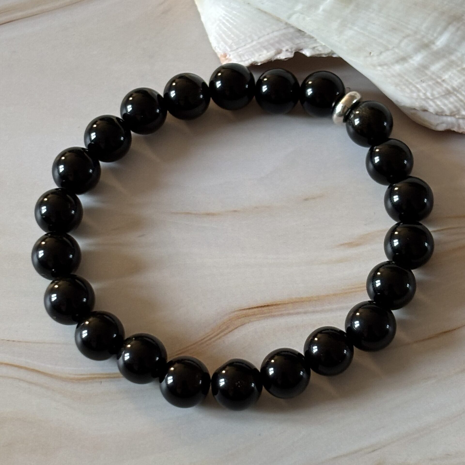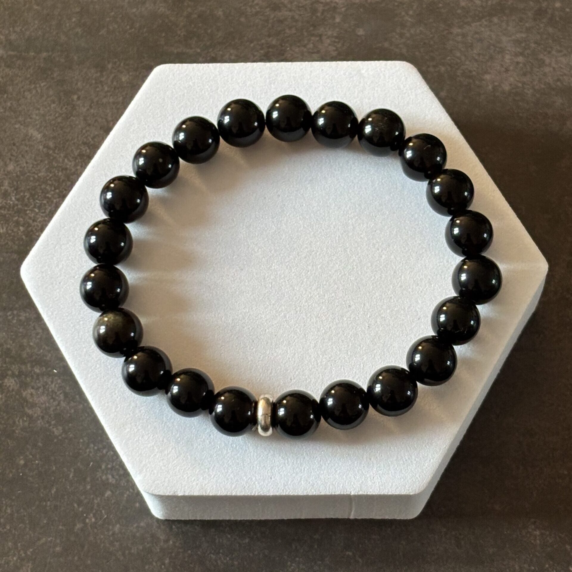 Bracelet perles obsidienne céleste – Provenance Mexique – Qualité AA très bonne