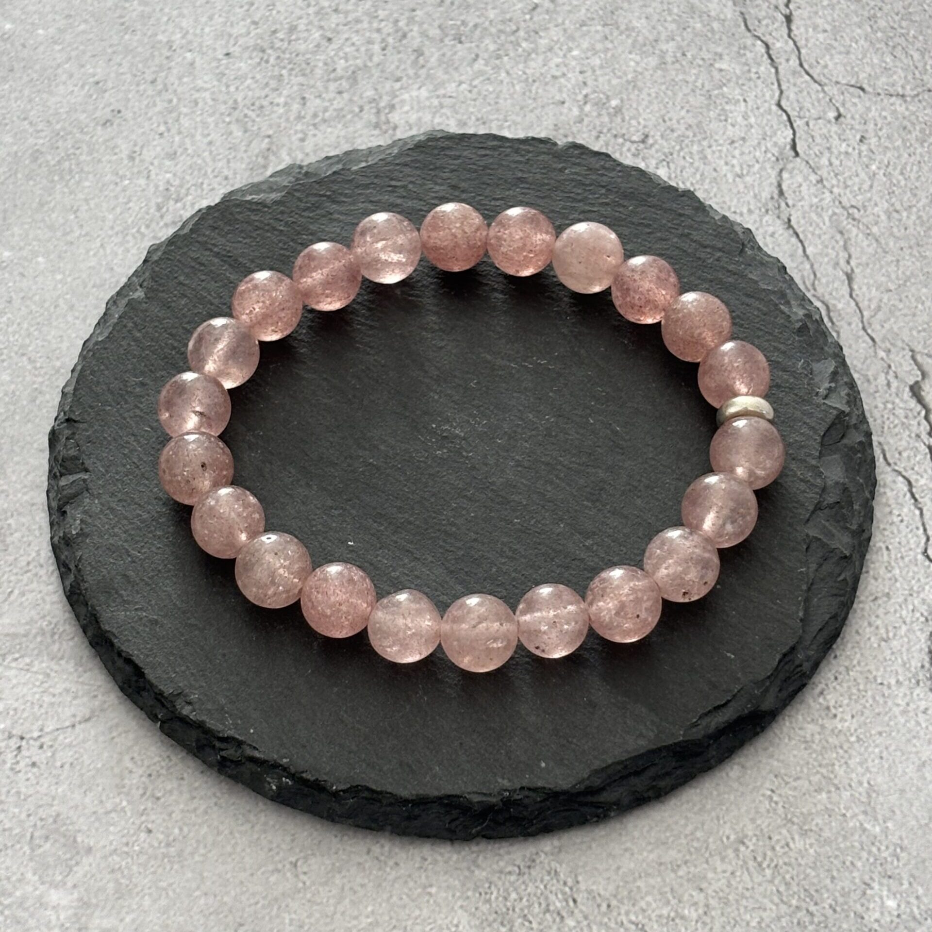 Bracelet perles quartz fraise – Provenance Afrique – Qualité AA très bonne