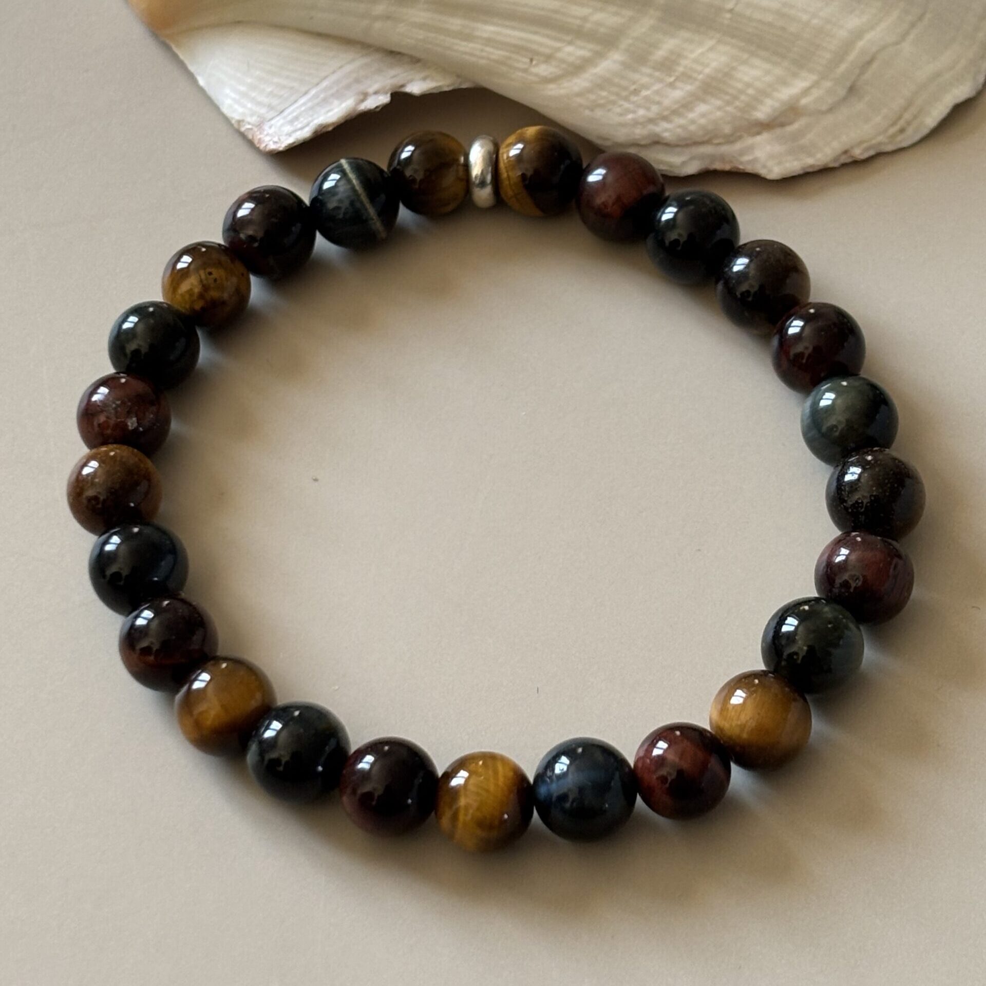 L’association de l’œil de tigre, de l’œil de taureau et de l’œil de faucon crée un bouclier de protection énergétique exceptionnel. Ces trois pierres naturelles se complètent parfaitement. Ensemble, elles forment une synergie protectrice qui repousse les énergies négatives. Ainsi, ce bracelet devient un véritable talisman de protection au quotidien.