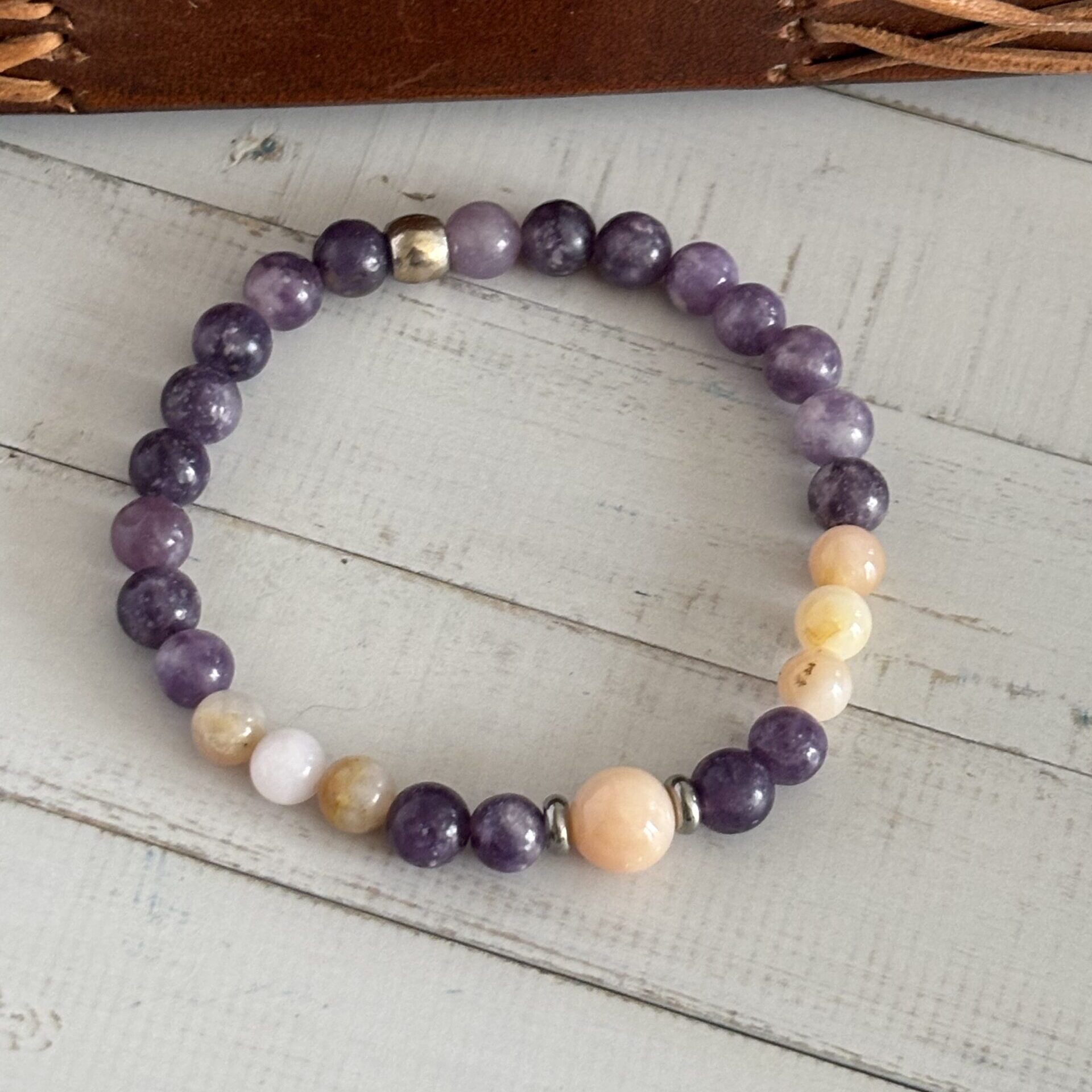 Bracelet zodiaque – Signe de la Balance – Lépidolite et opale rose- Perles 6 mm et une perle de 8 mm