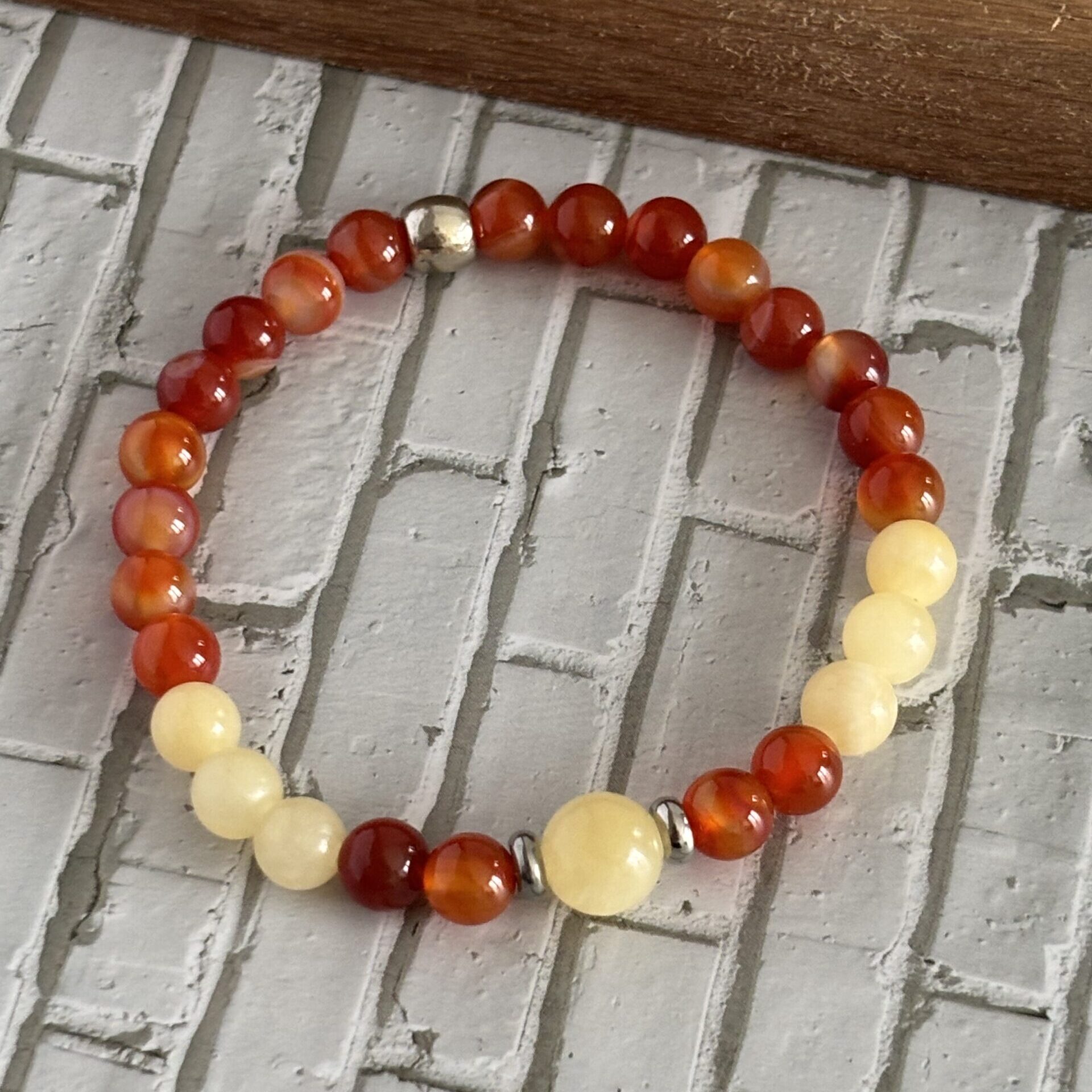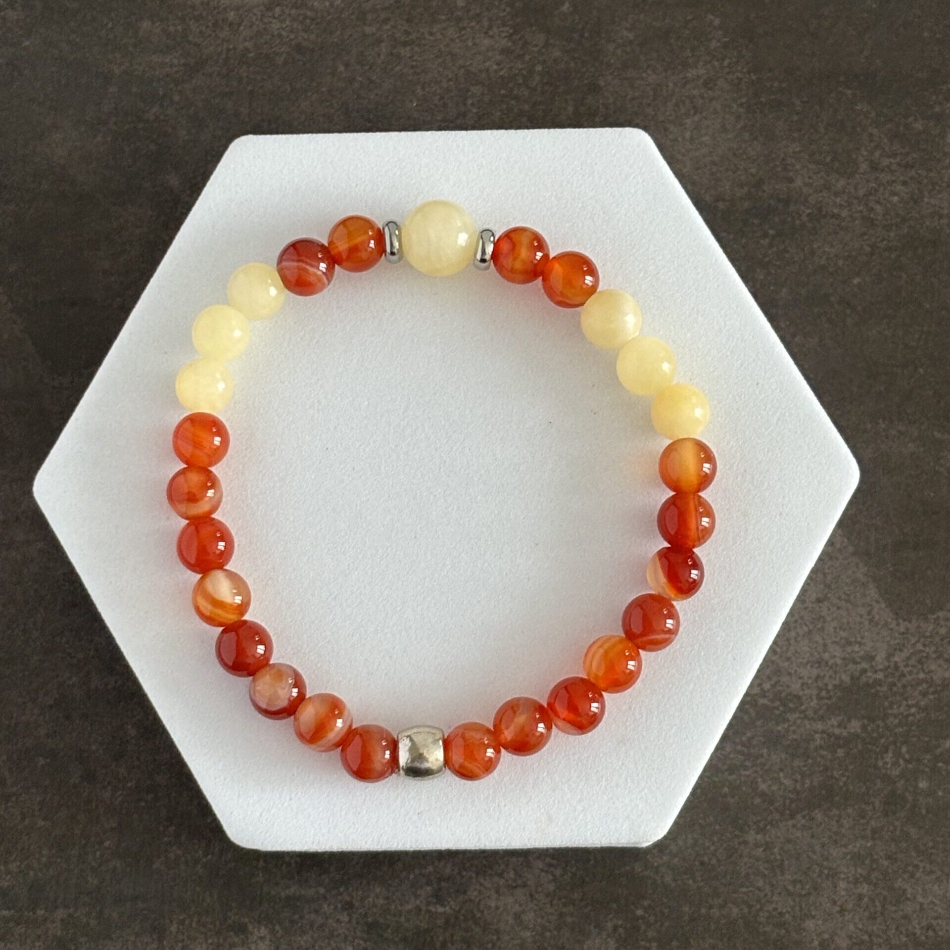 Bracelet zodiaque – Signe du Cancer – Cornaline et calcite – Perles 6 mm et une perle de 8 mm
