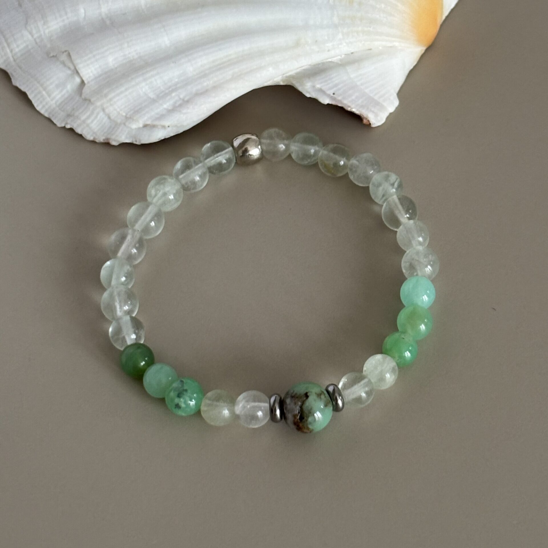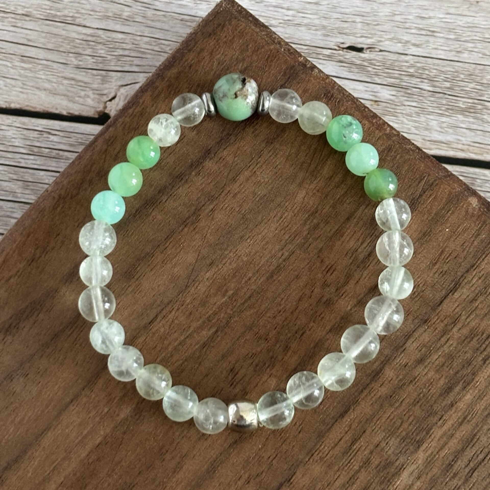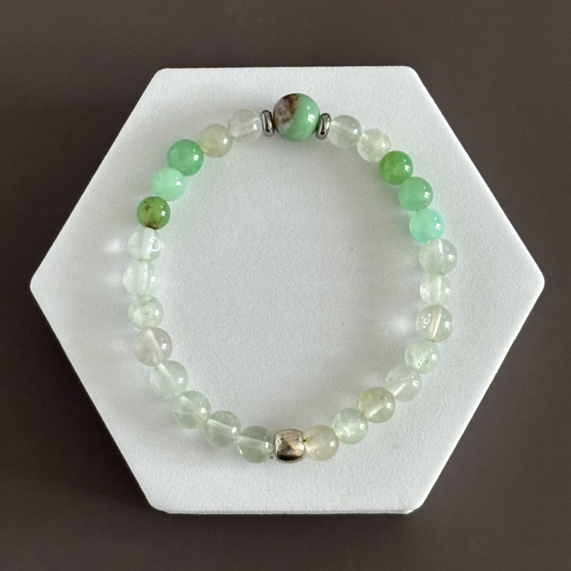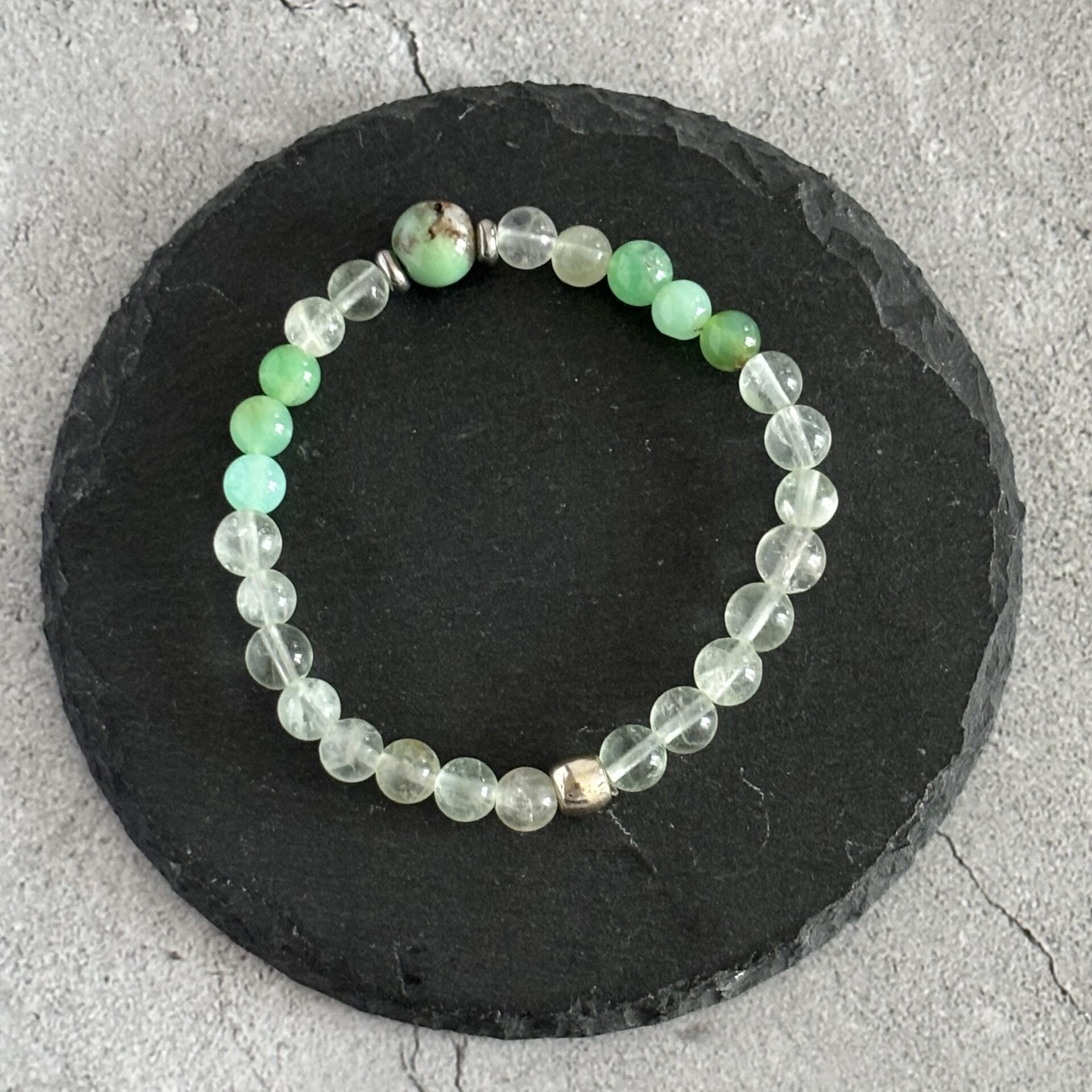 Bracelet zodiaque – Signe du Poisson – Fluorite et chrysoprase – Perles 6 mm et une perle de 8 mm