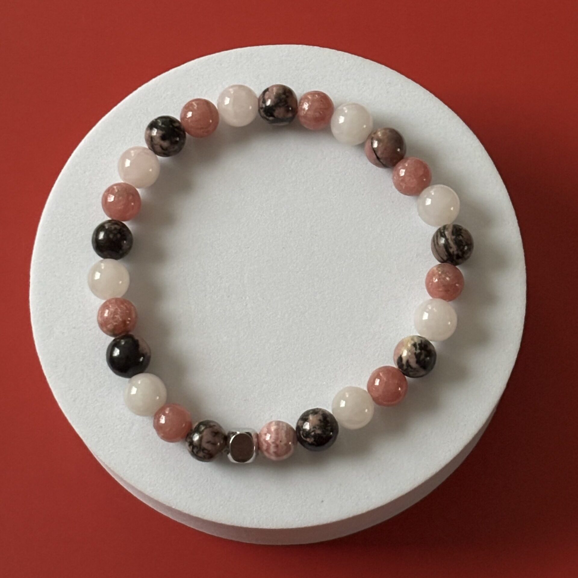 Bracelet chakra coeur : Rhodonite, rhodochrosite et quartz rose