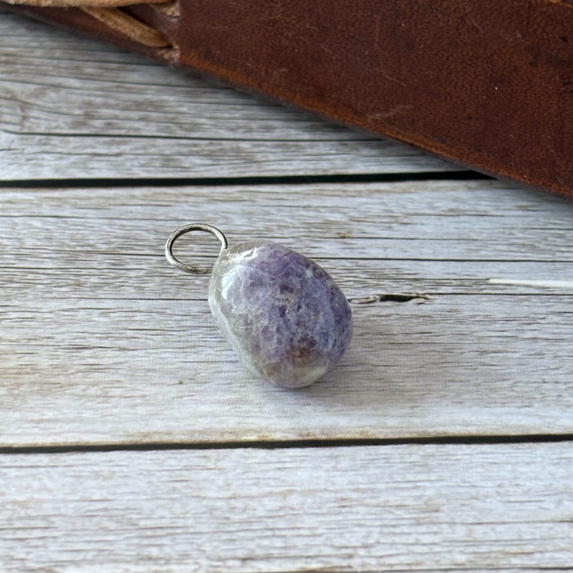 Pendentif Charoïte Pierre roulée 2 / 3 cm environ – Pierre qualité A bonne – Bélière métal argenté.