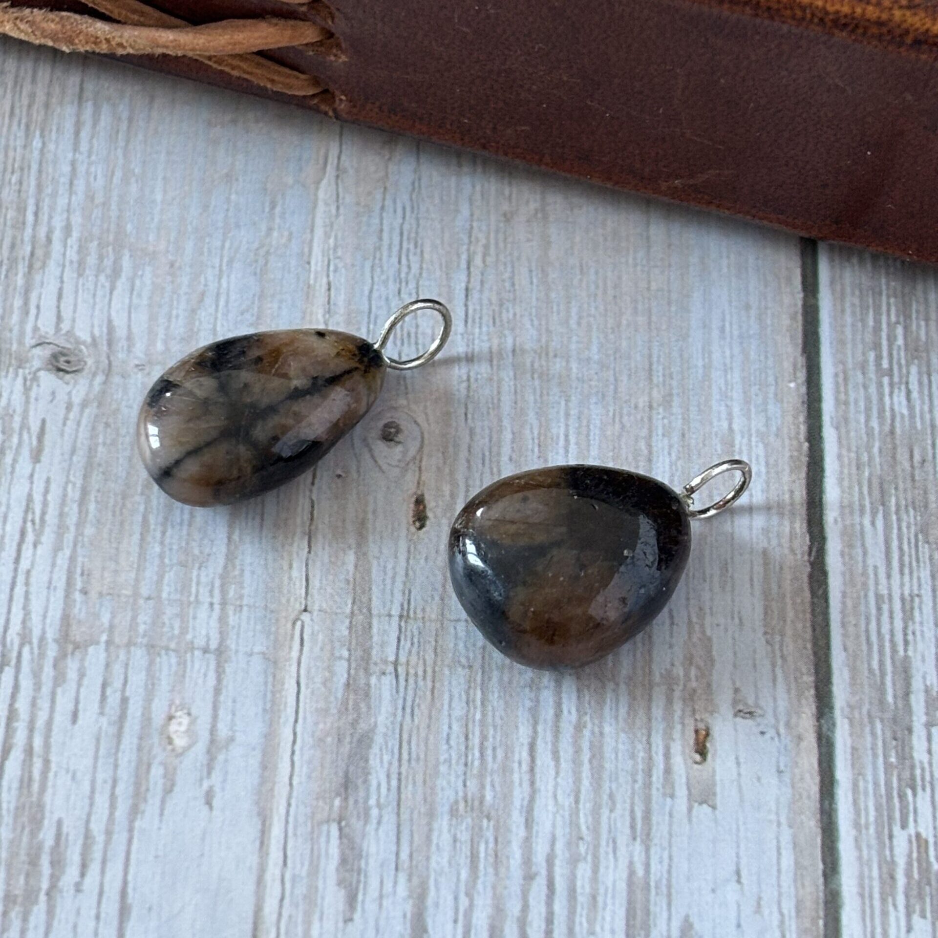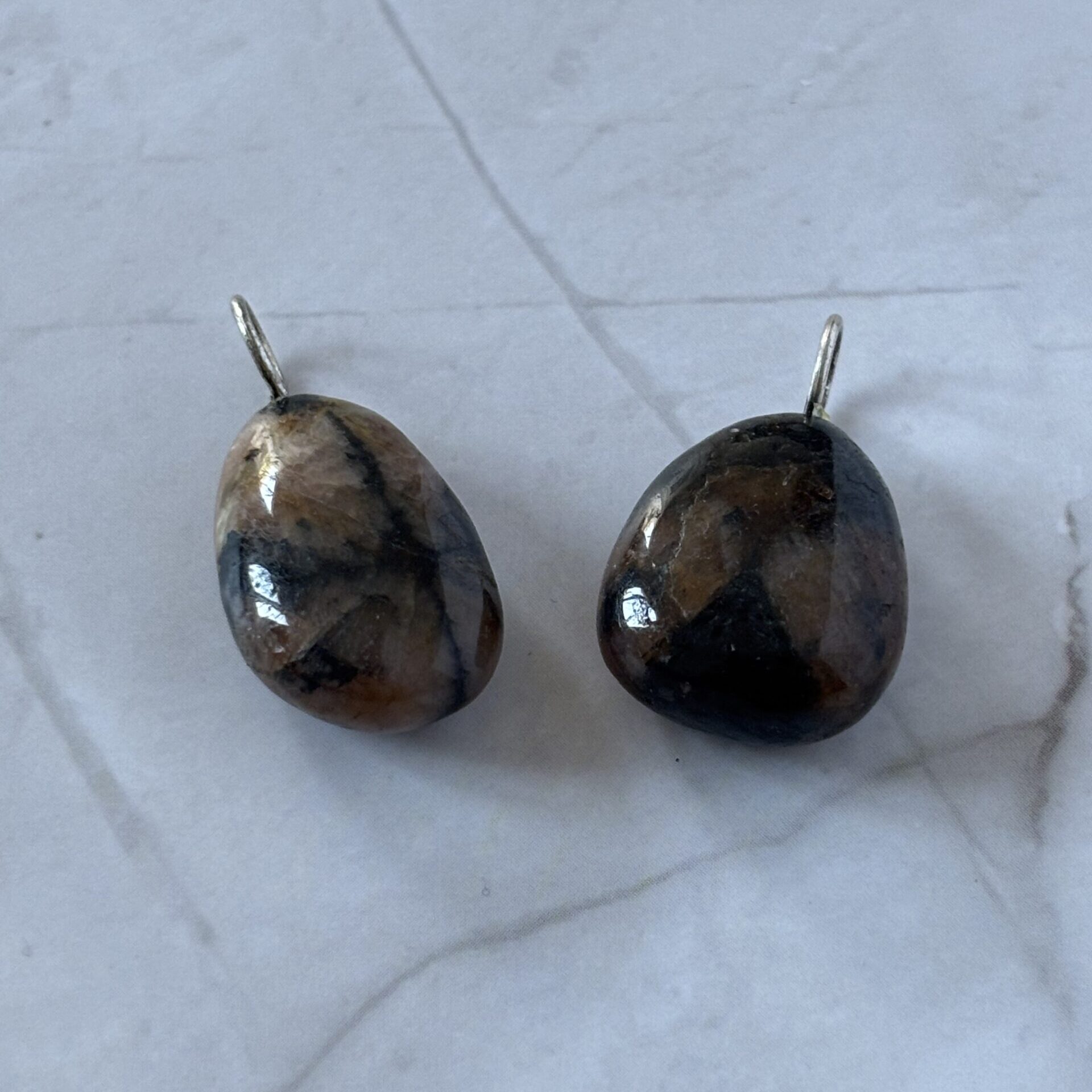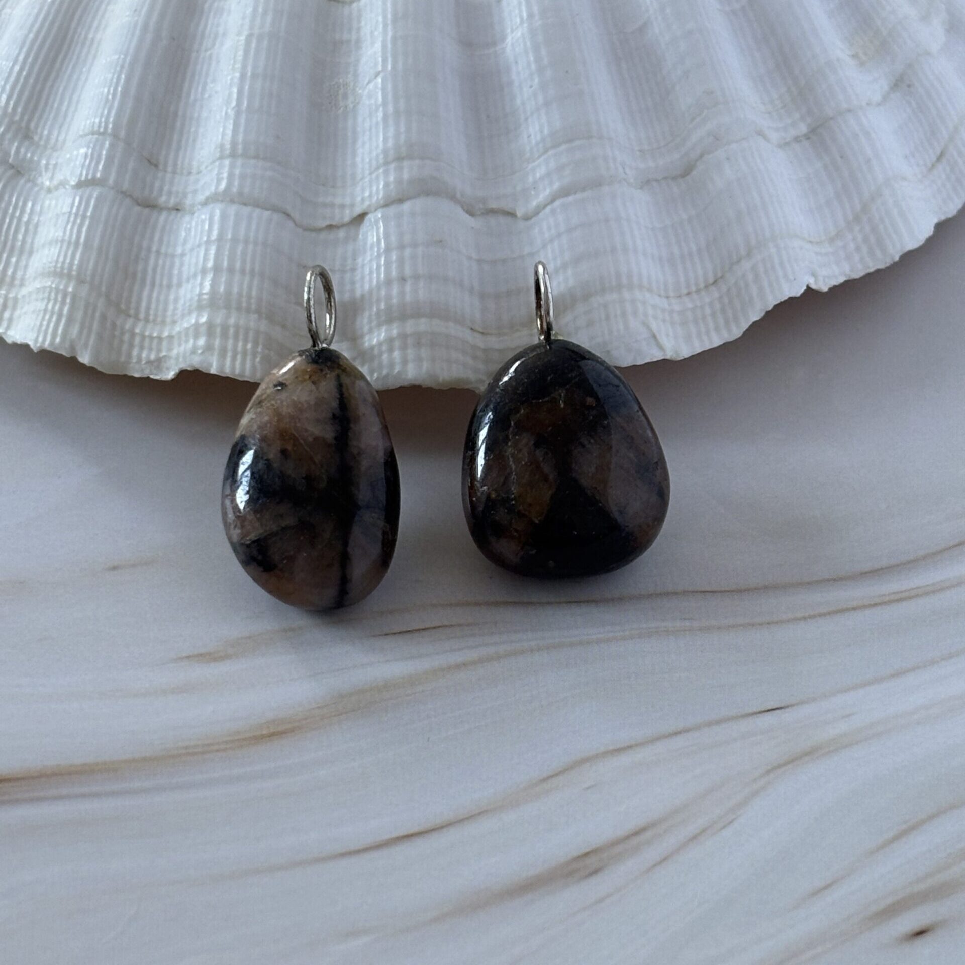 Pendentif chiastolite – Pierre roulée 2 / 3 cm environ – Pierre qualité AA – Bélière métal argenté.