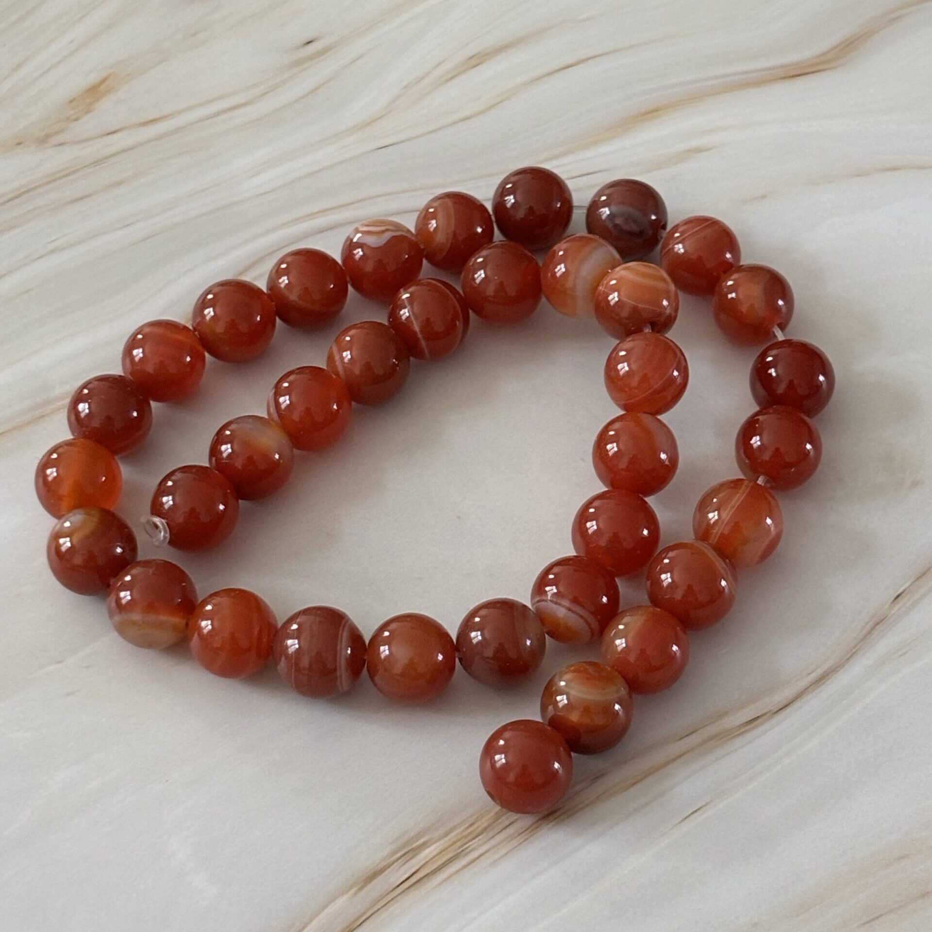 Perles cornaline 10 mm à l’unité – Provenance Madagascar– Qualité AA très bonne.