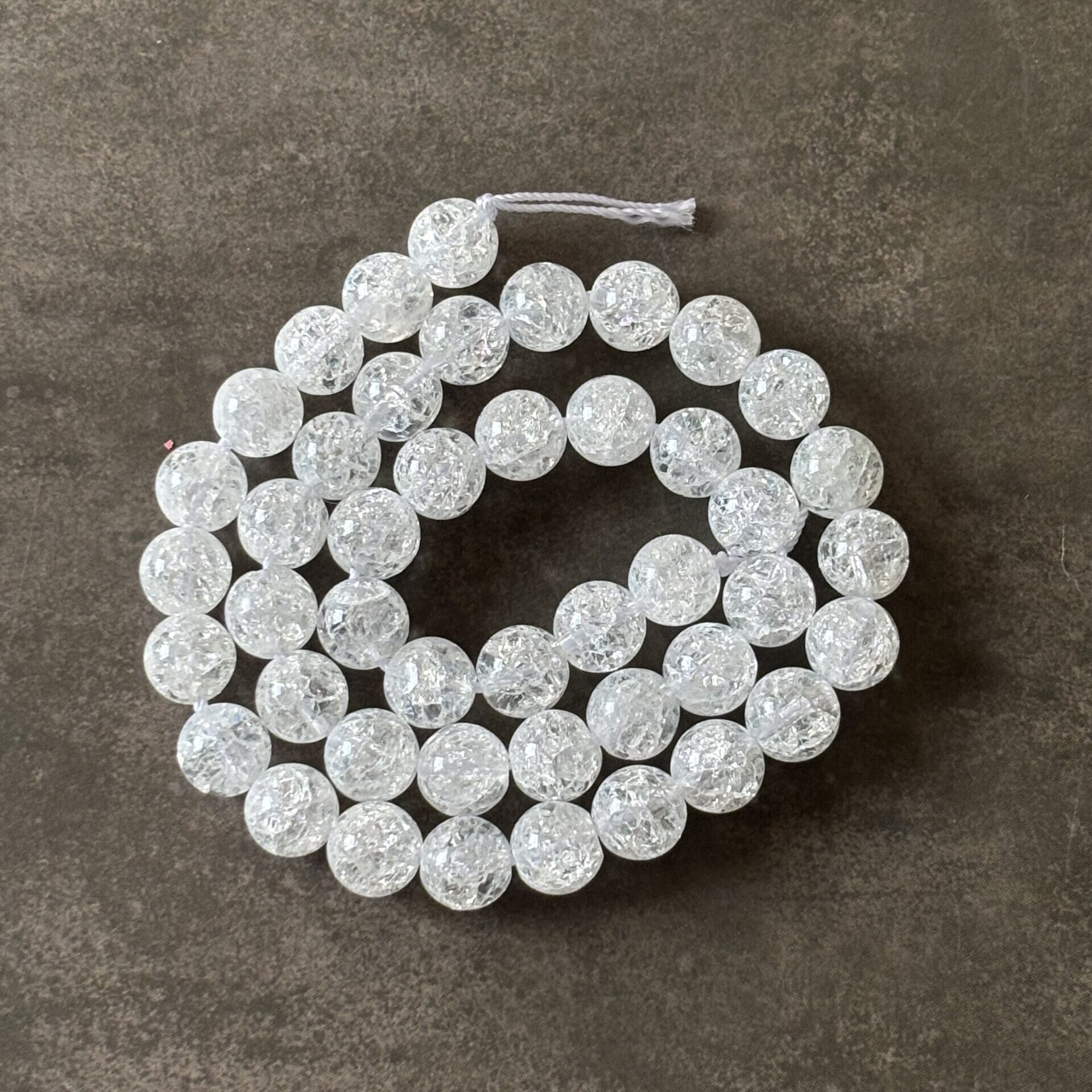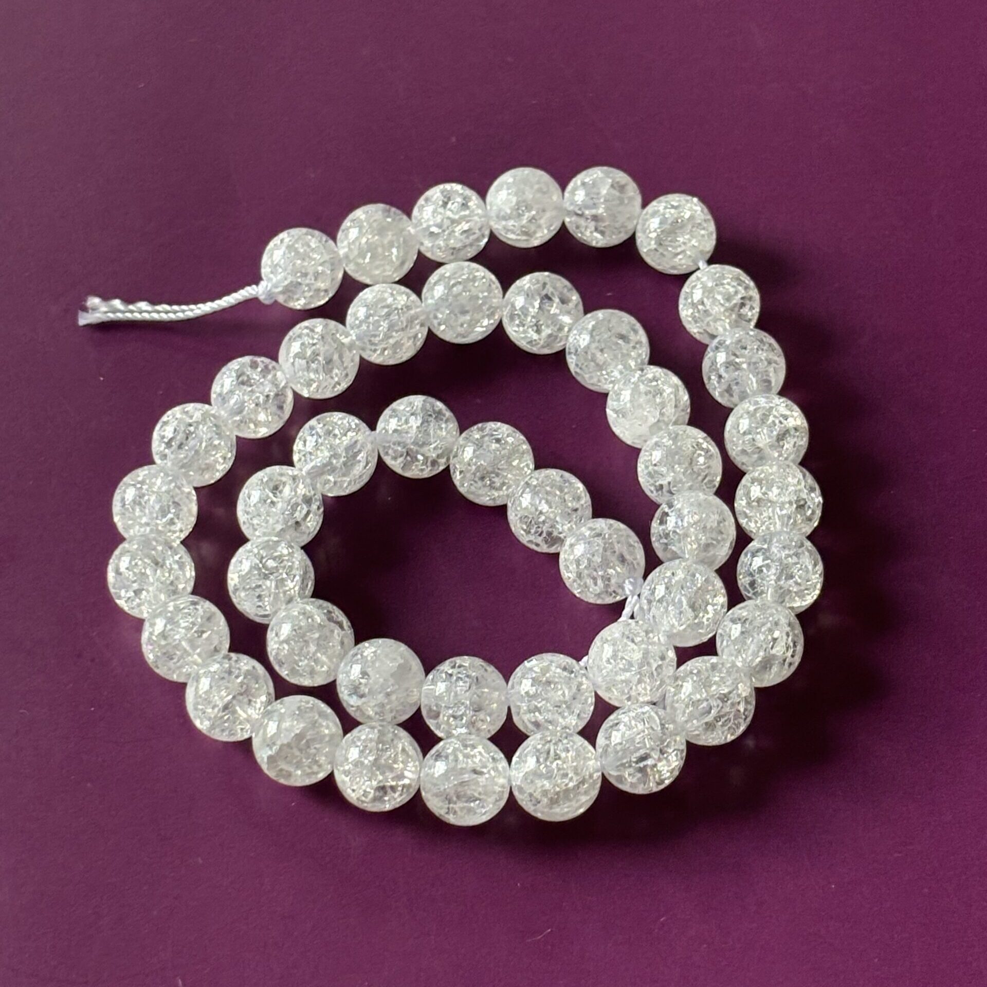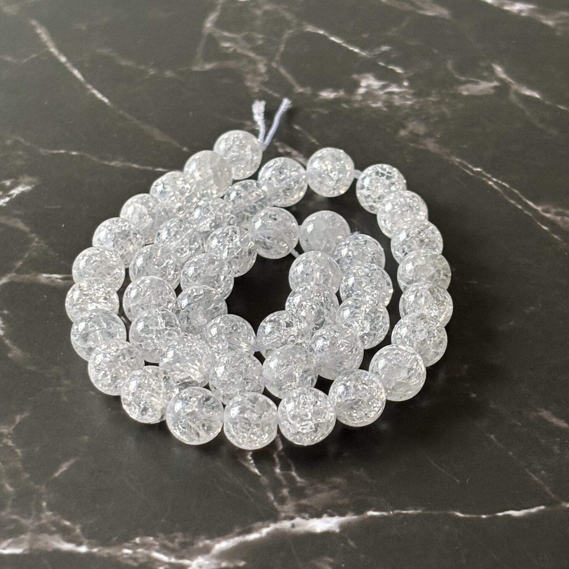 Perles cristal de roche craquelé 8 mm à l’unité – Provenance Brésil – Qualité AA très bonne.