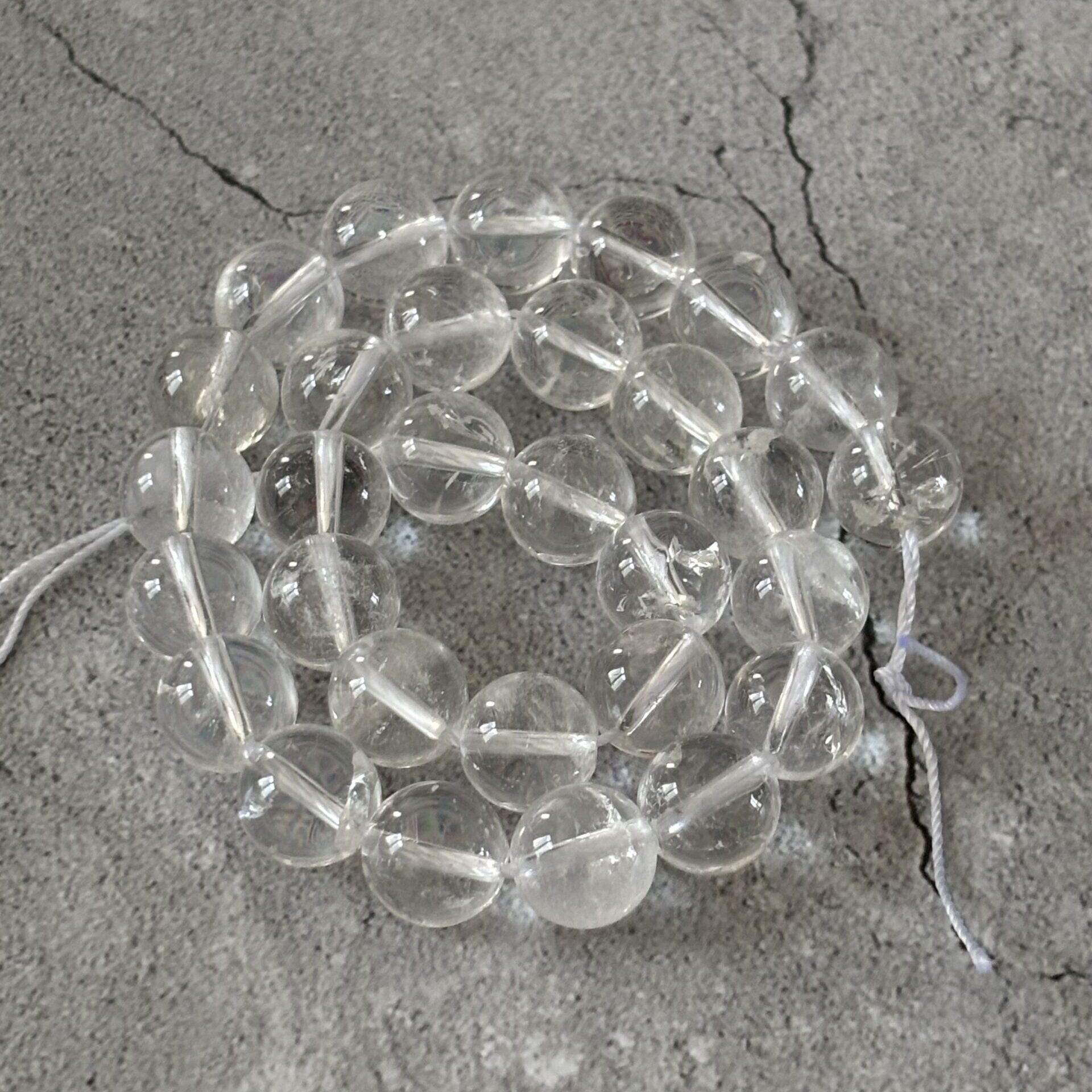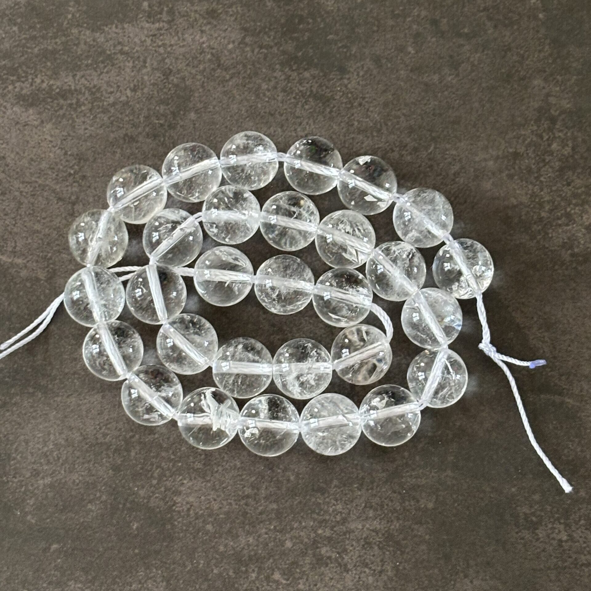 Perles cristal de roche 10 mm à l’unité– Provenance Brésil– Qualité A bonne.