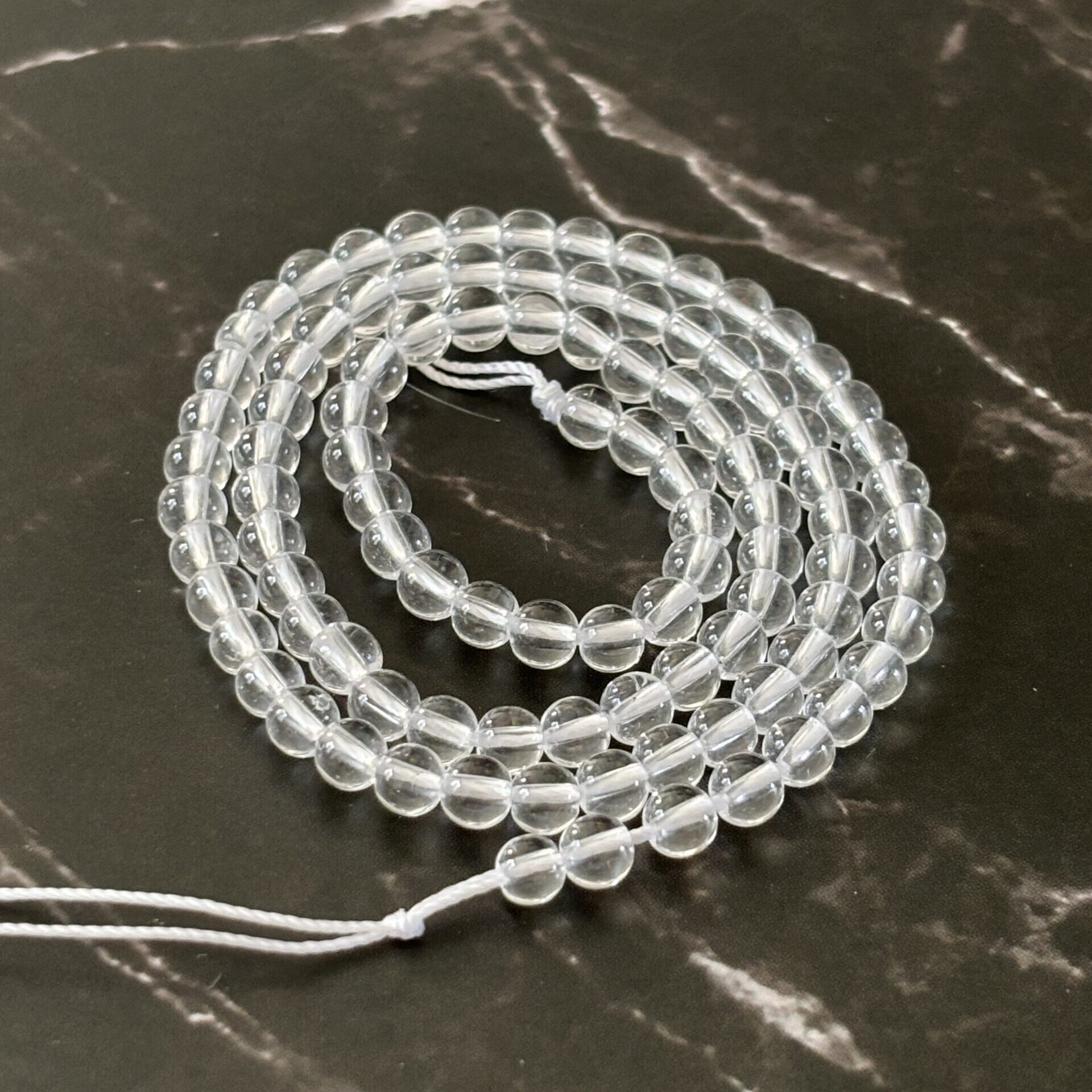 Cristal de roche perles 4 mm en fil complet – Provenance Brésil – Qualité AA très bonne.