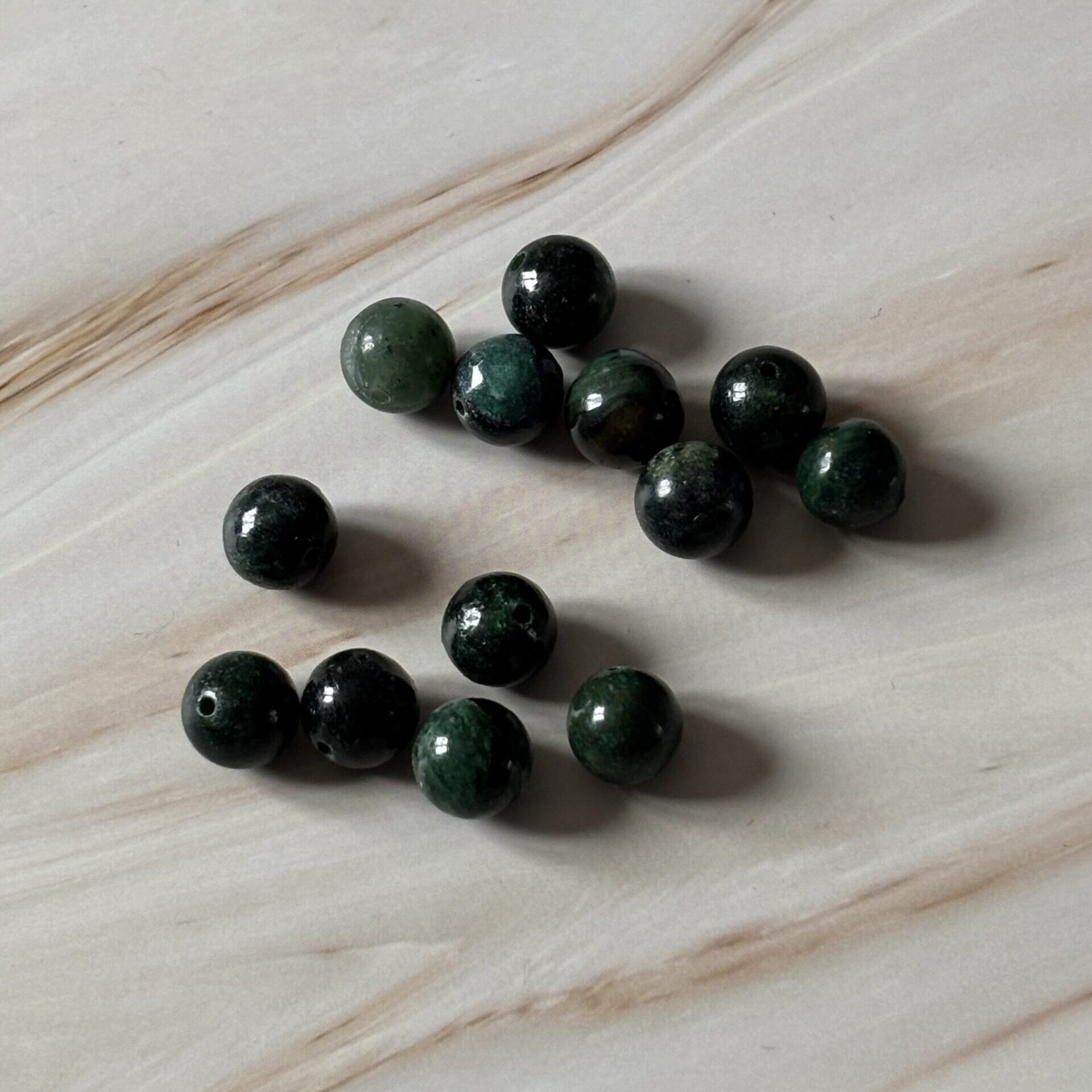 Perles Émeraude foncée 8 mm à l’unité – Provenance Brésil – Qualité A bonne.